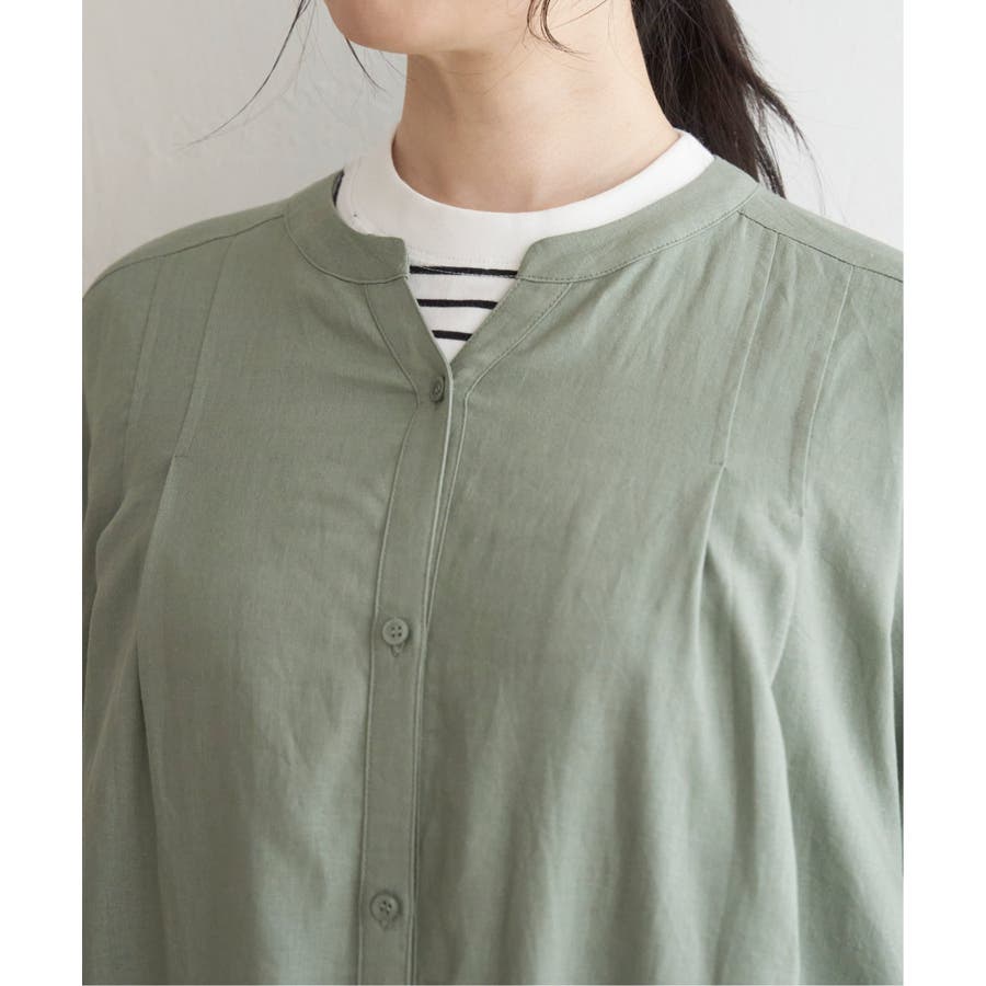 長めの袖丈でひじ上までカバー、身頃もたっぷりとしていて体離れの良いシルエットがポイント。