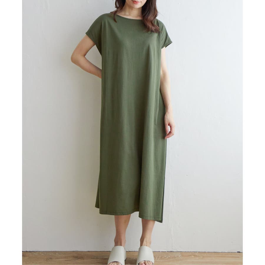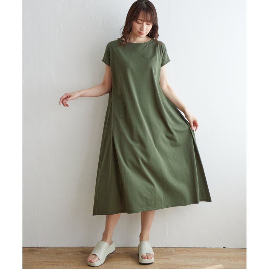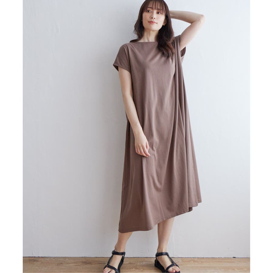 ゆったり着られるAラインシルエットと、さらっと素材が特徴のワンピース。