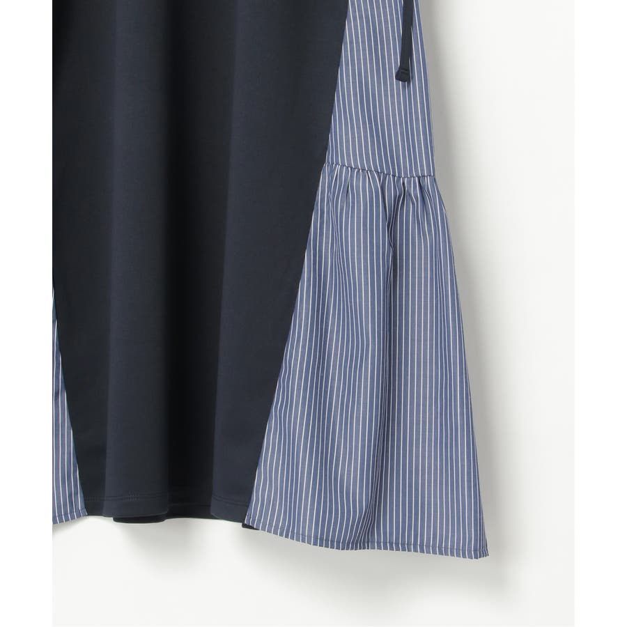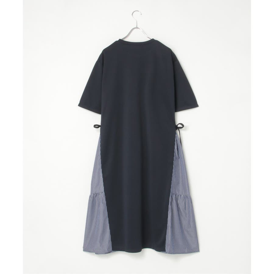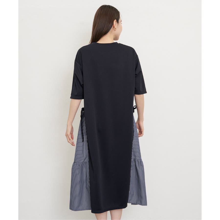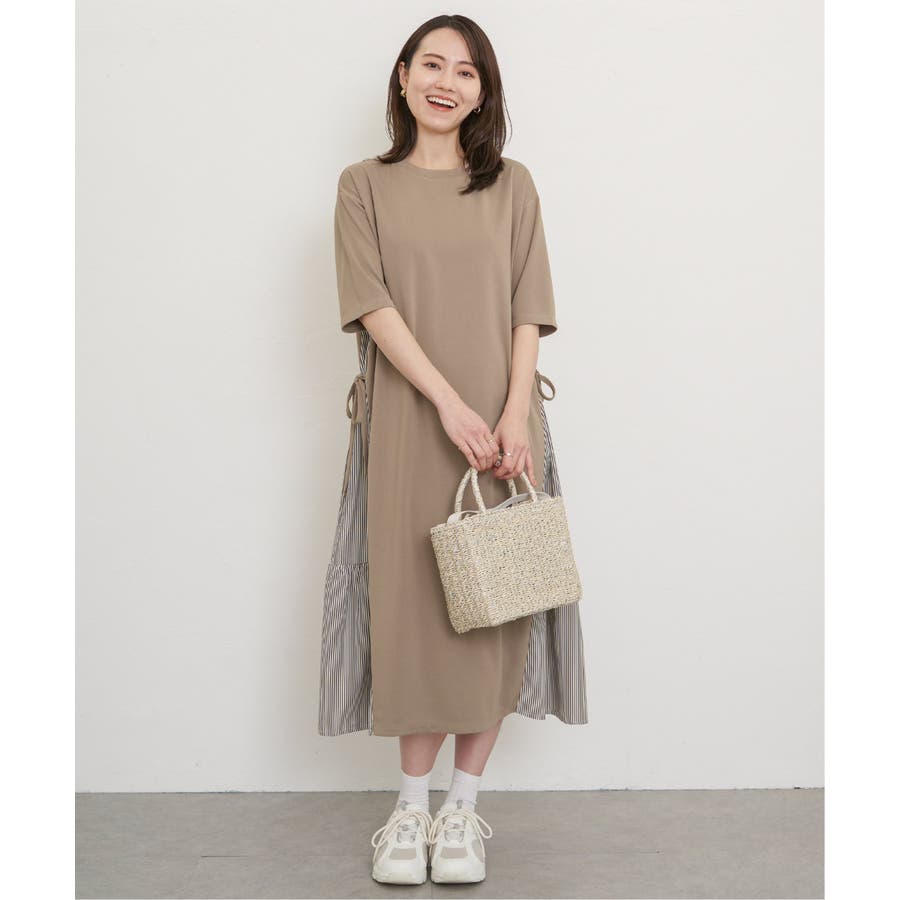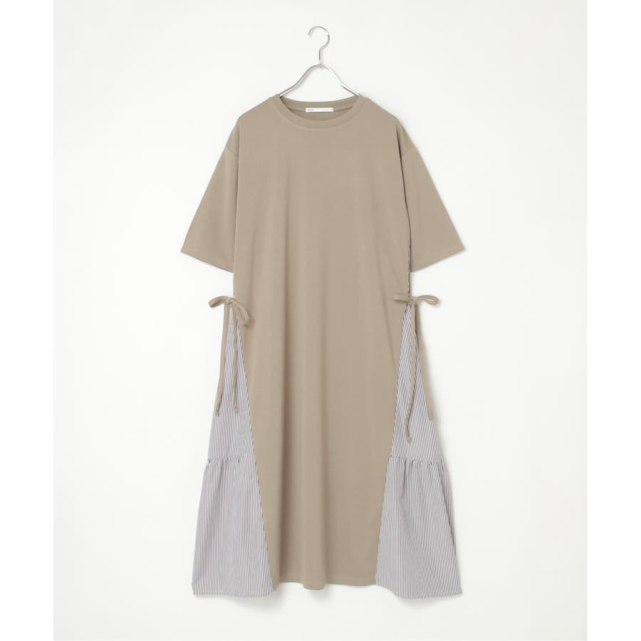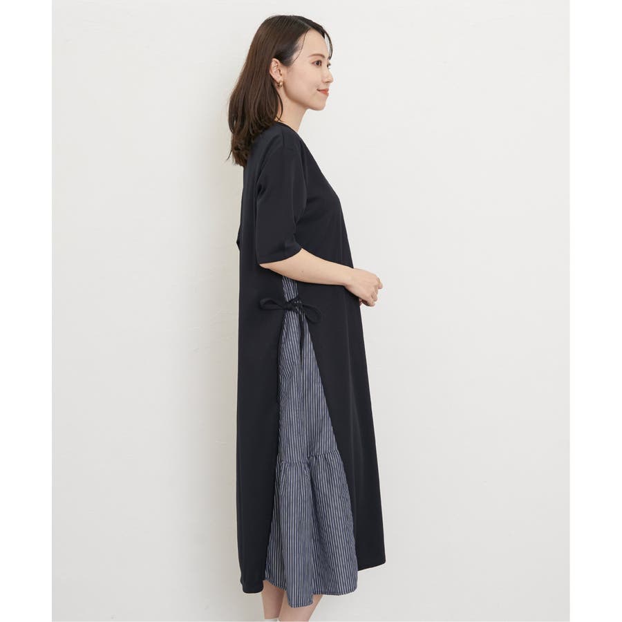 サイドをストライプ柄で切り替えた異素材デザインのワンピース。