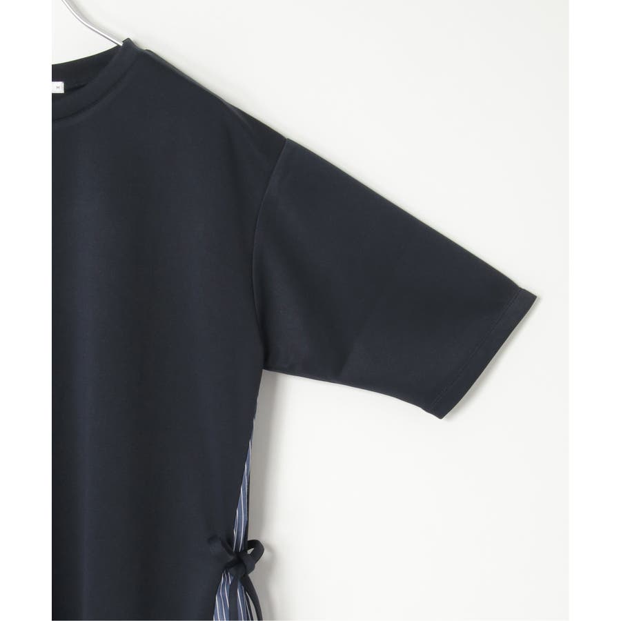 サイドの布帛がティアードになっており、サイドリボンで少しシルエットを調節できるTワンピ。