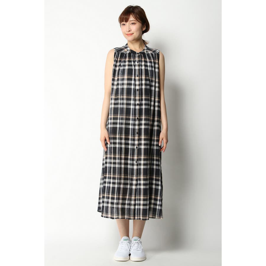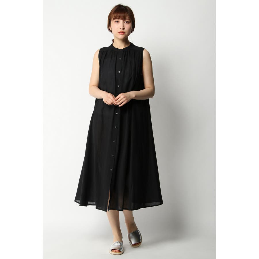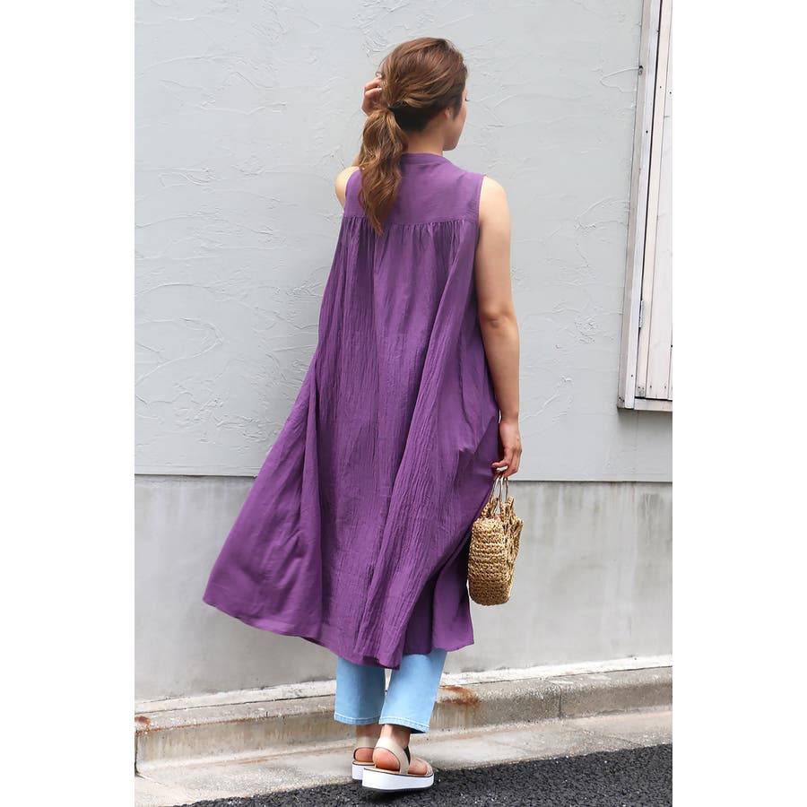 ふわっと軽やかなコットン素材のノースリーブワンピース。