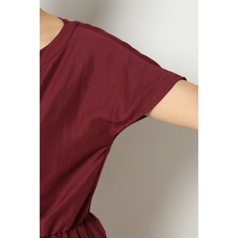 ほのかな光沢と表面感のあるサテン生地で作られたワンピース。