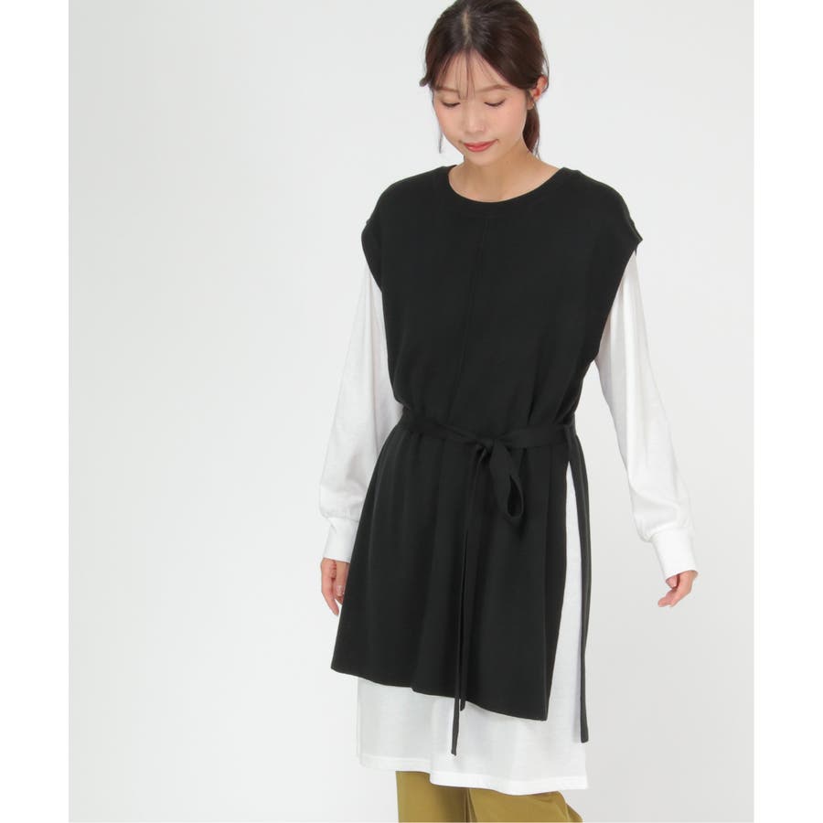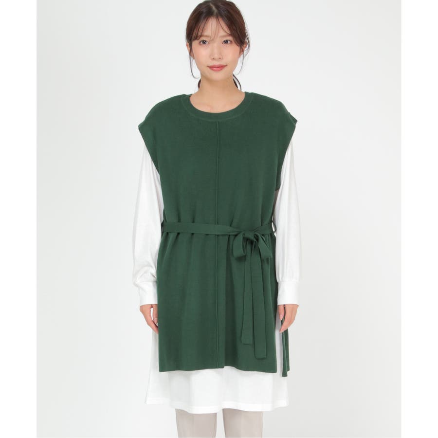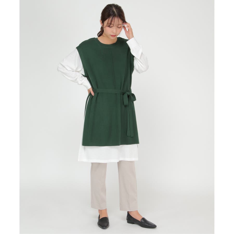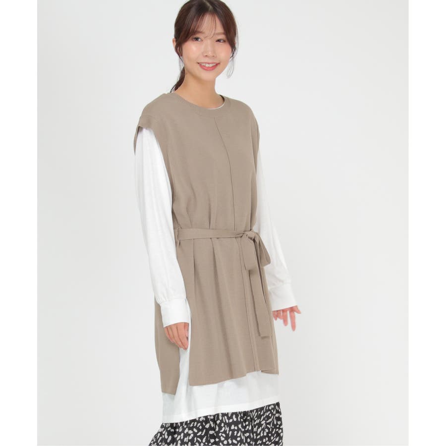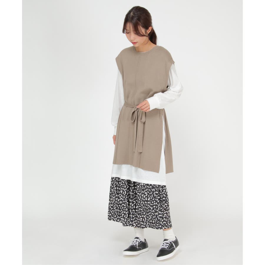 ニット:サイドにスリットと、ウエストにベルトが付いているので、ベルトなしでゆったりと、ベルトでブラウジングしてボトムス合わせにも◎着方が色々楽しめるデザインです。