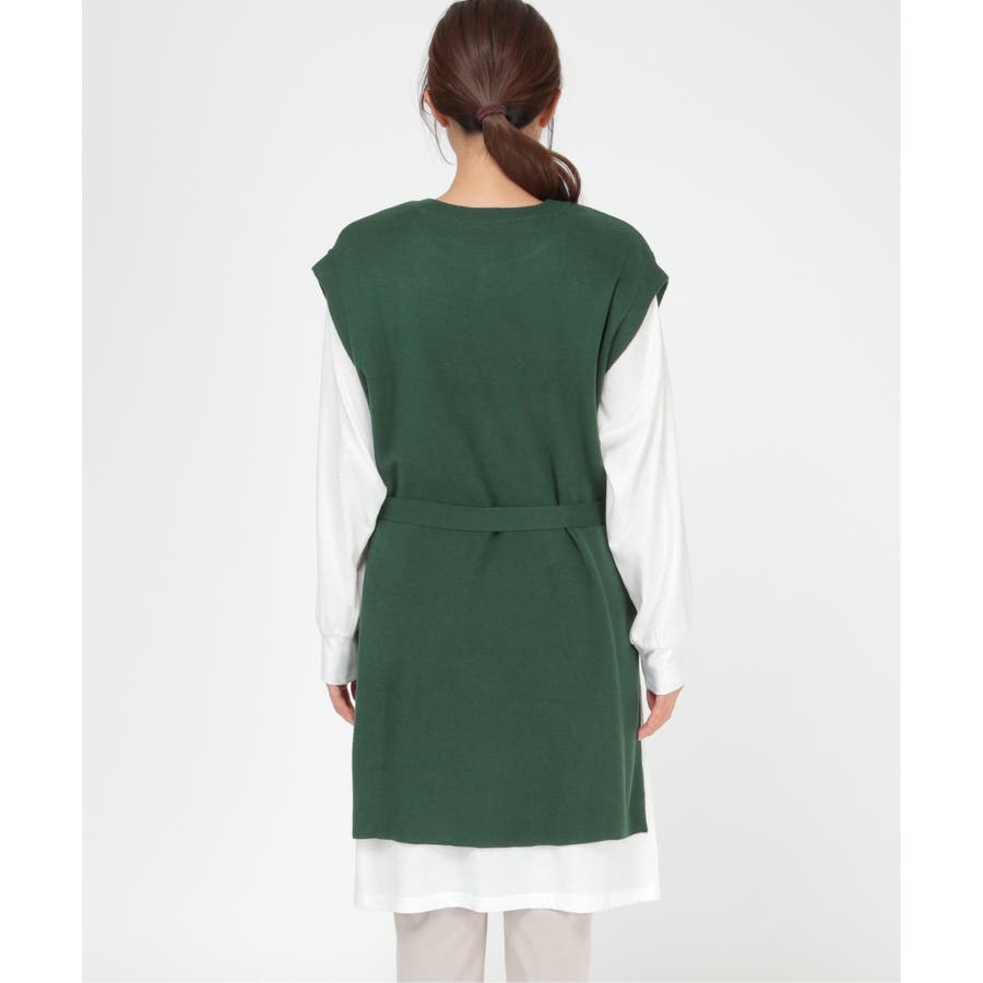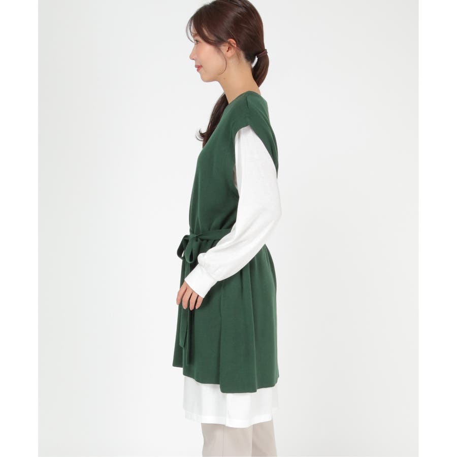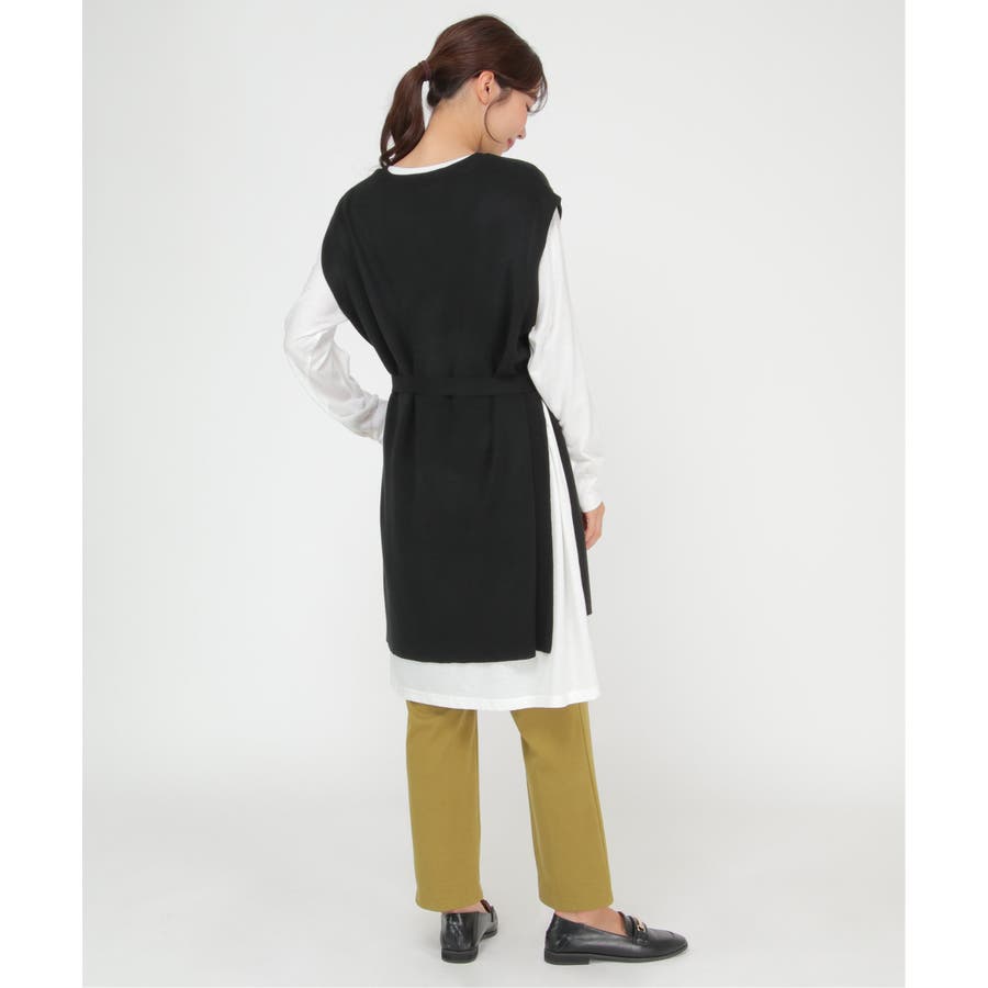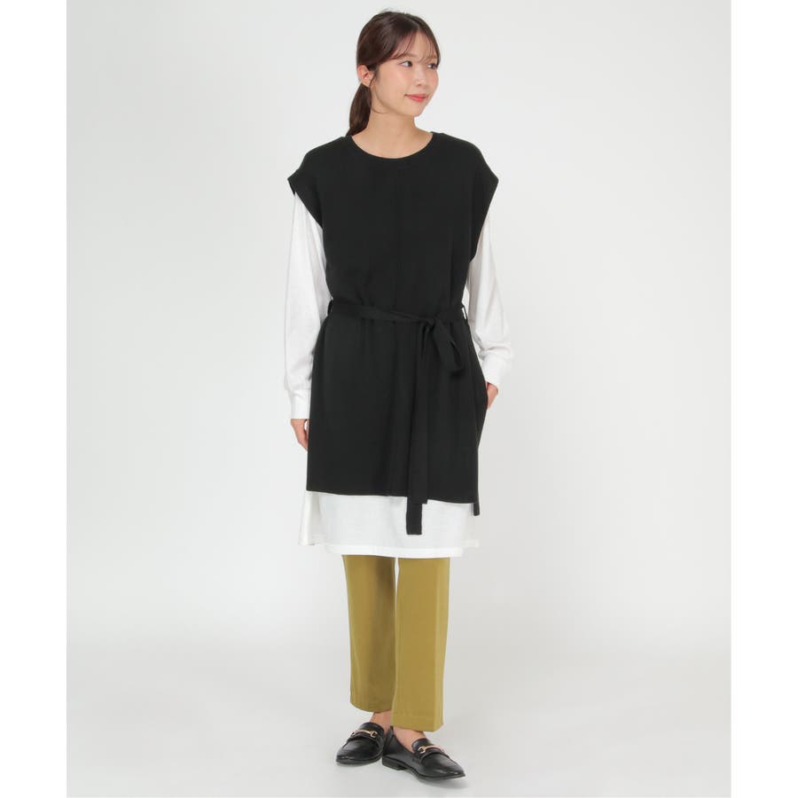 無地のロング丈インナー+ニットベストのセットアイテム。