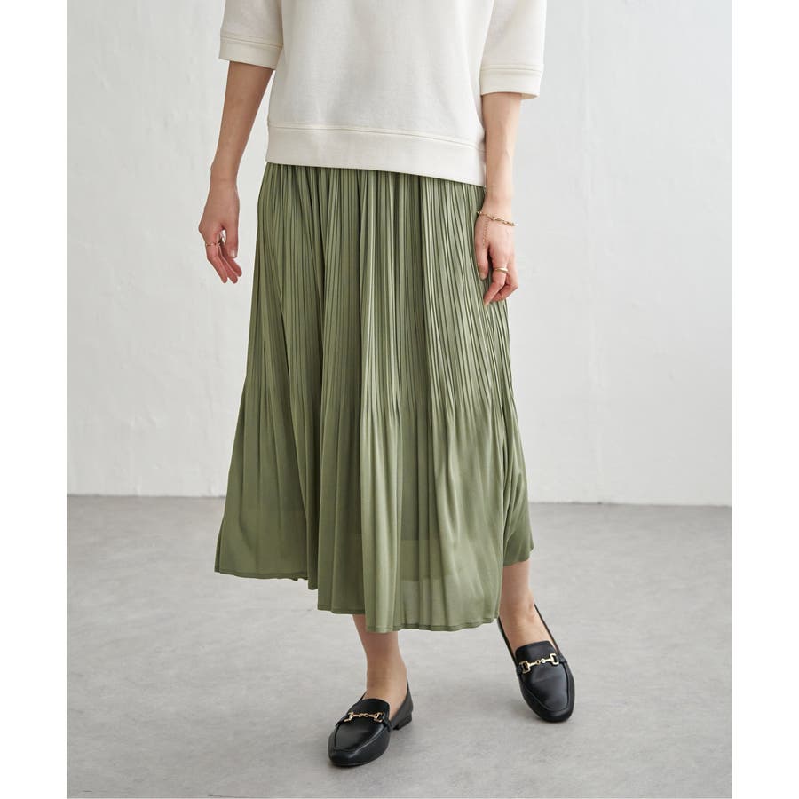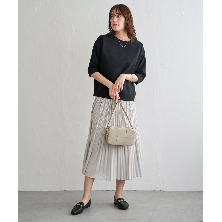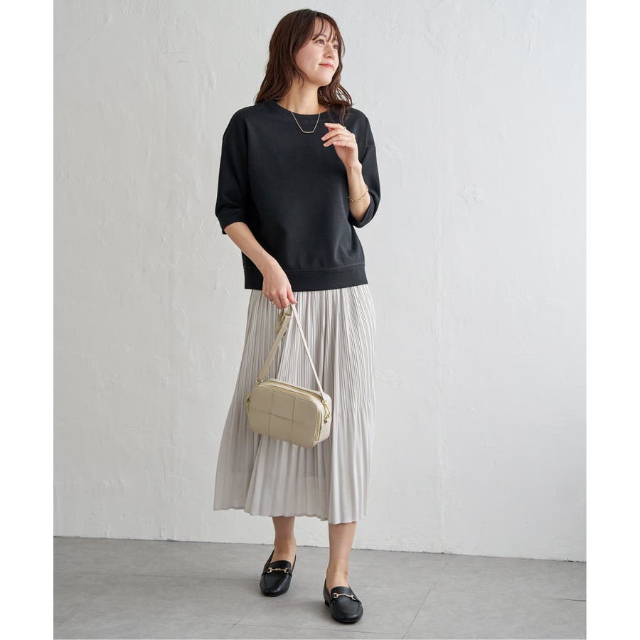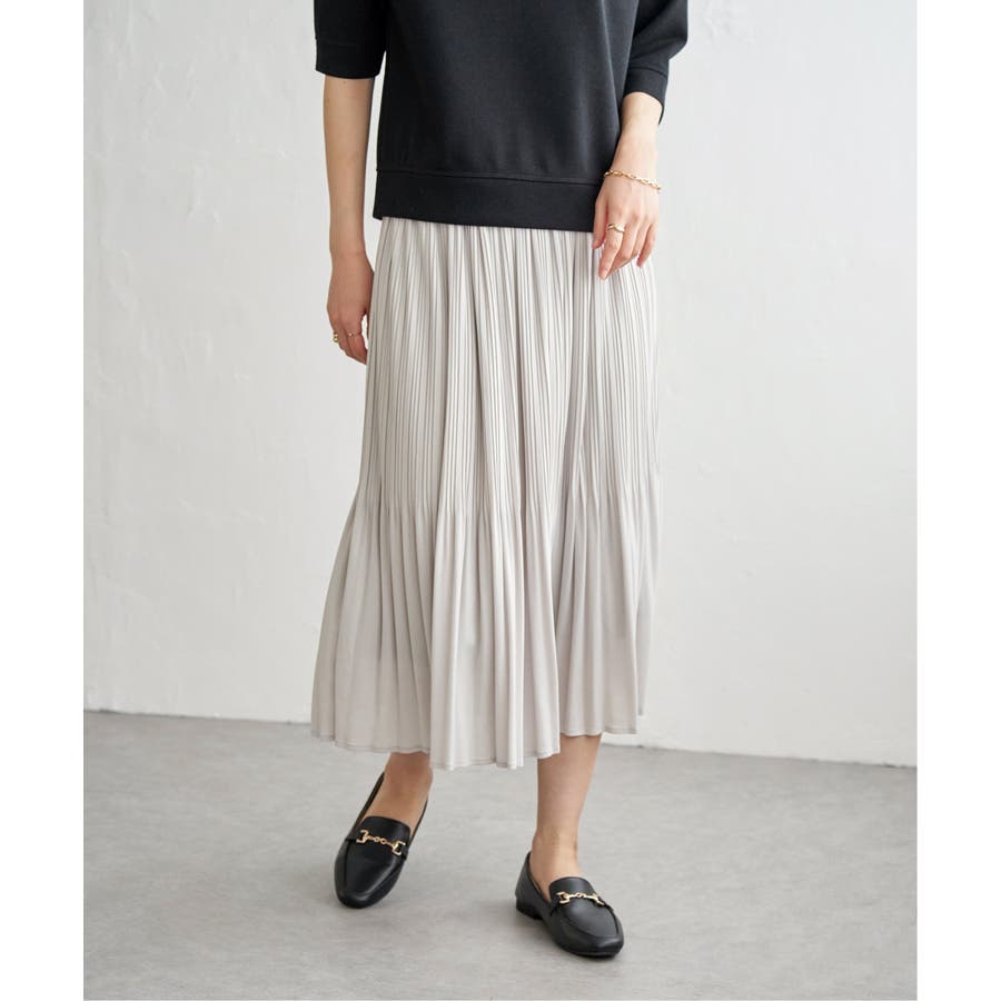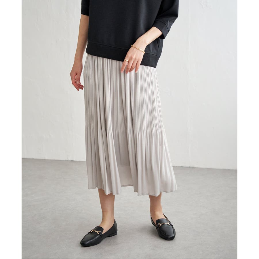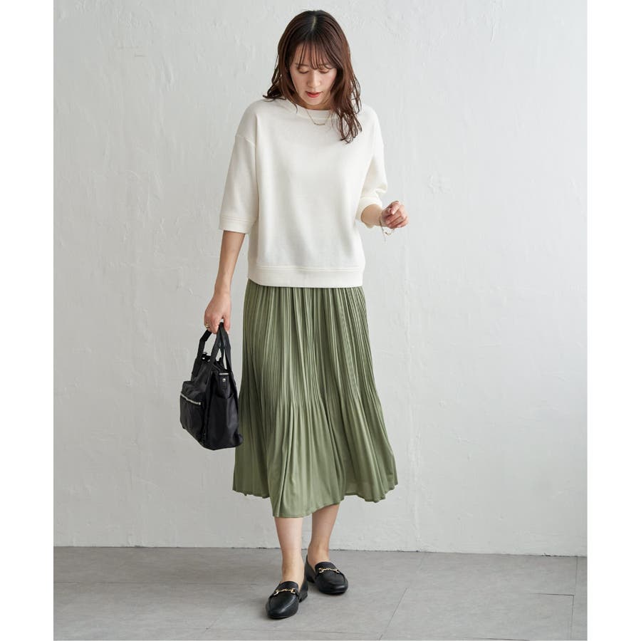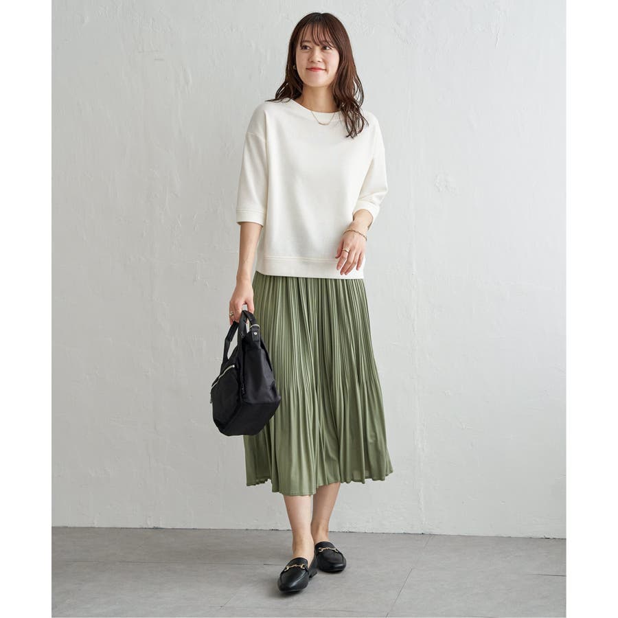 バックのメタルジップがポイントのプルオーバーと、体型カバーもできすっきり見えするプリーツスカートです。