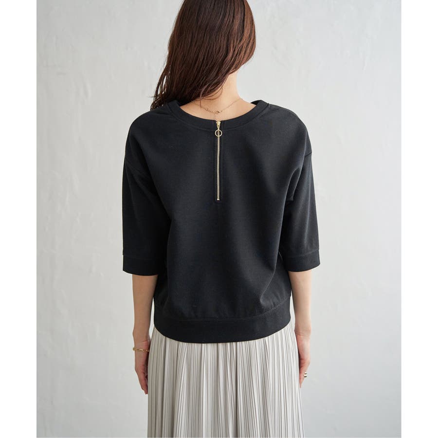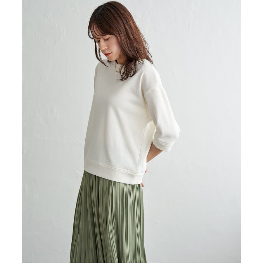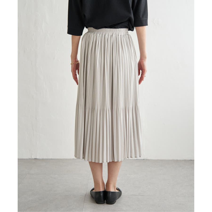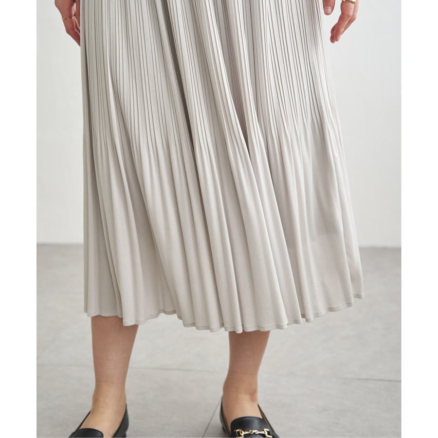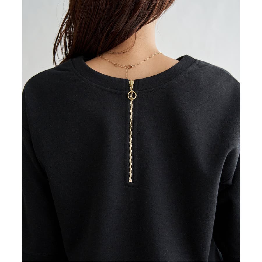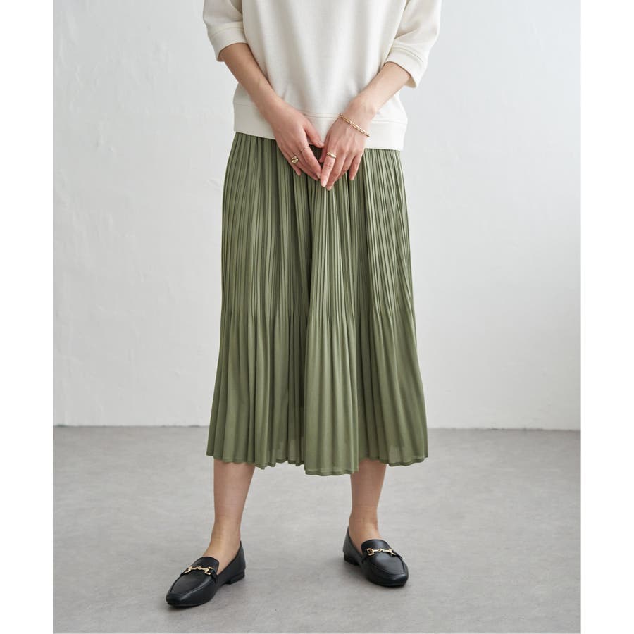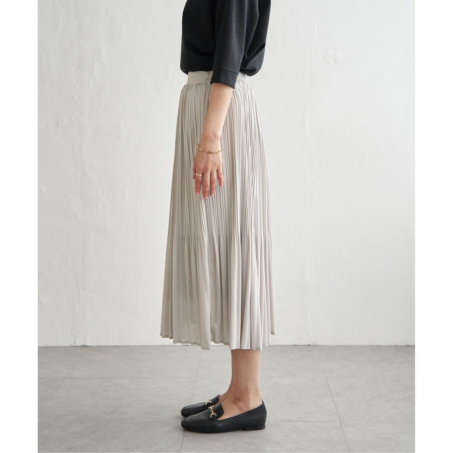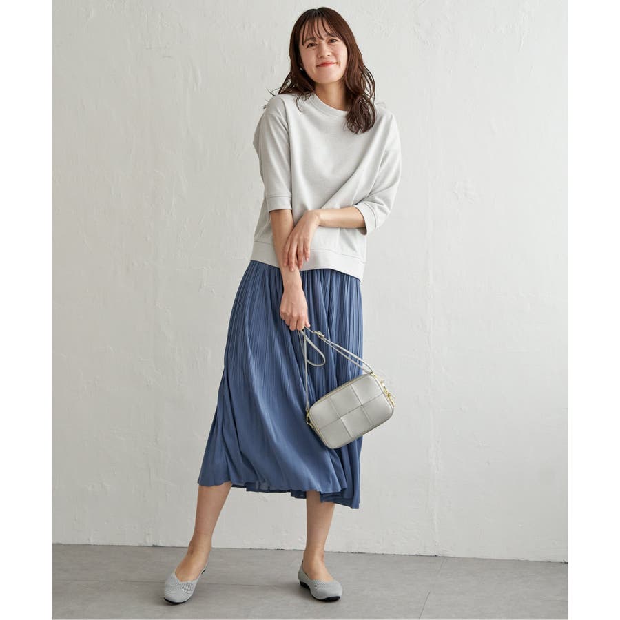 バックのメタルジップがポイントのプルオーバーと、体型カバーもできすっきり見えするプリーツスカートです。