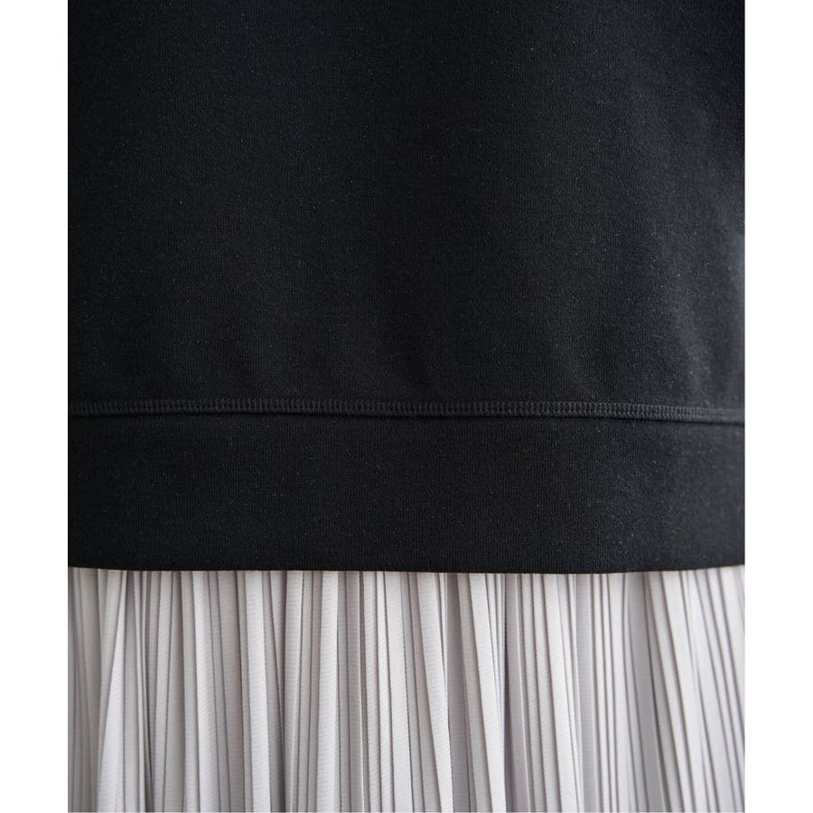 ラメをさりげなく織り込んだミニ裏毛プルオーバーと、軽やかなチュールプリーツスカートを組み合わせた2点セット。
