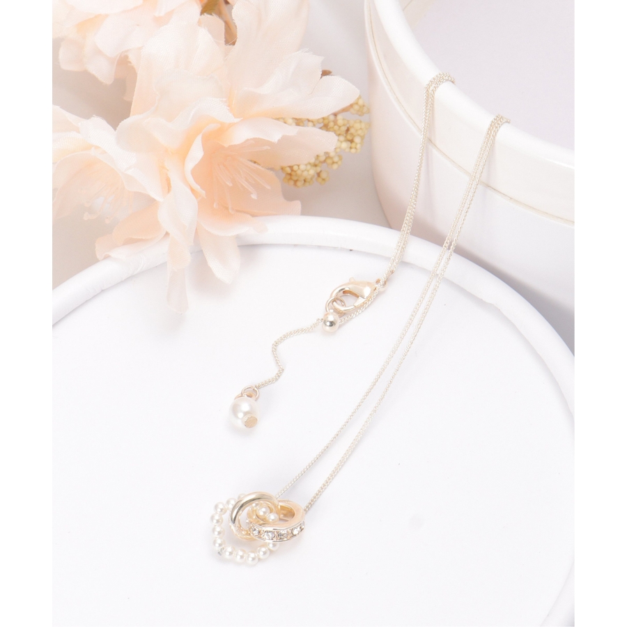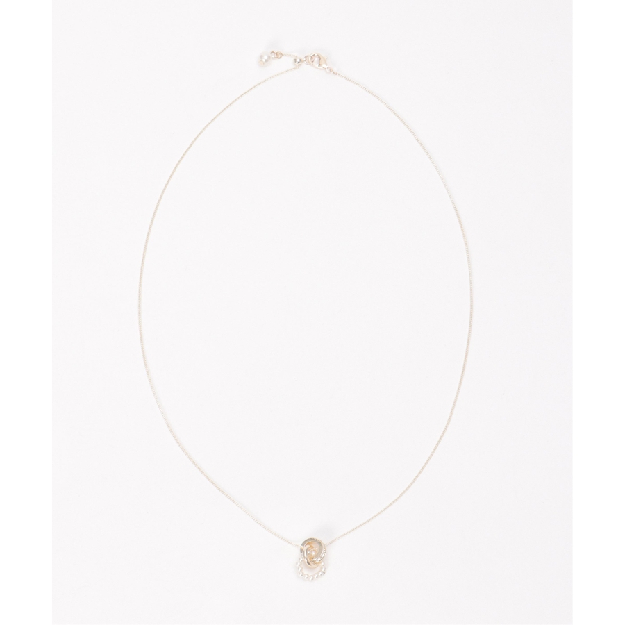 パールとリングモチーフを組み合わせた、表情のあるネックレス。