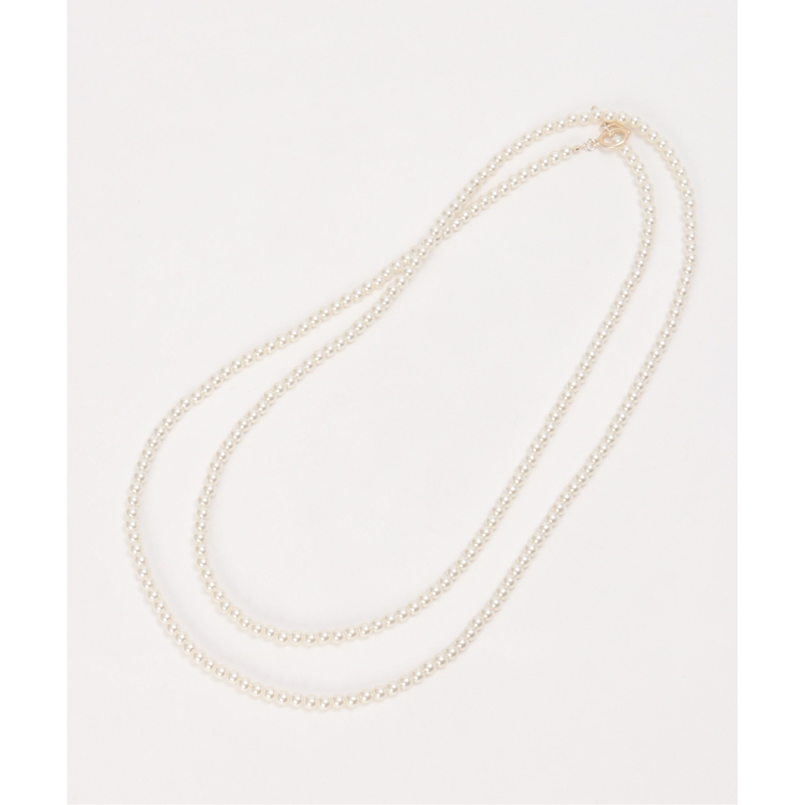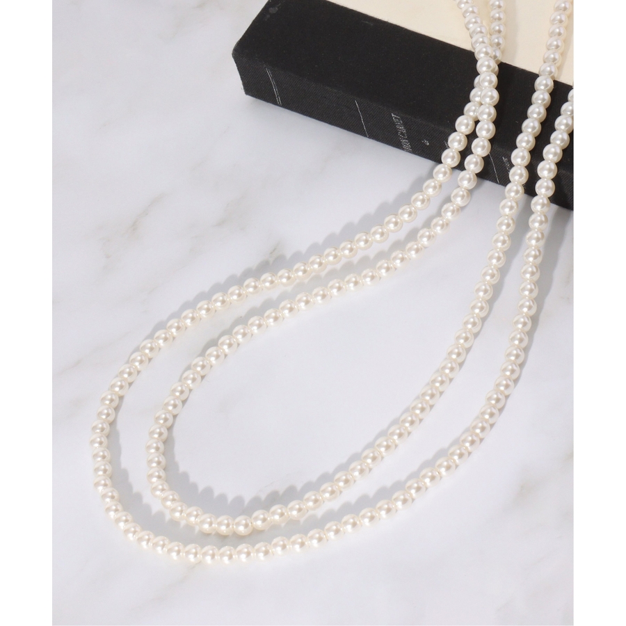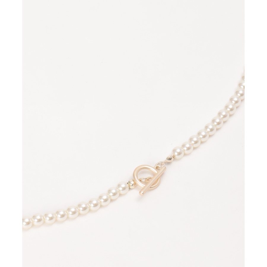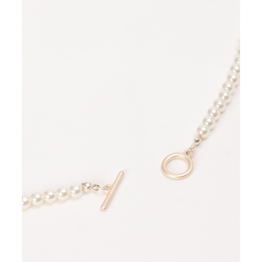 ・マンテルパーツがアクセントになるシンプルなパールのネックレス