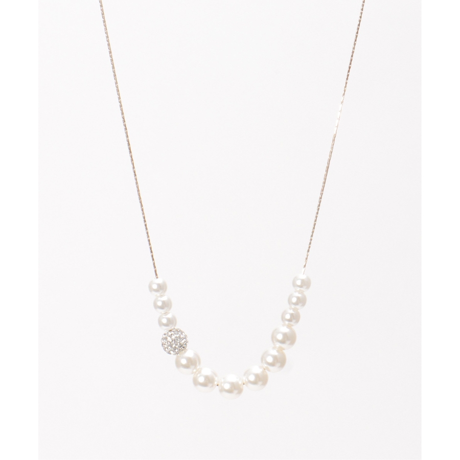 途中にキラリと光るビジューをあしらったスライドネックレス。