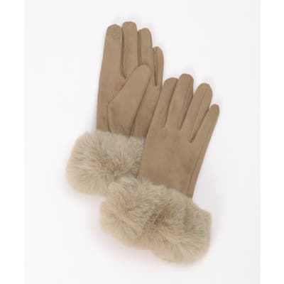 裾にフェイクファーを付けた高見え効果有のグローブ。