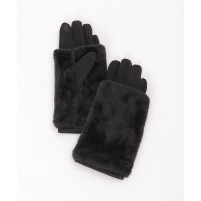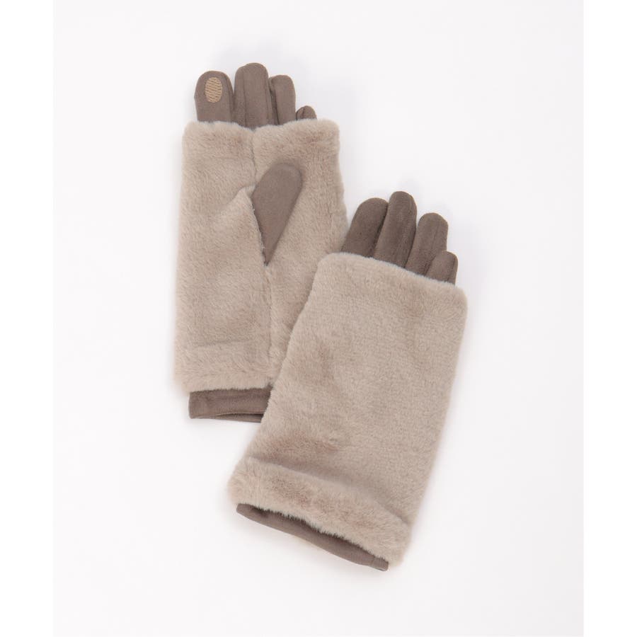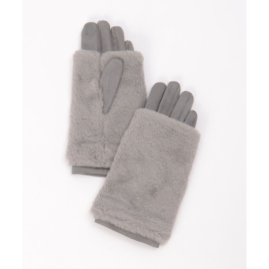 シンプルな手袋、ふんわりフェイクファーのハンドウォーマー、そして重ね付けで一体感のあるあたたか手袋に。
