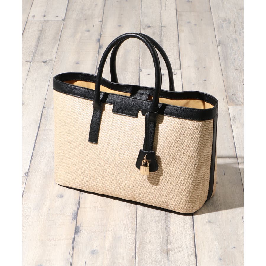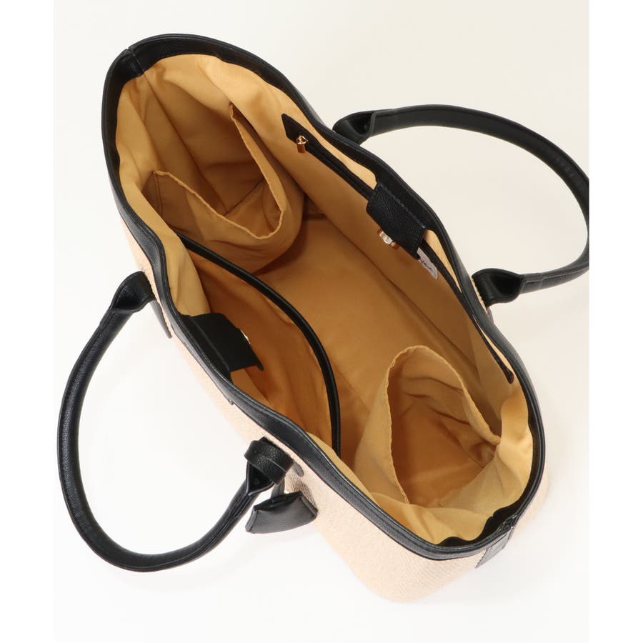 ボディとフェイクレザーの持ち手の配色デザインが魅力のトートバッグ。