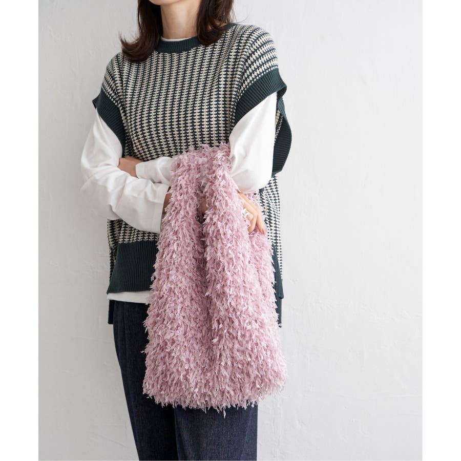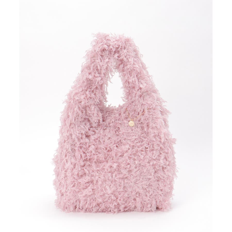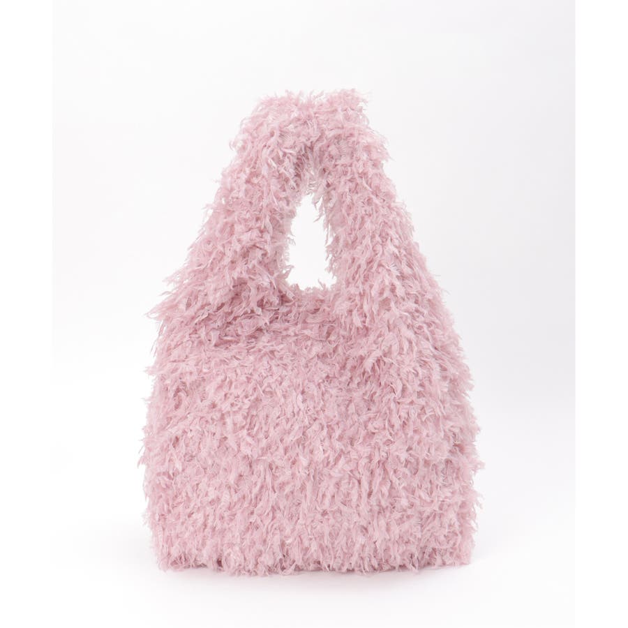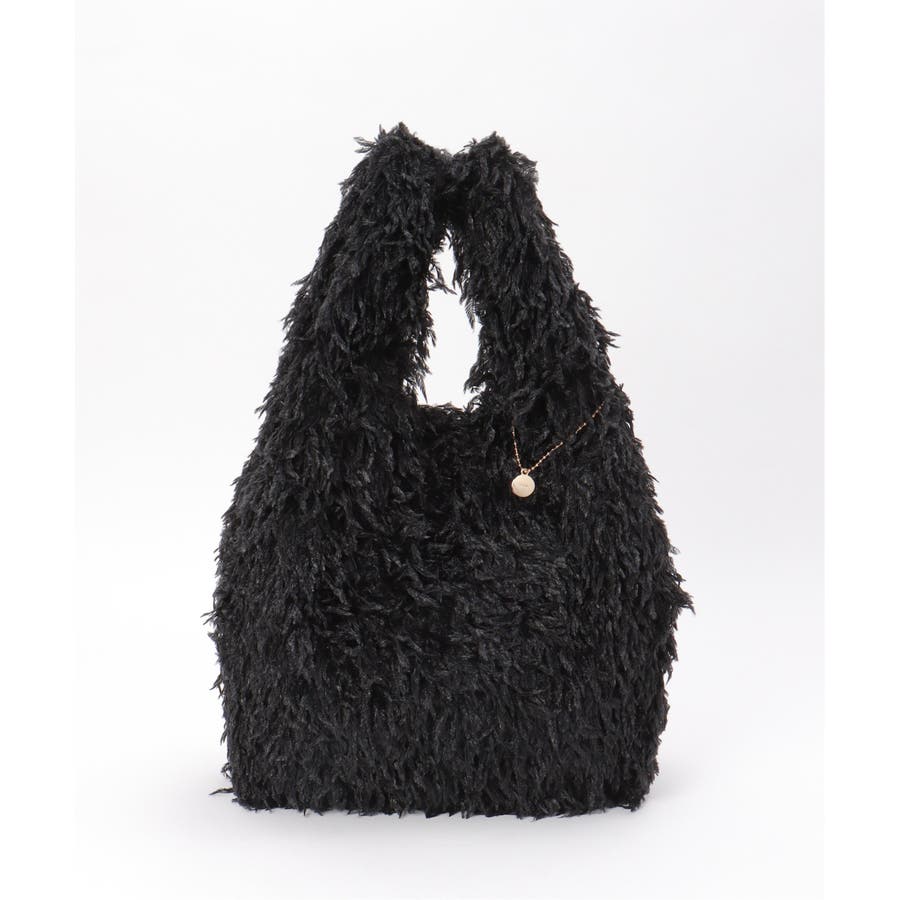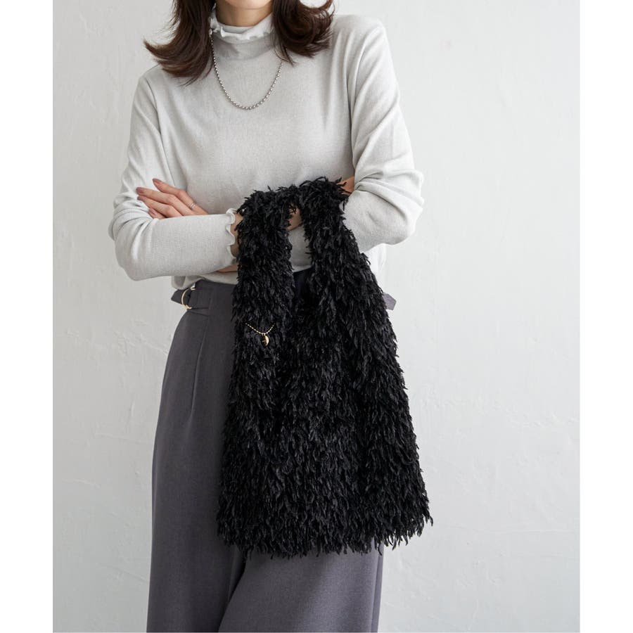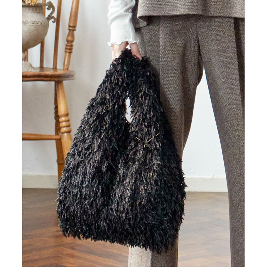 毛足感のあるフェイクファー素材と、やわらかなラメ素材を使用したトートバッグ。