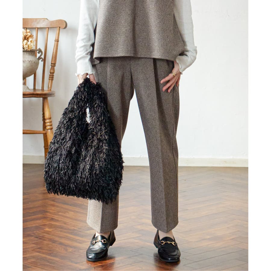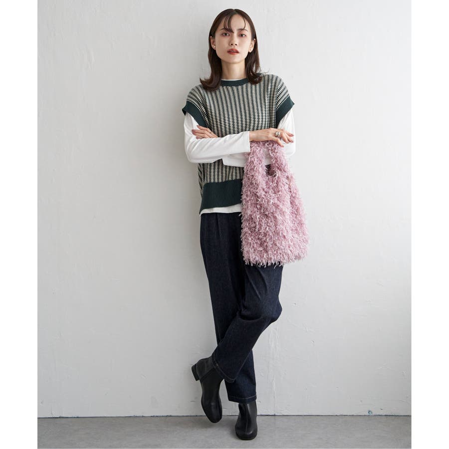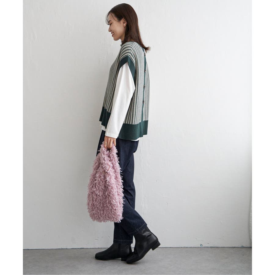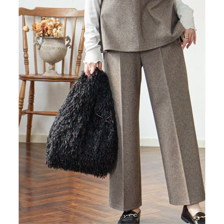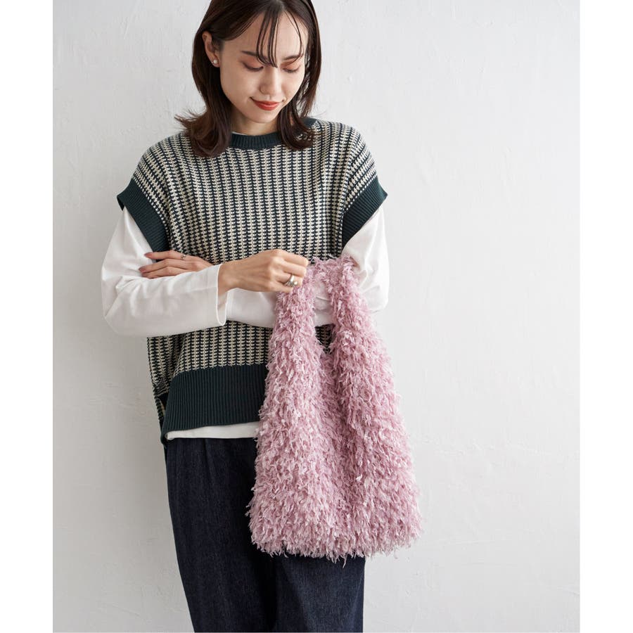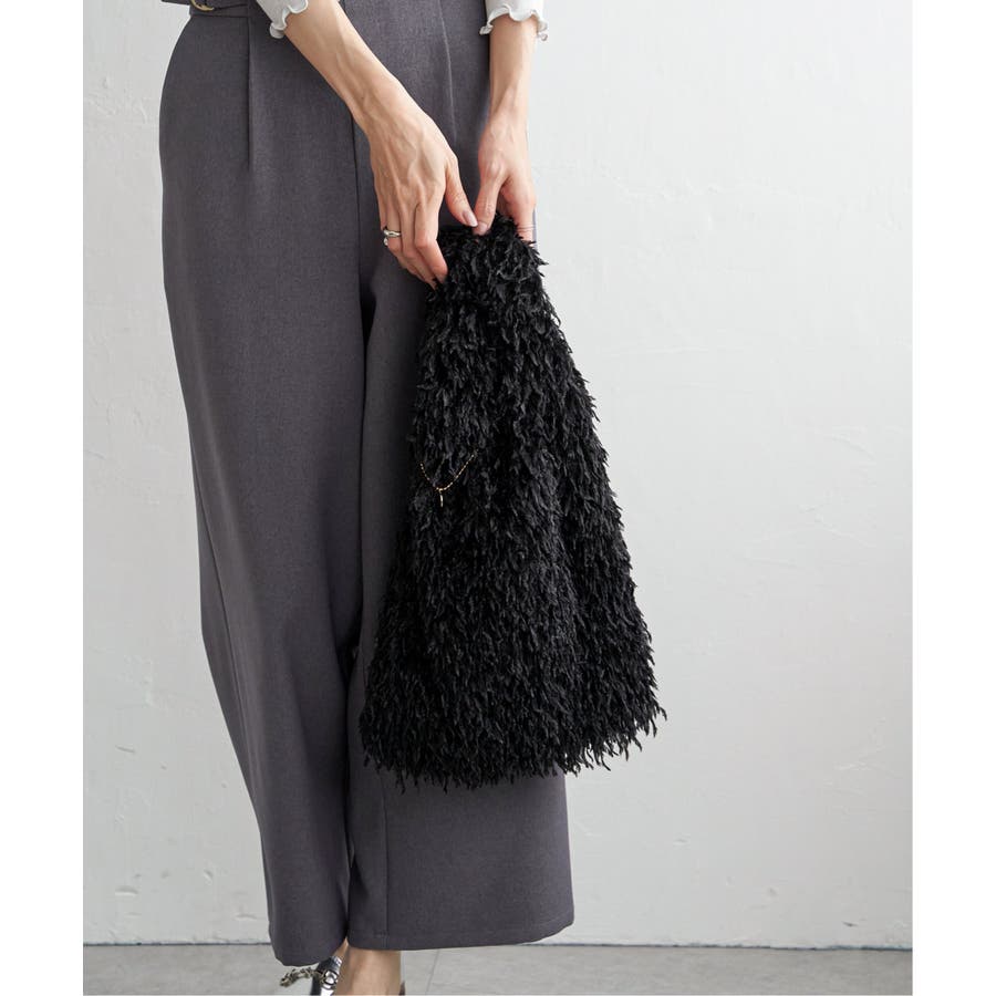 毛足感のあるフェイクファー素材と、やわらかなラメ素材を使用したトートバッグ。
