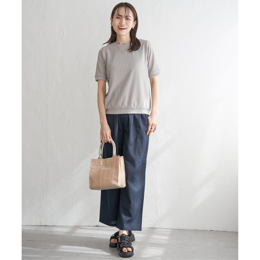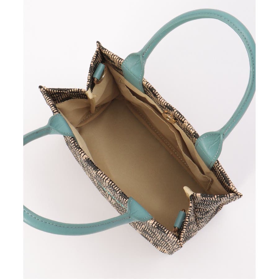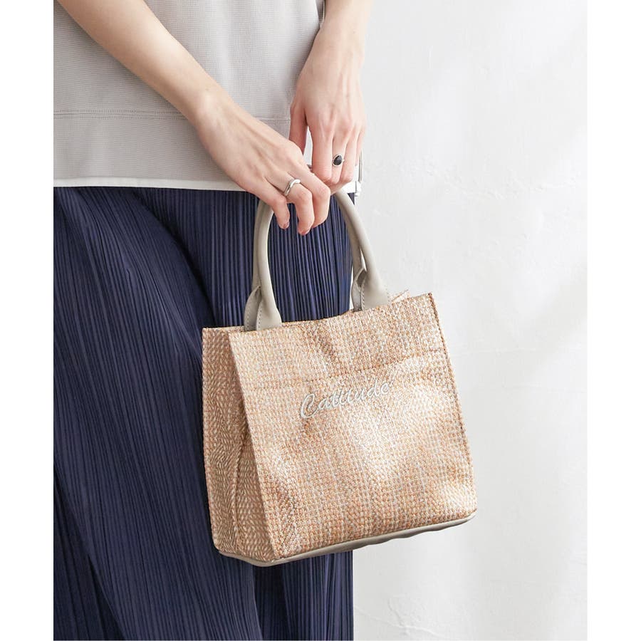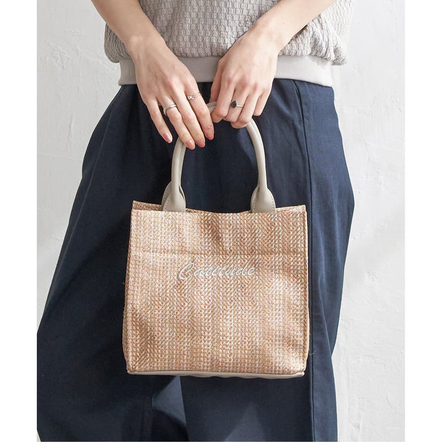 ナチュラルな風合いを演出する雑材見えのシート素材に、合皮のアクセントを効かせた大人顔のミニトートショルダー。