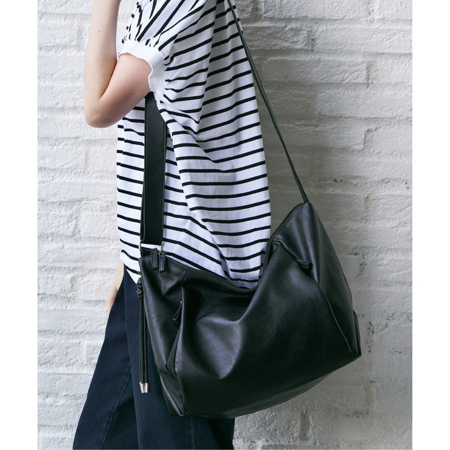 【軽量】撥水合皮ハーフムーンビッグショルダーバッグ