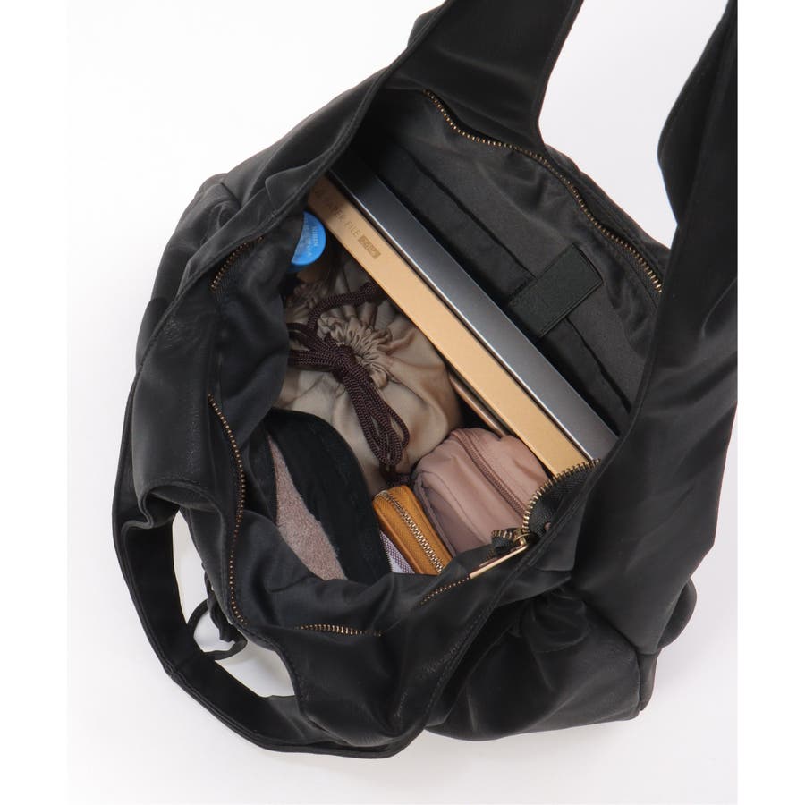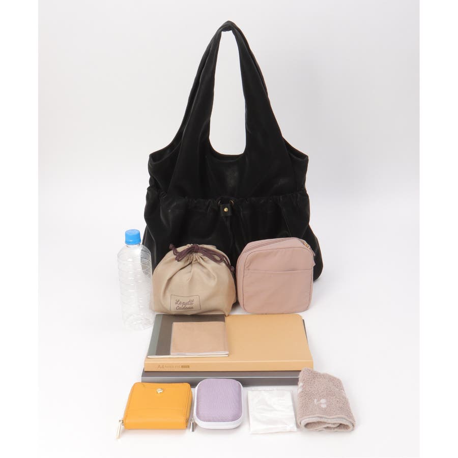 見た目以上の収納力で、500mLペットボトルやお財布、ポーチなどもすっきり収まります。