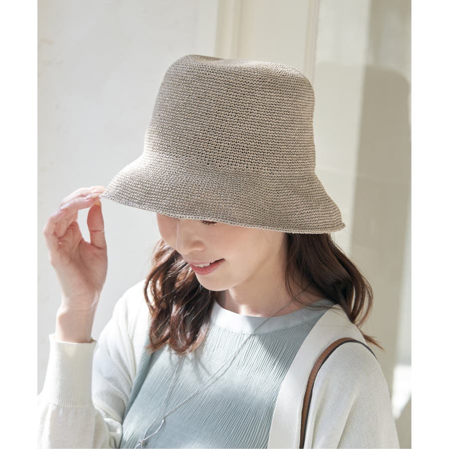 軽やかで涼しげな風合いが、季節感をさりげなく引き立てる雑材細こま編みハット。
