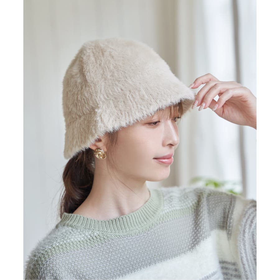 毛足の短いシャギー素材を使用したシーズンライクなハット。
