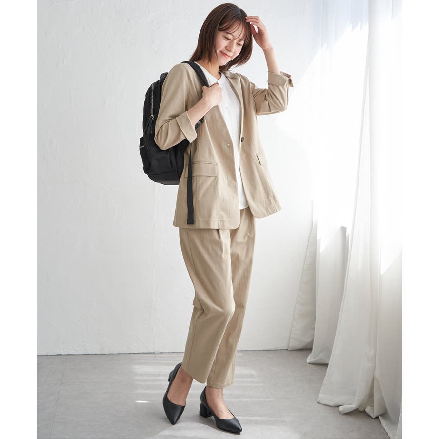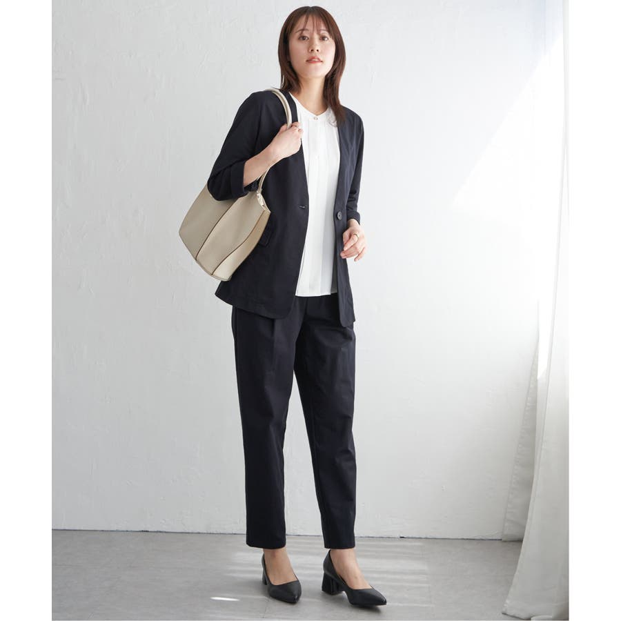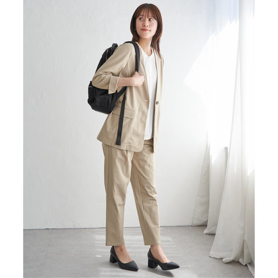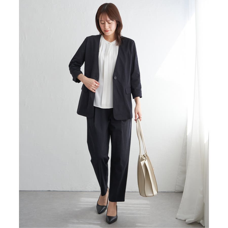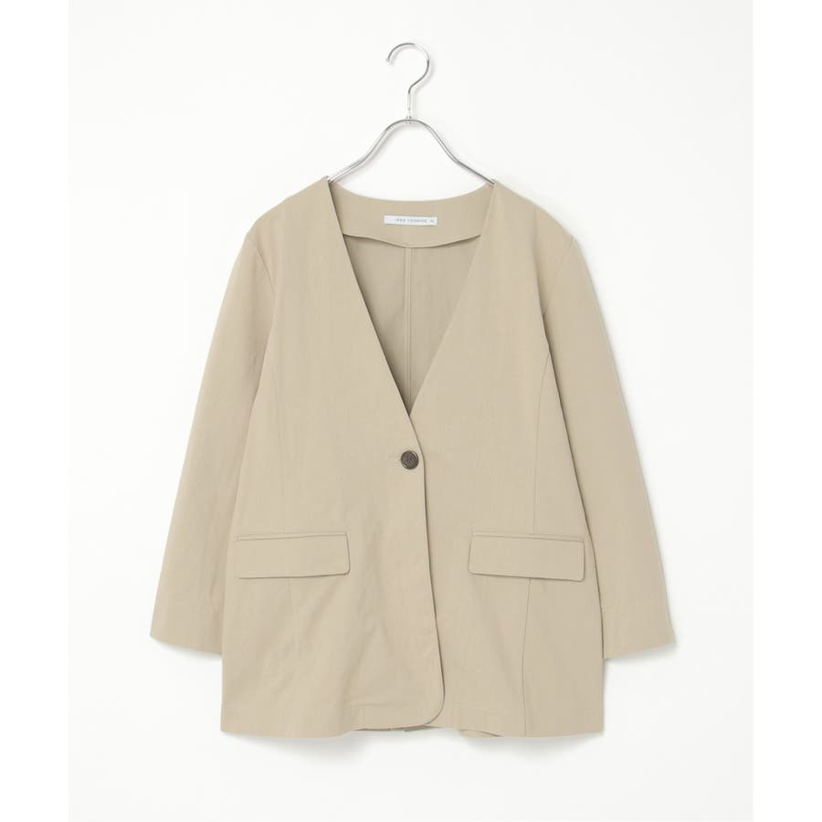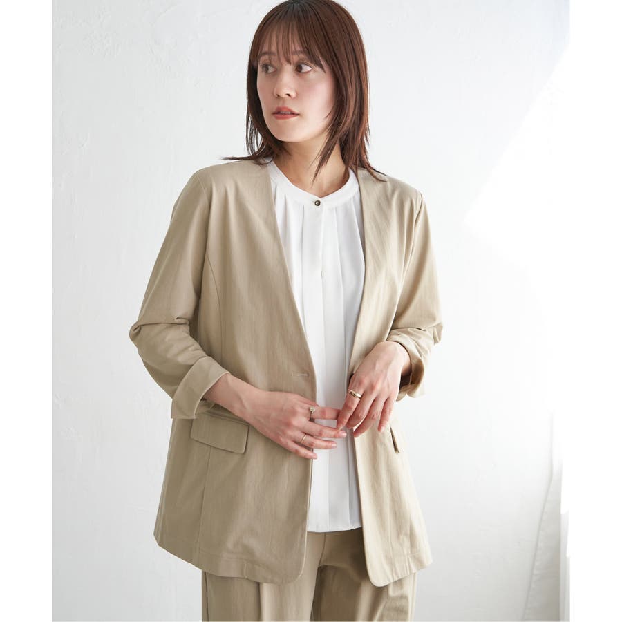 ベーシックなVネックデザインで、どんなシーンでも活躍するノーカラージャケット。
