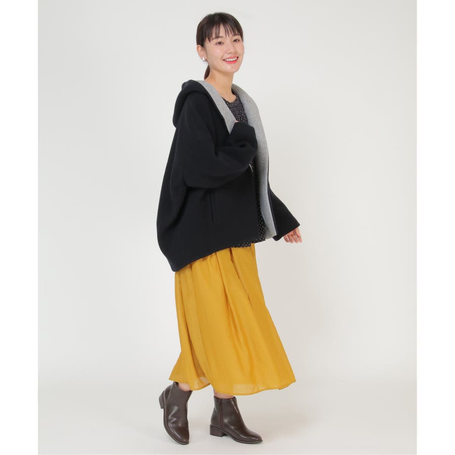 コクーンシルエットでゆったりしているため、厚手ニットを中に着ても着ぶくれせず、冬の旬な顔になれるアイテムです。