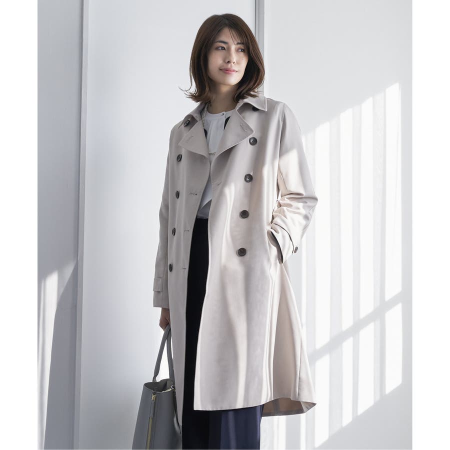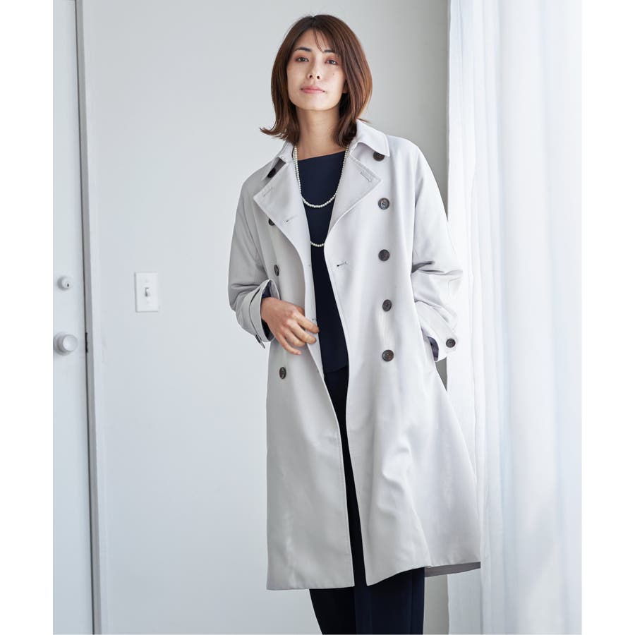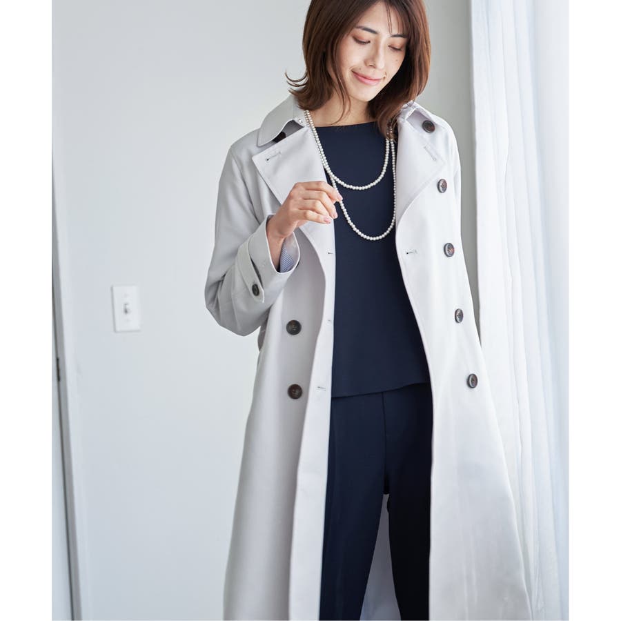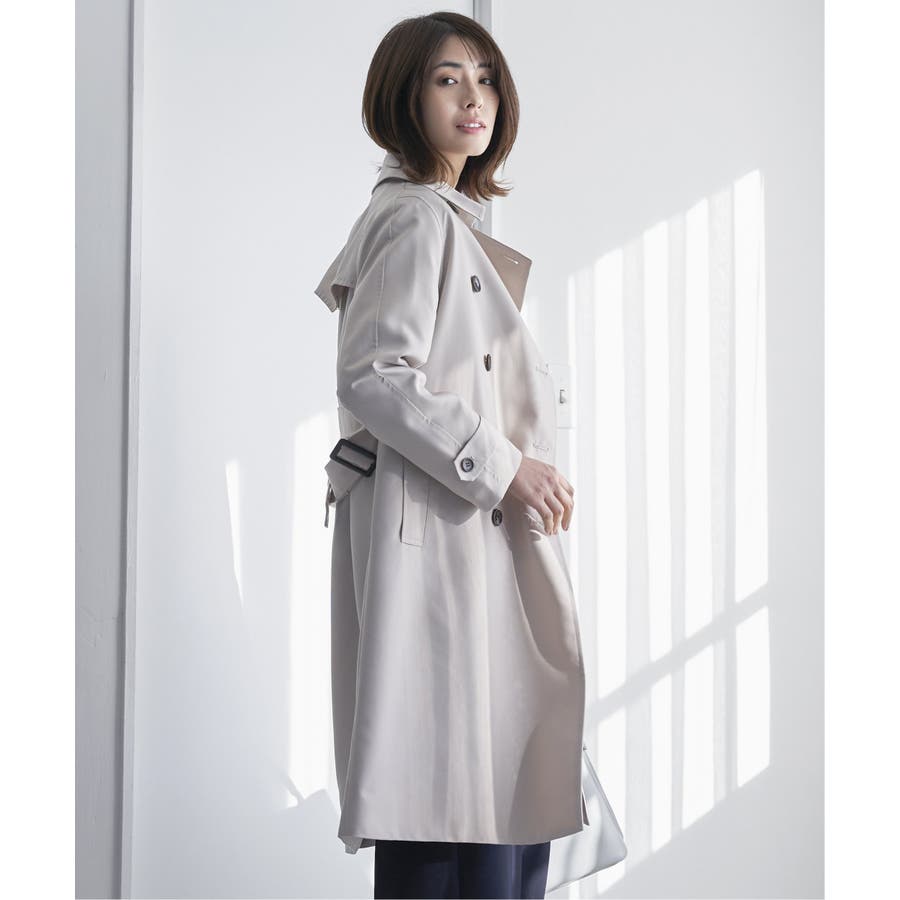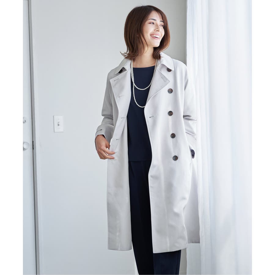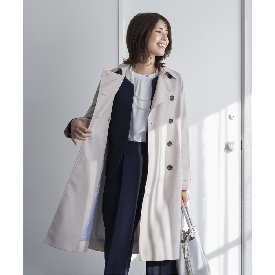 キチンとした印象のあるトレンチコートで、オフィシャルな場面でもデイリーな場面でも着ていただけるデザインです。