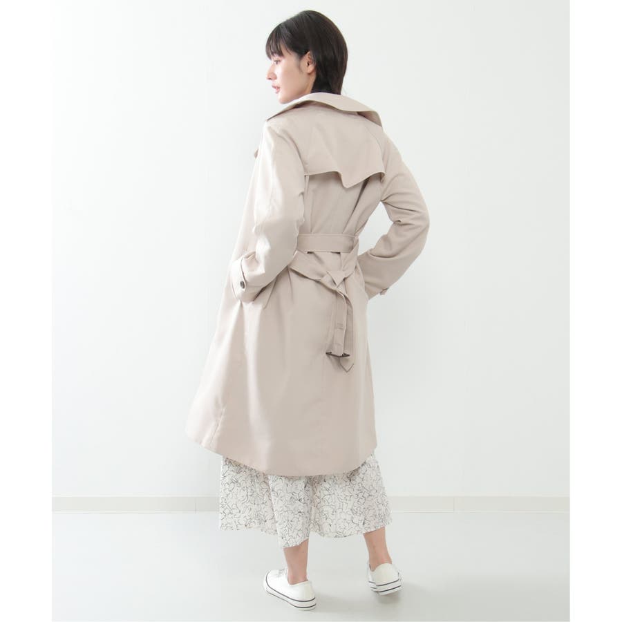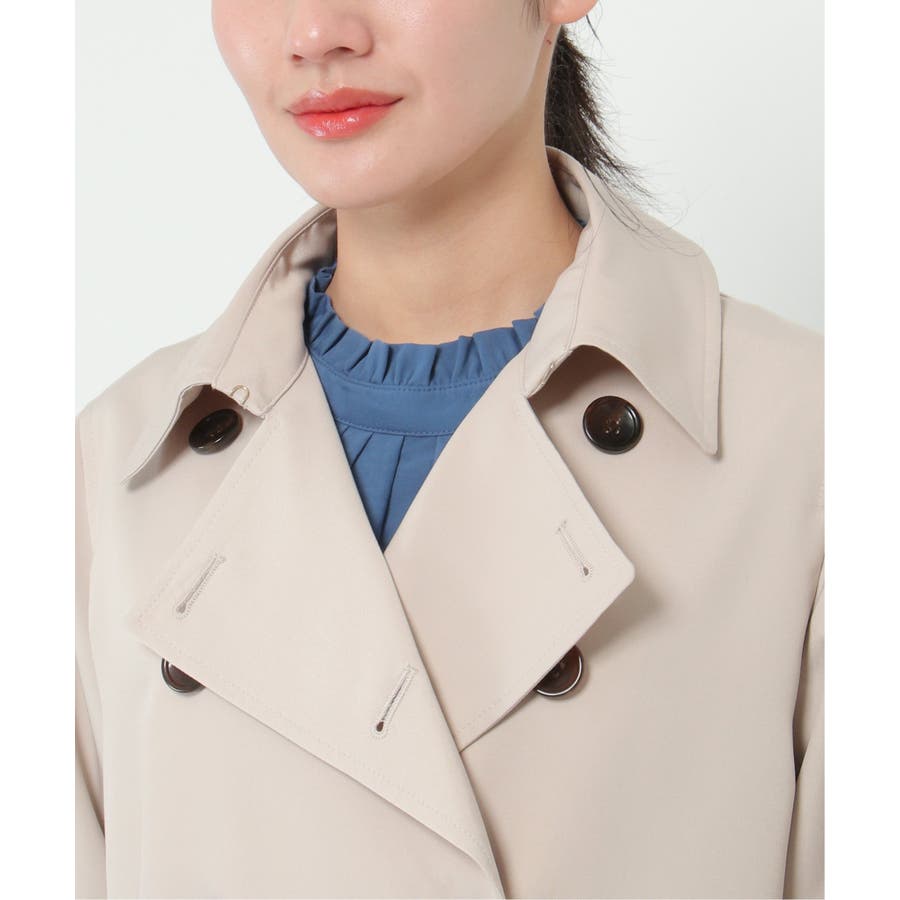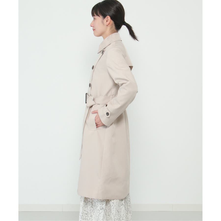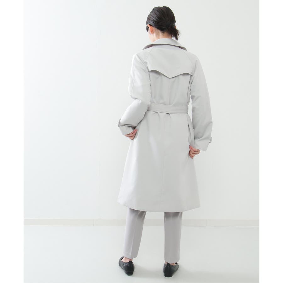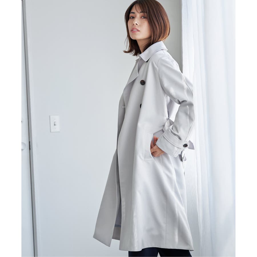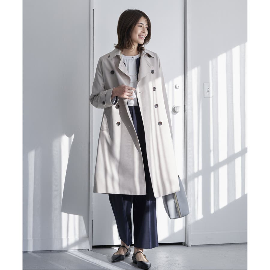 キチンとした印象のあるトレンチコートで、オフィシャルな場面でもデイリーな場面でも着ていただけるデザインです。