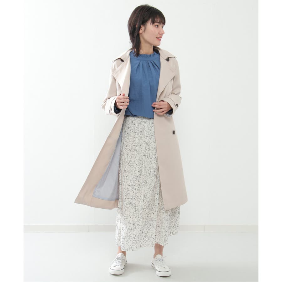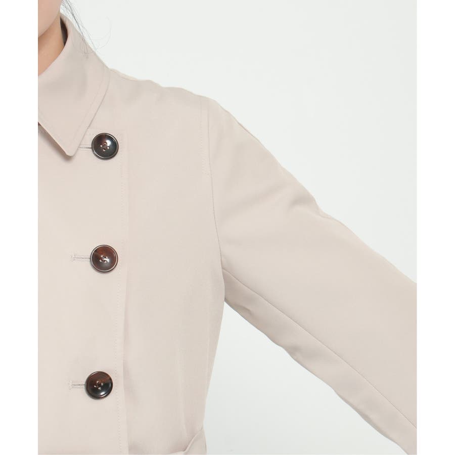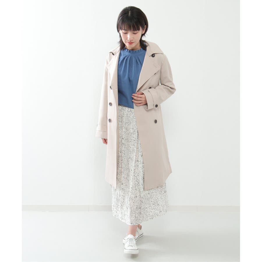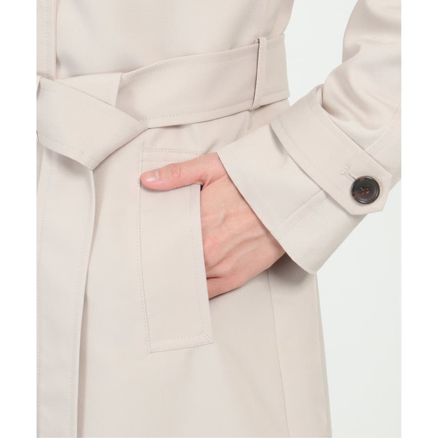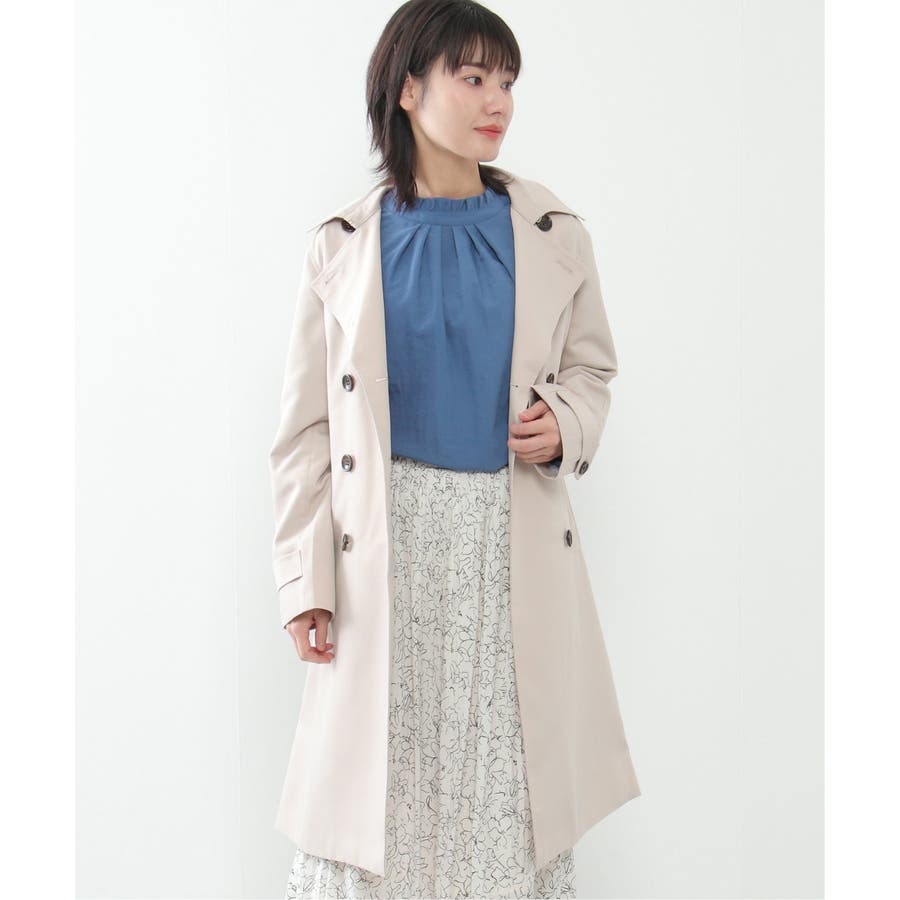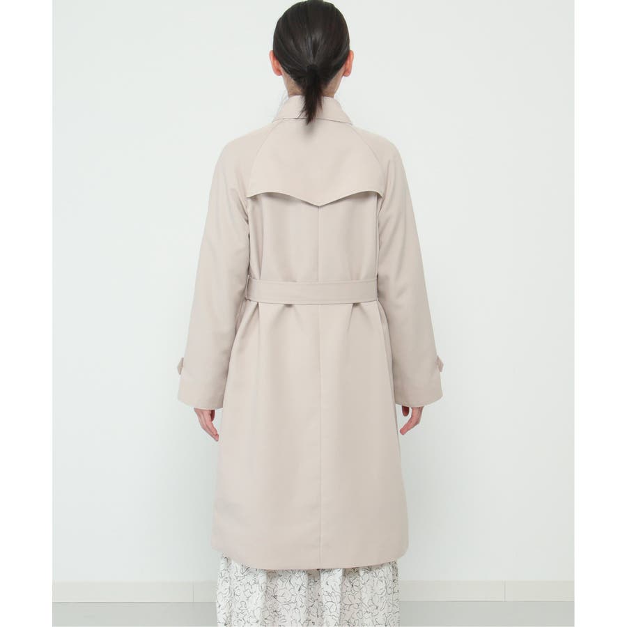 キチンとした印象のあるトレンチコートで、オフィシャルな場面でもデイリーな場面でも着ていただけるデザインです。
