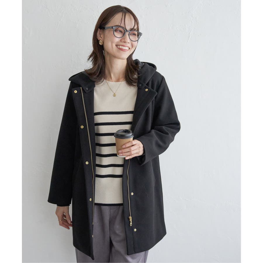 ウールライクストレッチフードコート