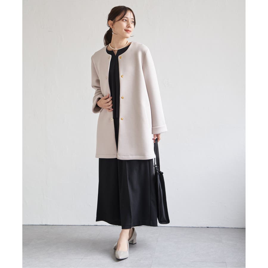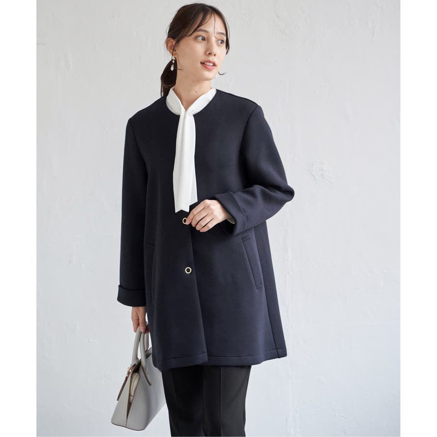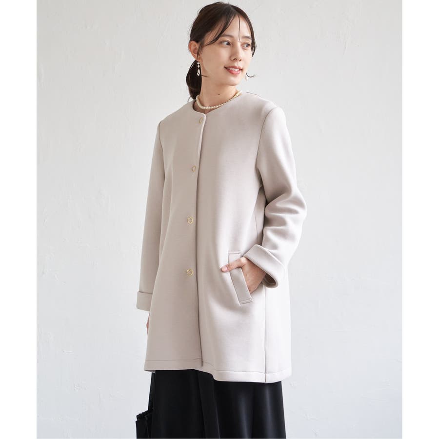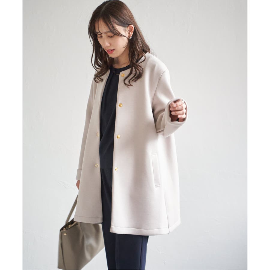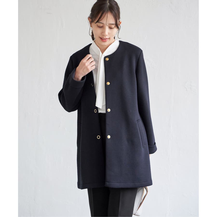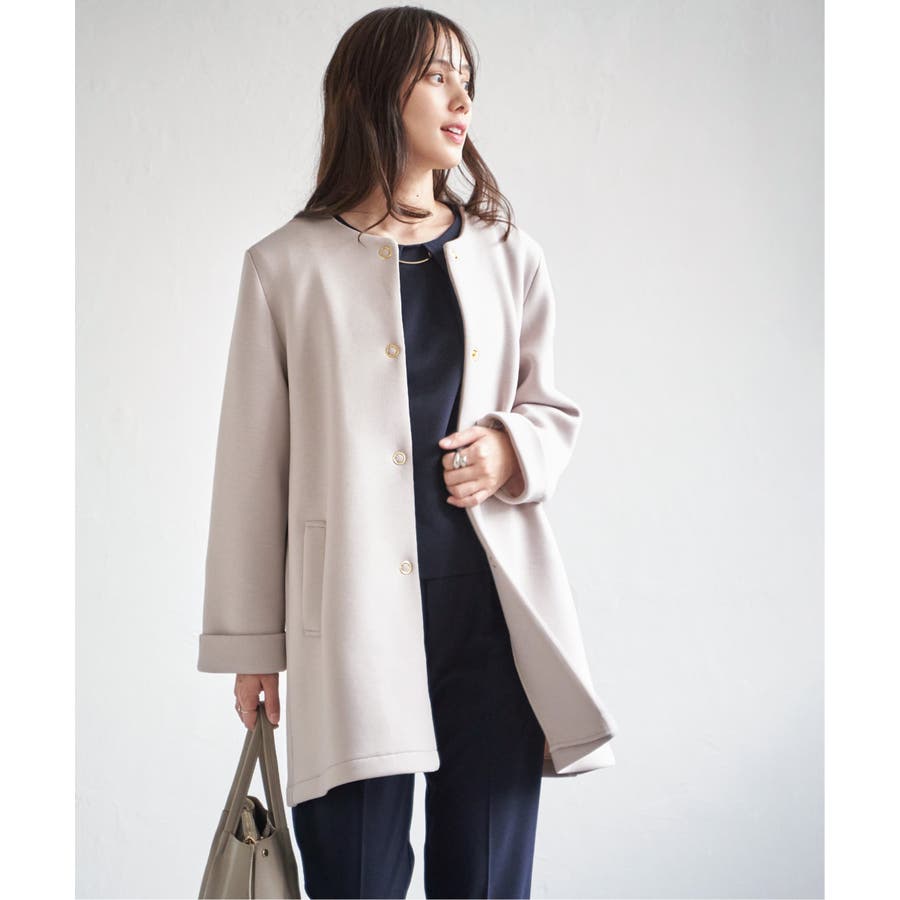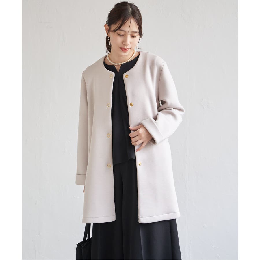 上品な佇まいで日常からセレモニーまで活躍するノーカラーコート。