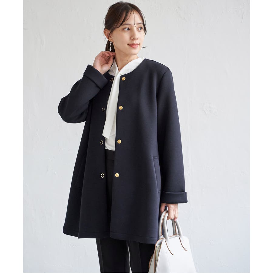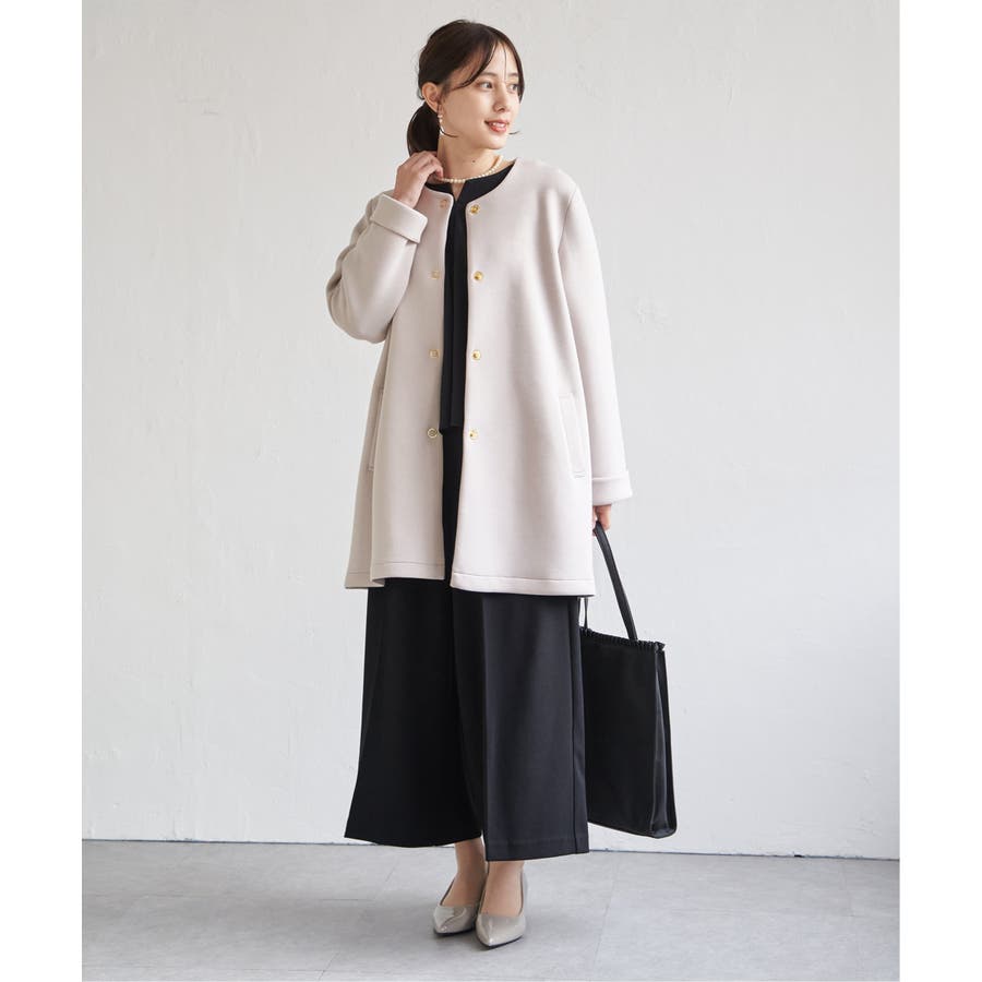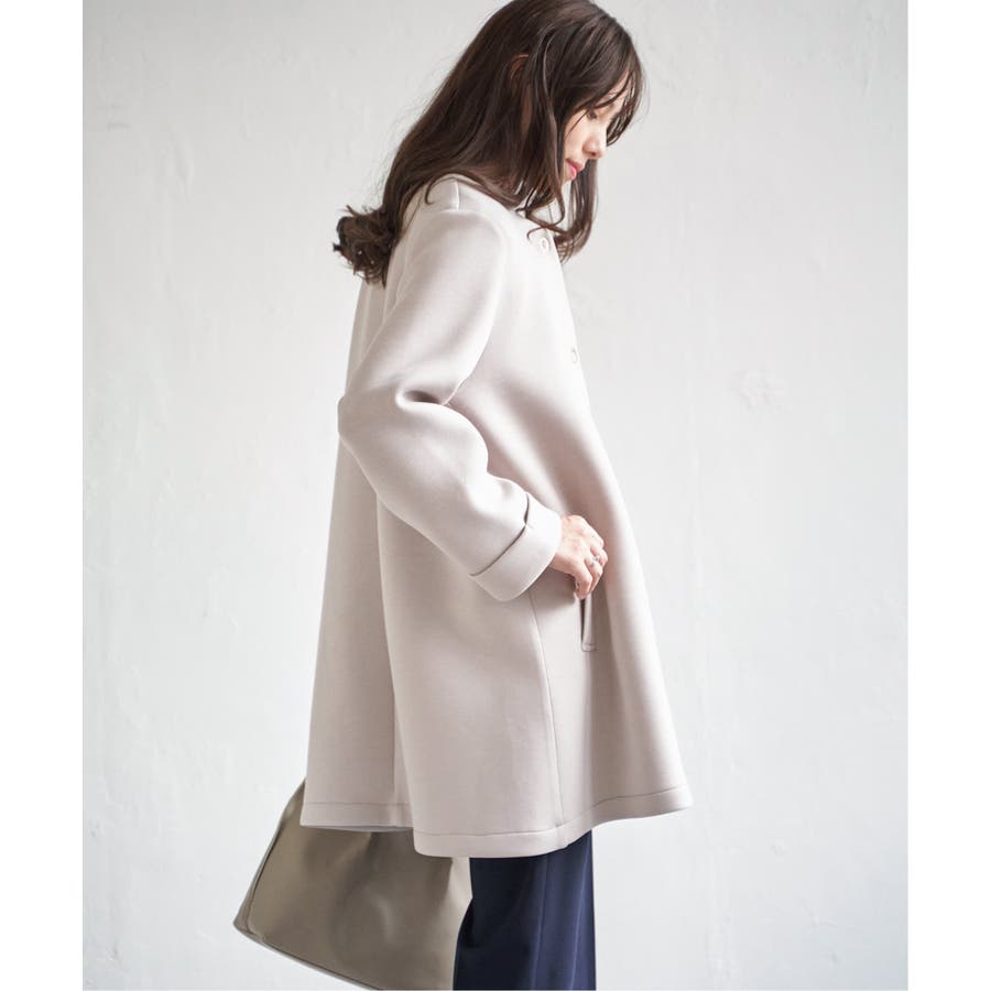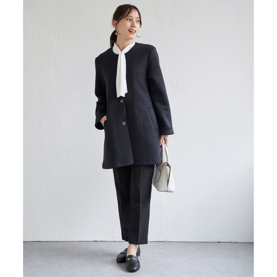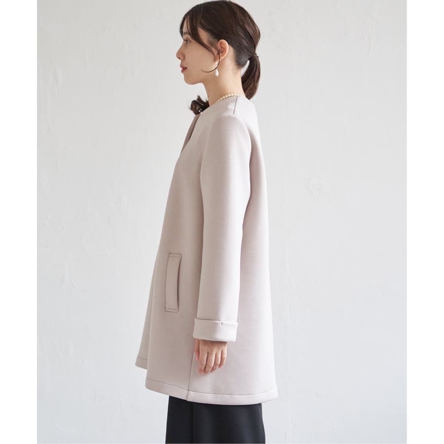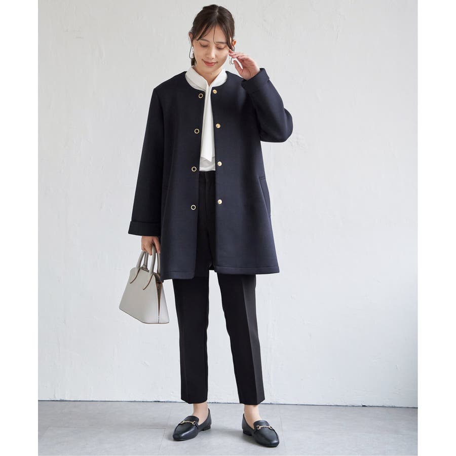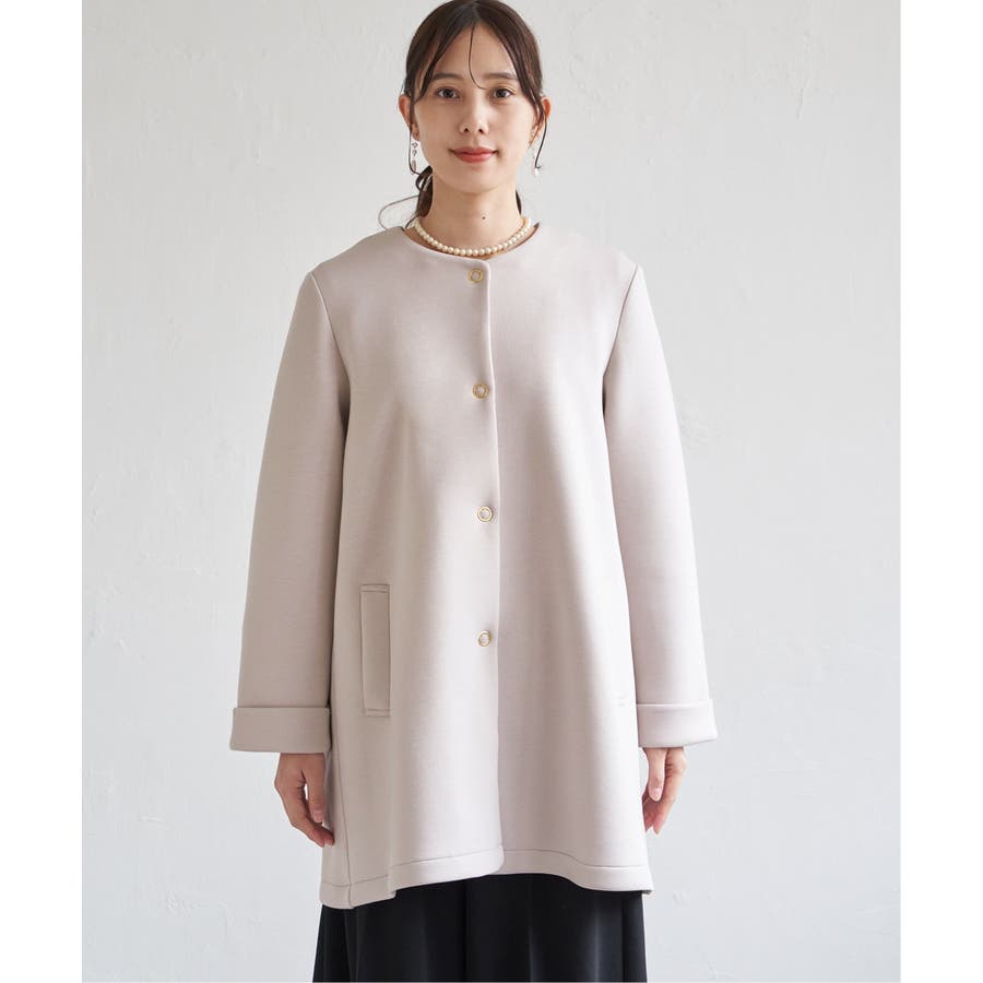 上品な佇まいで日常からセレモニーまで活躍するノーカラーコート。