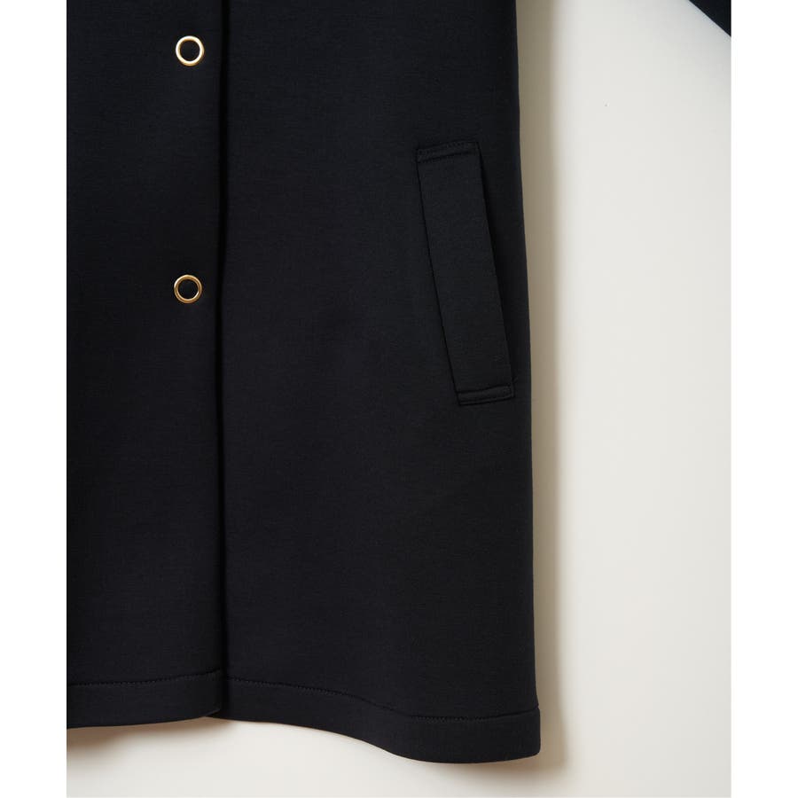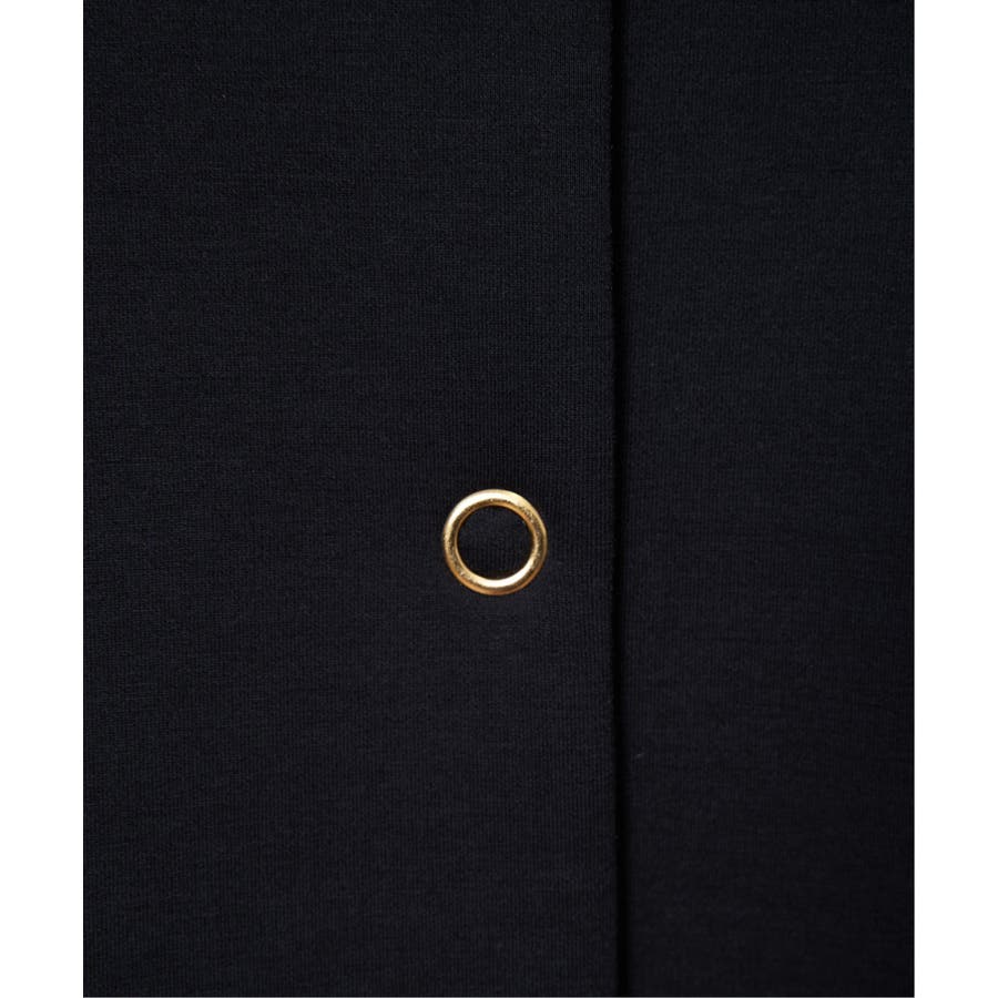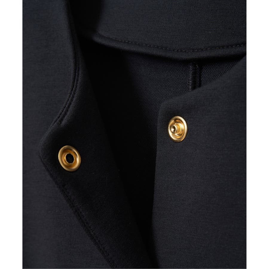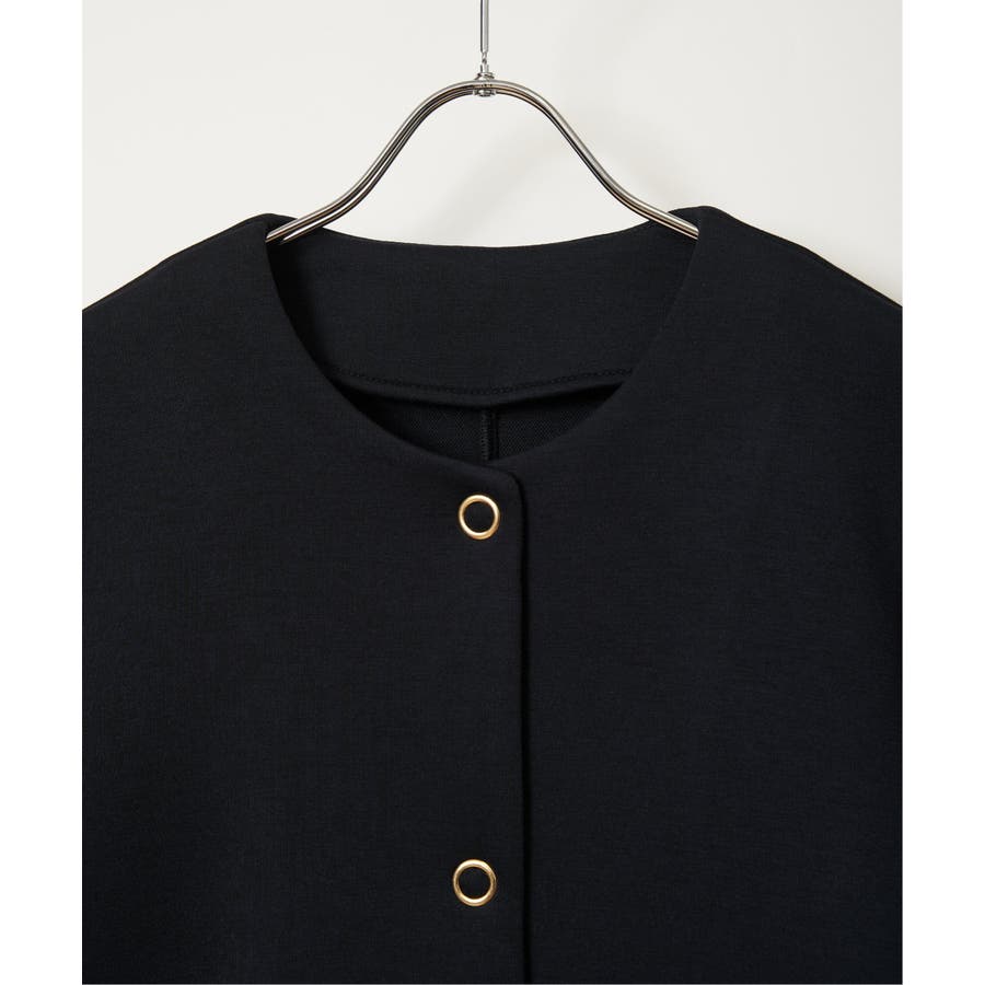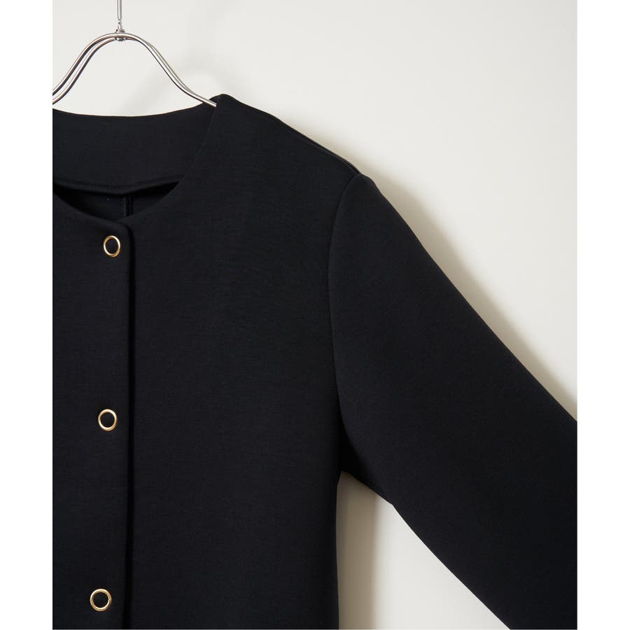 軽やかで立体的な素材に、ゴールドカラーのリングドットボタンを添え、クラシックな雰囲気を漂わせる一着です。