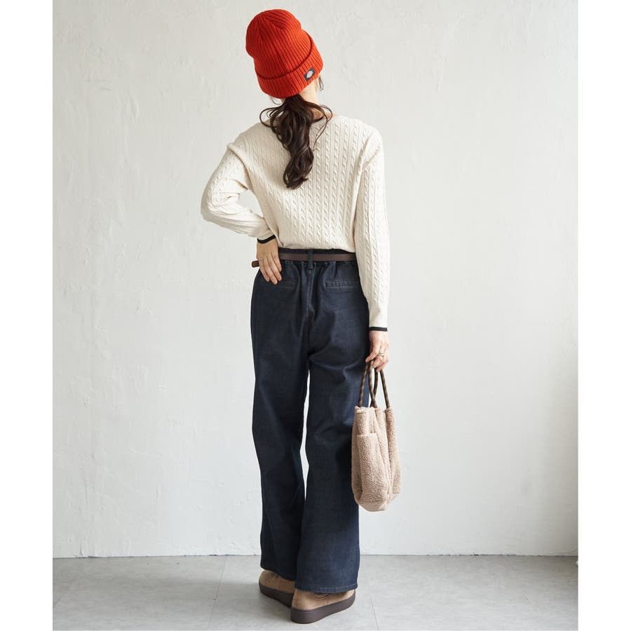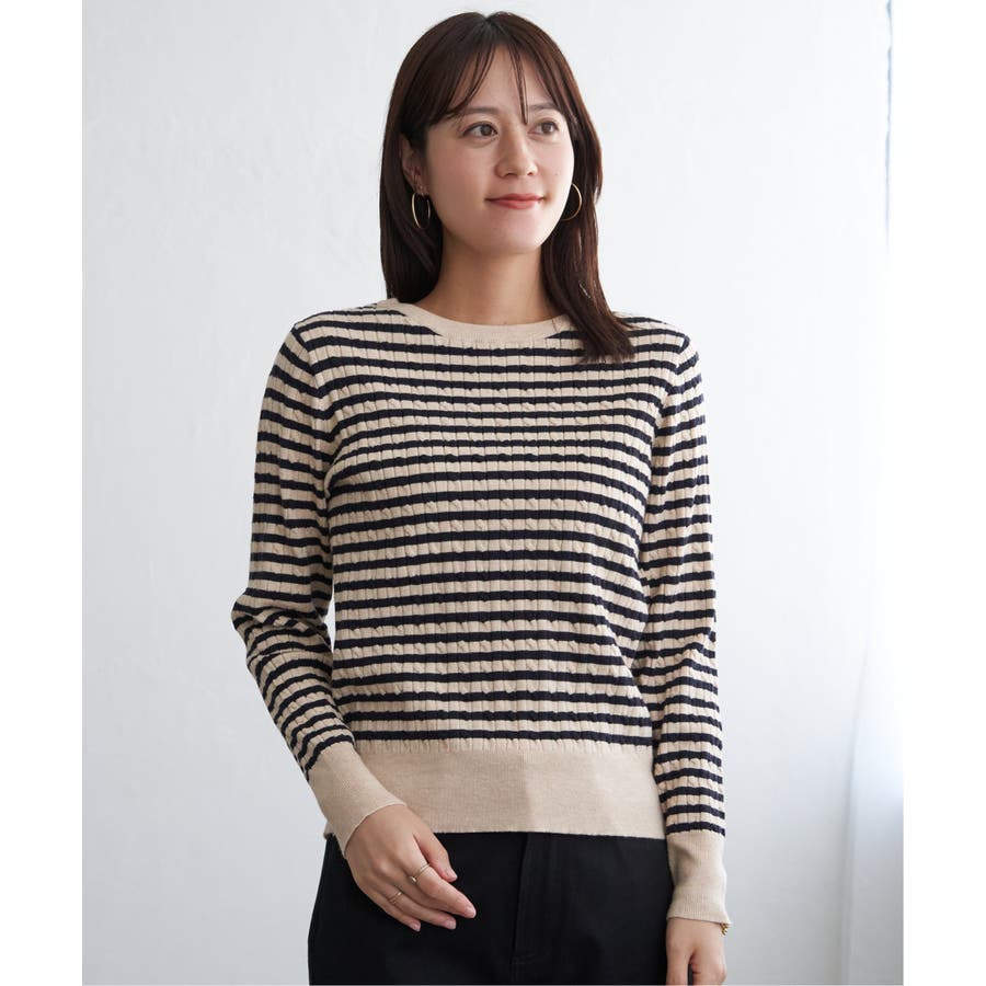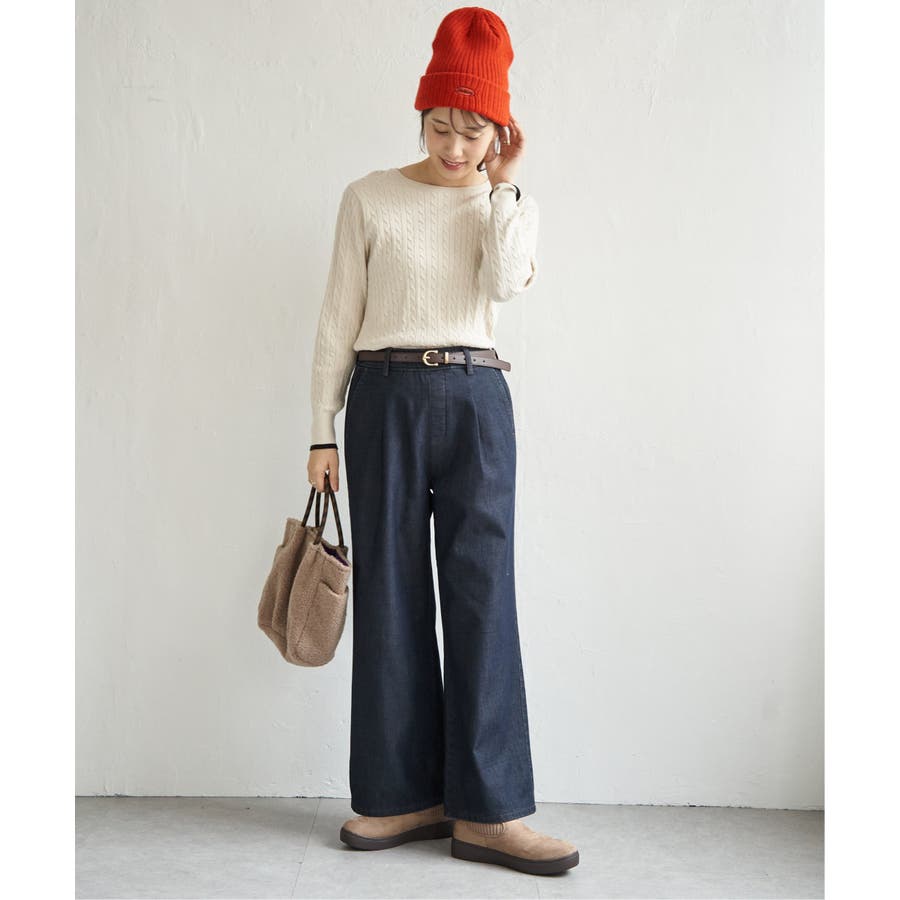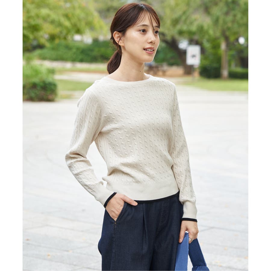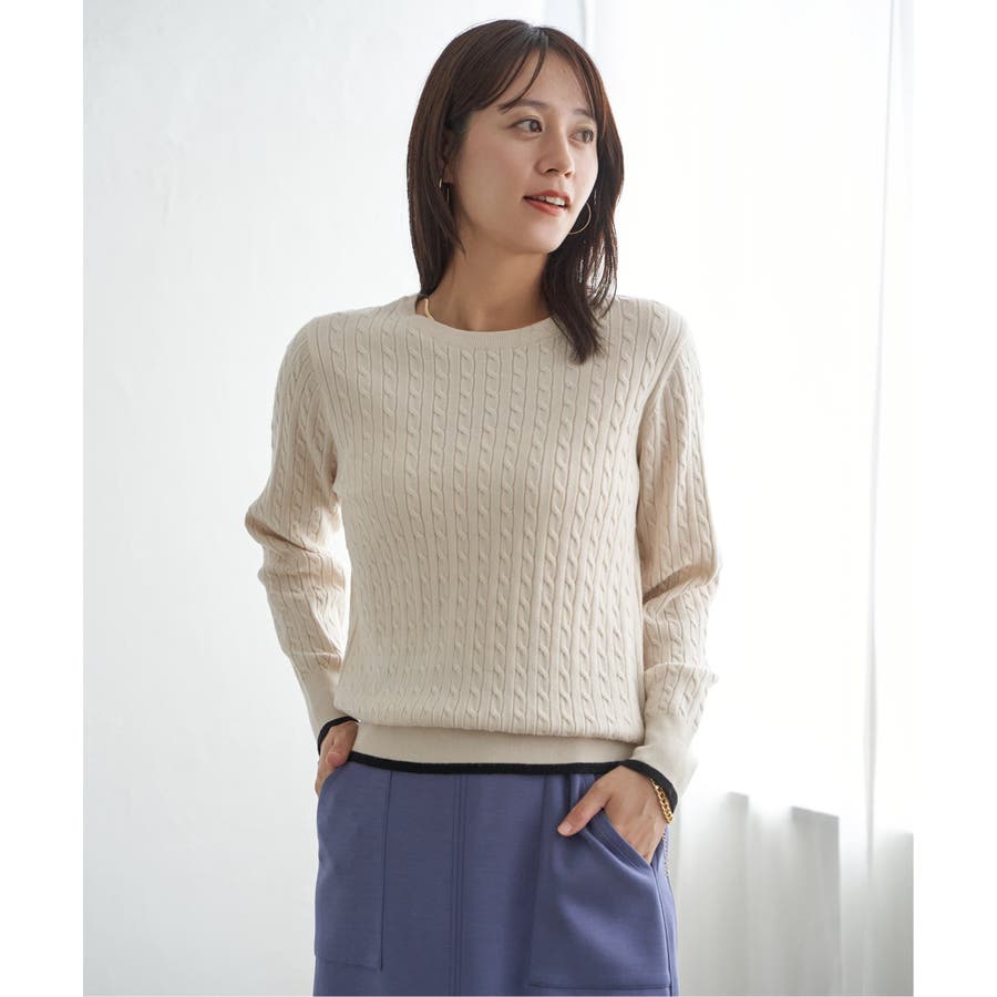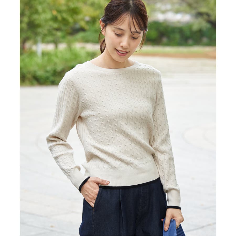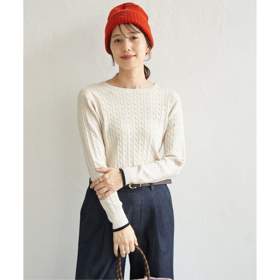 きれい目で大人でも着やすい、ハイゲージのミニケーブルプルオーバー。