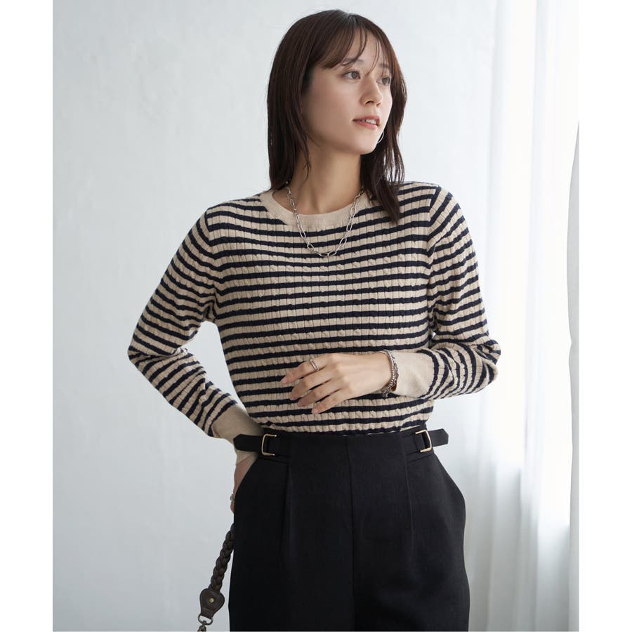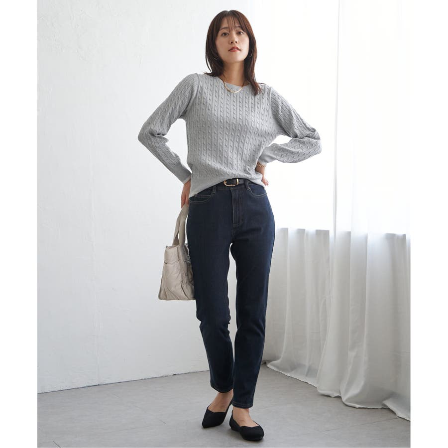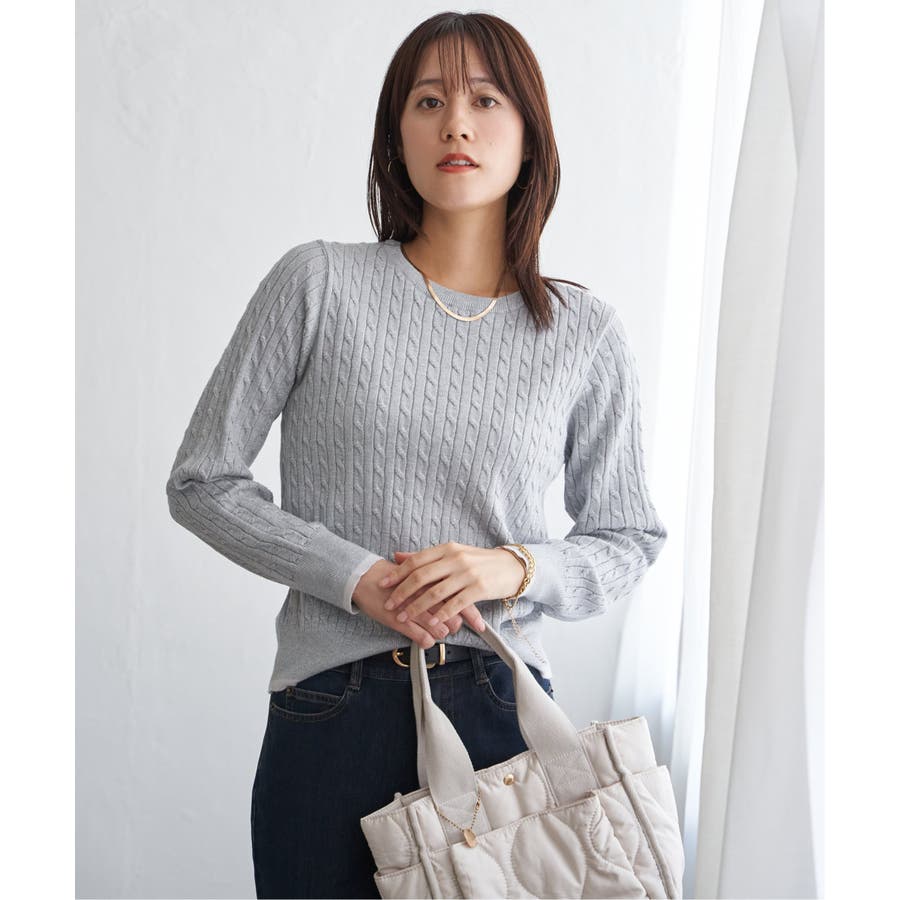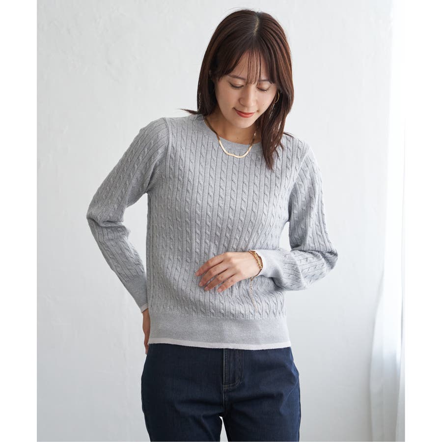 繊細なミニケーブル柄がさりげなく表情を添えるハイゲージニットプルオーバー。