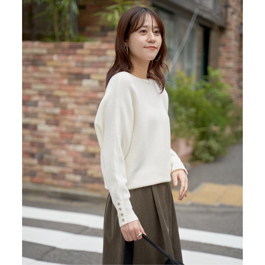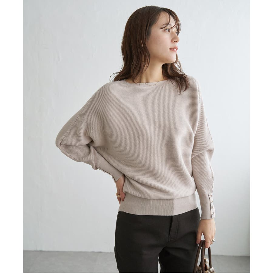 襟元がきれいに見えるボートネックで、腕周りがゆったりしたドルマン型プルオーバーです。