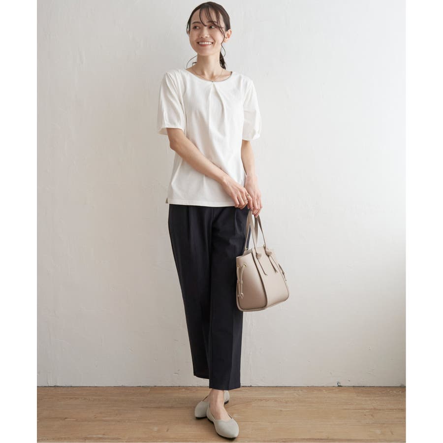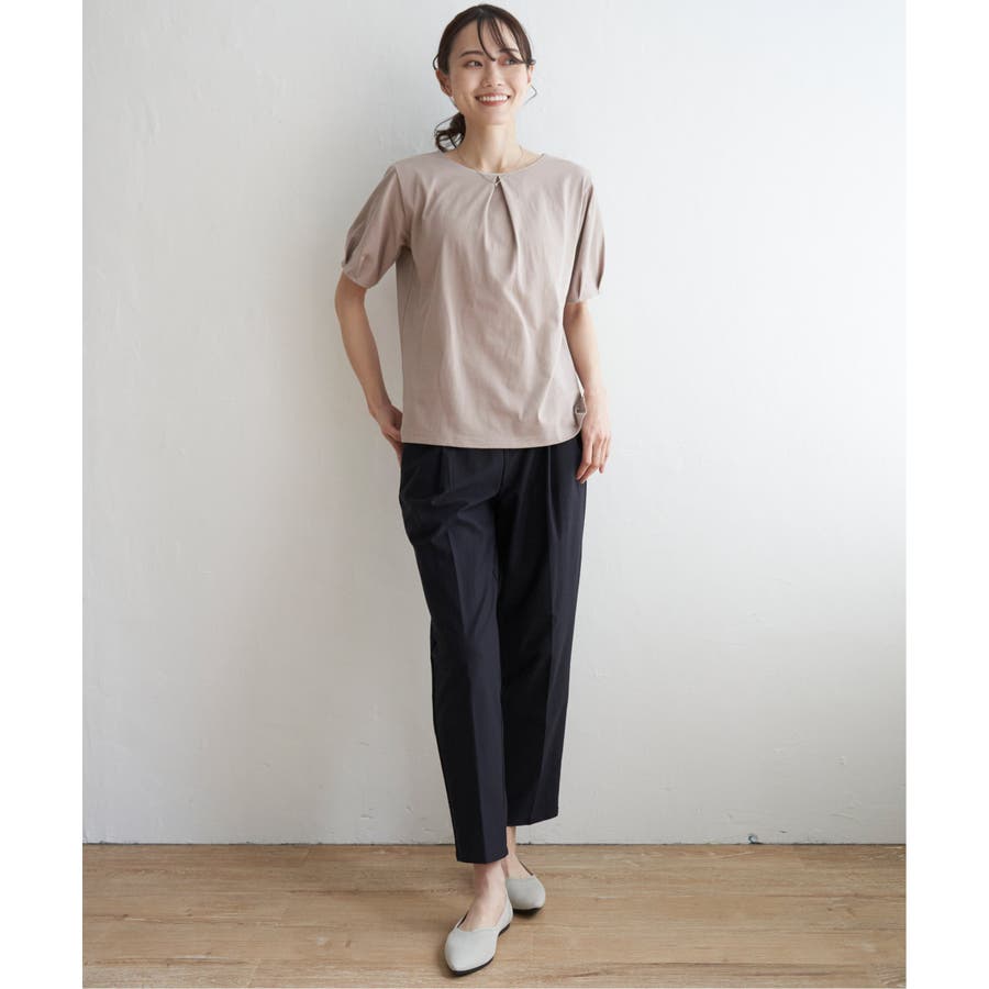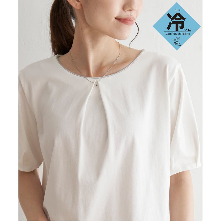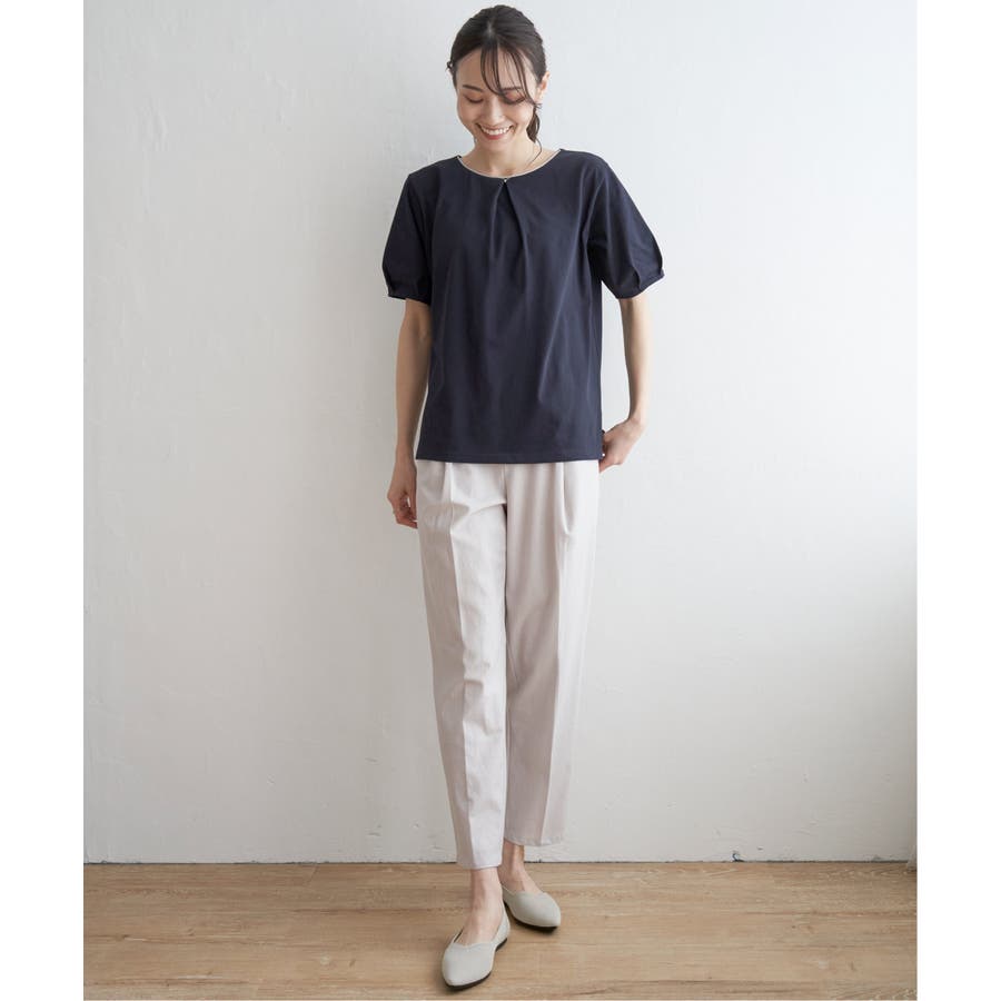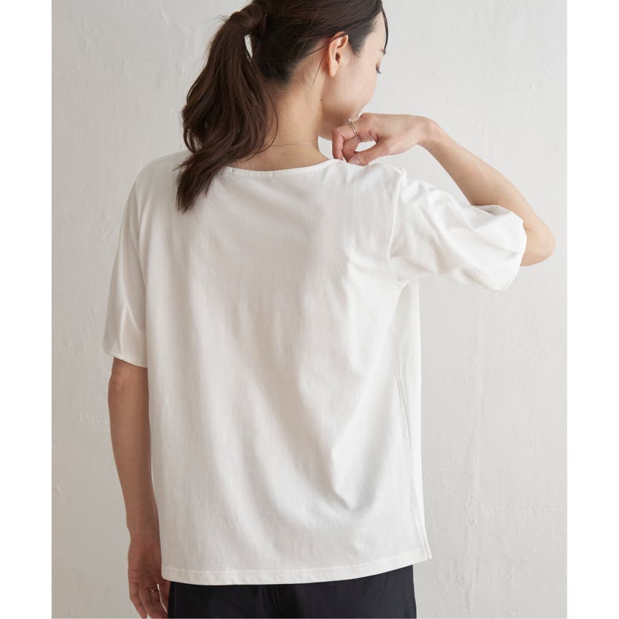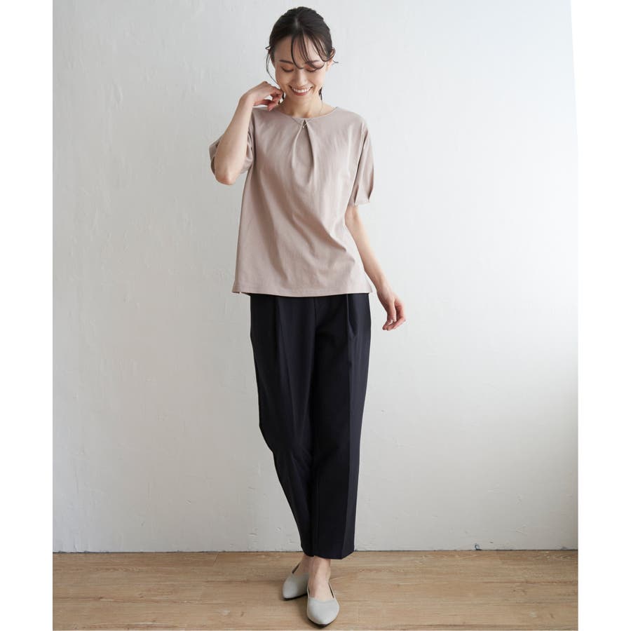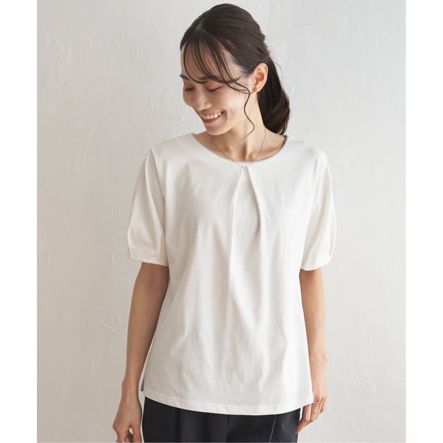 カットソーでTシャツ感覚の着心地ながら、ブラウス見えする大人にうれしい一枚です。