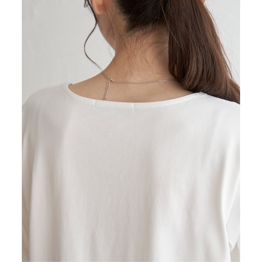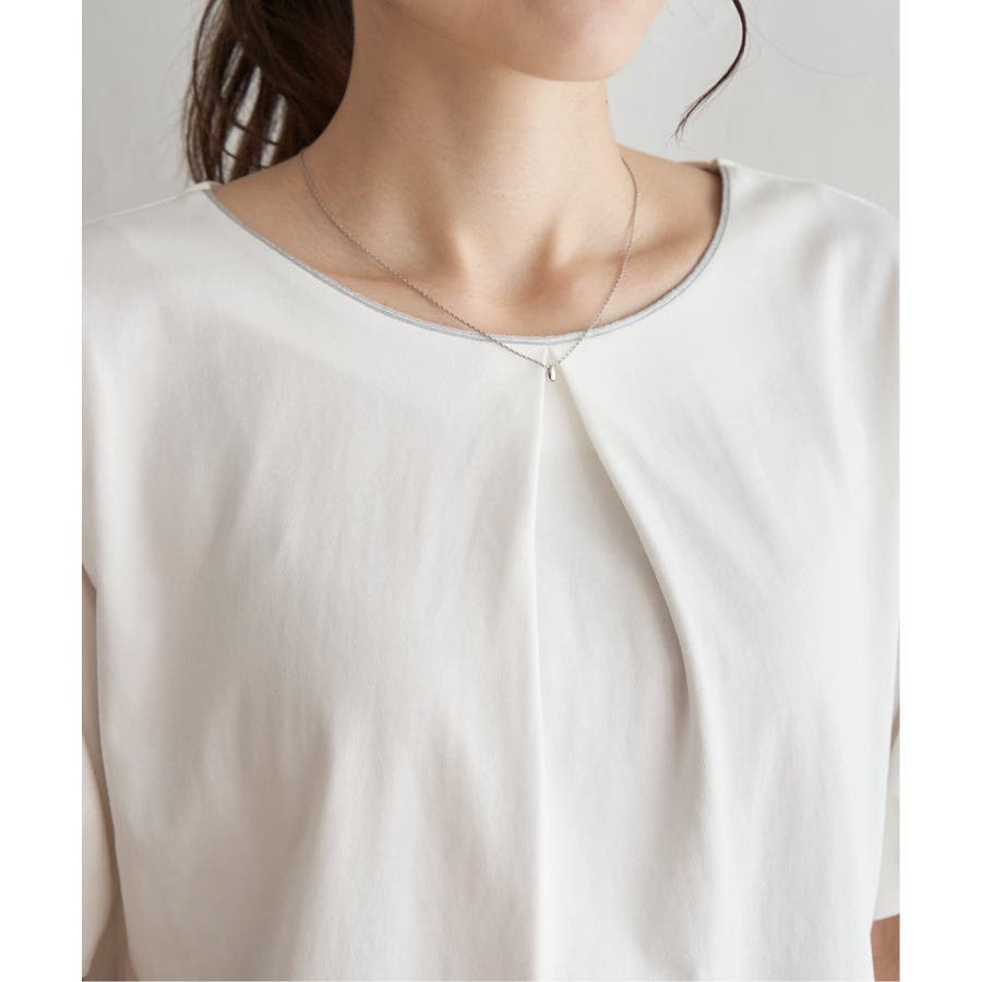 ネックにラメコードを配し、ネックレスをしているような雰囲気の綺麗めカットソーです。