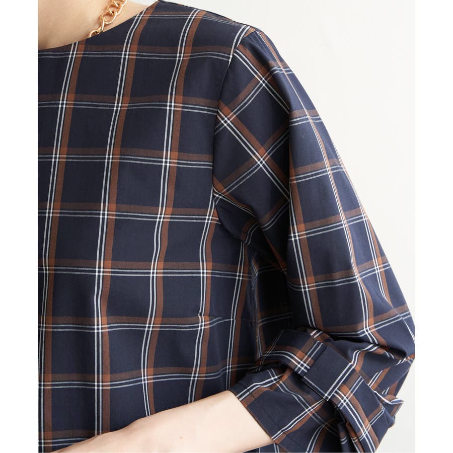 袖口のリボンでさり気なく女性らしさを添えたブラウス。