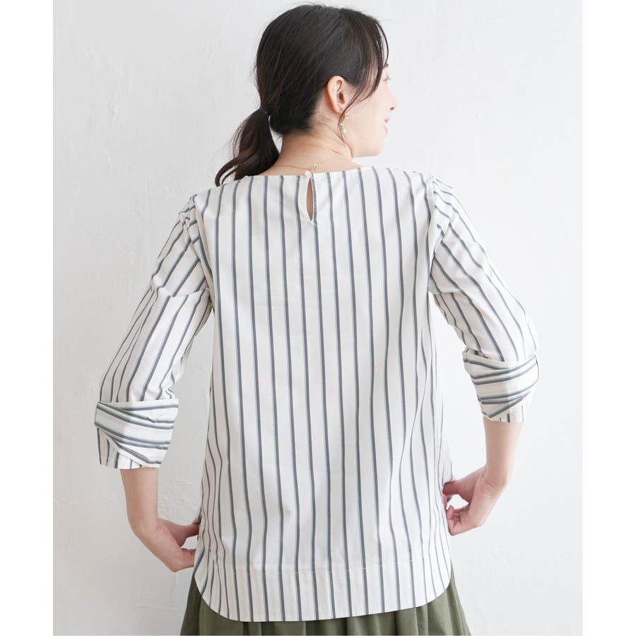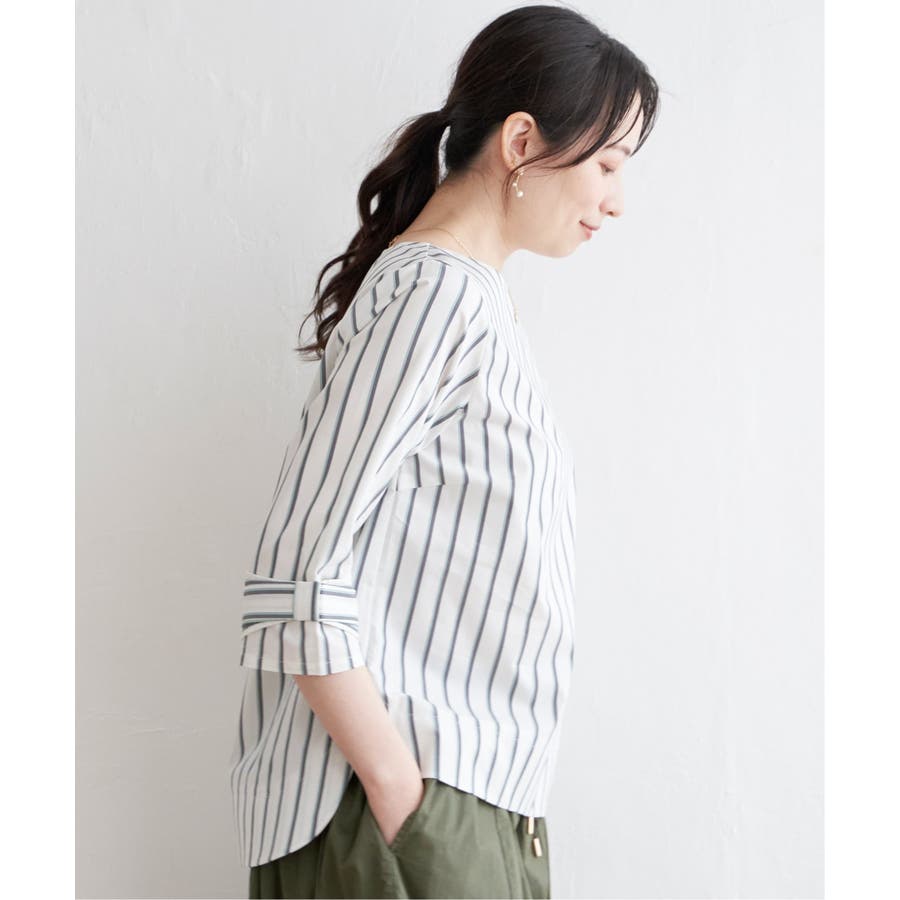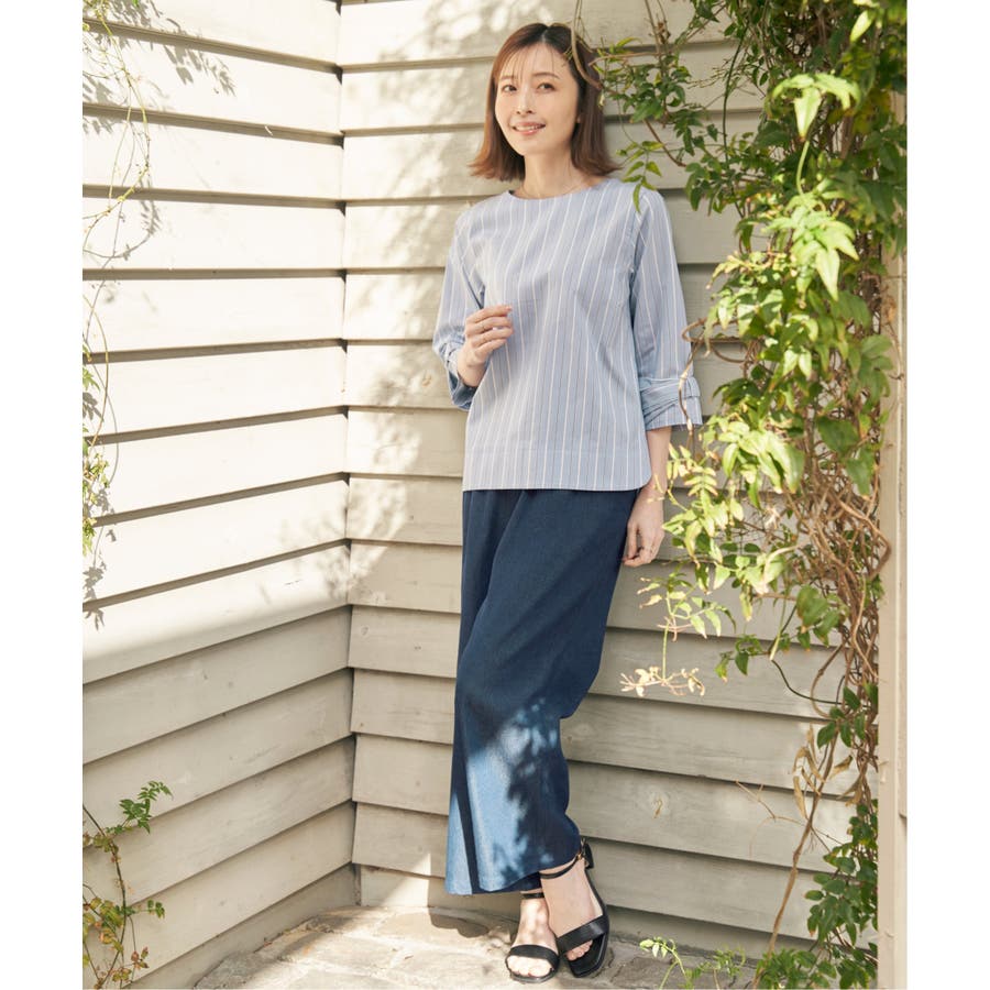 さり気ない袖リボンが上品で可愛らしいブラウス。