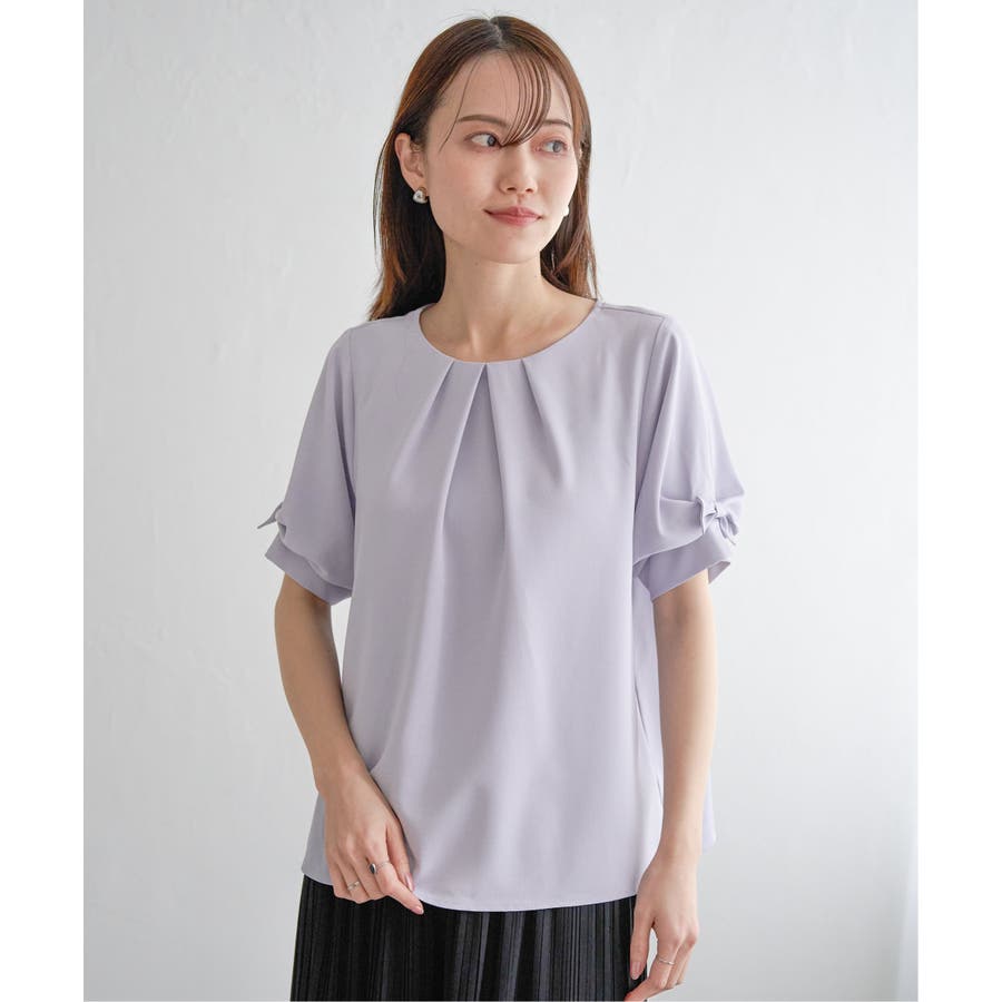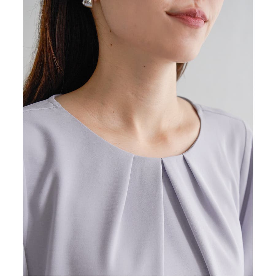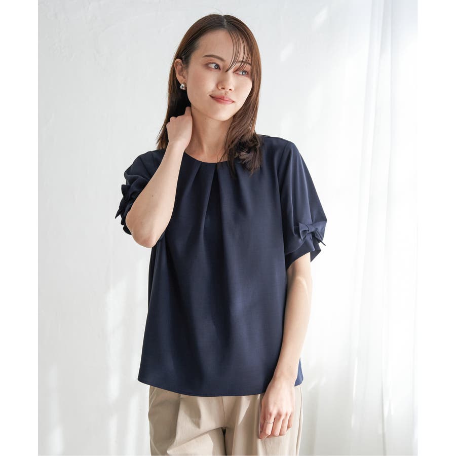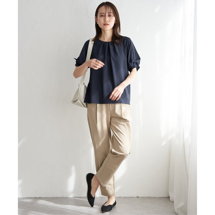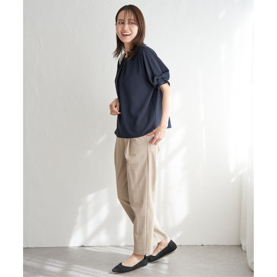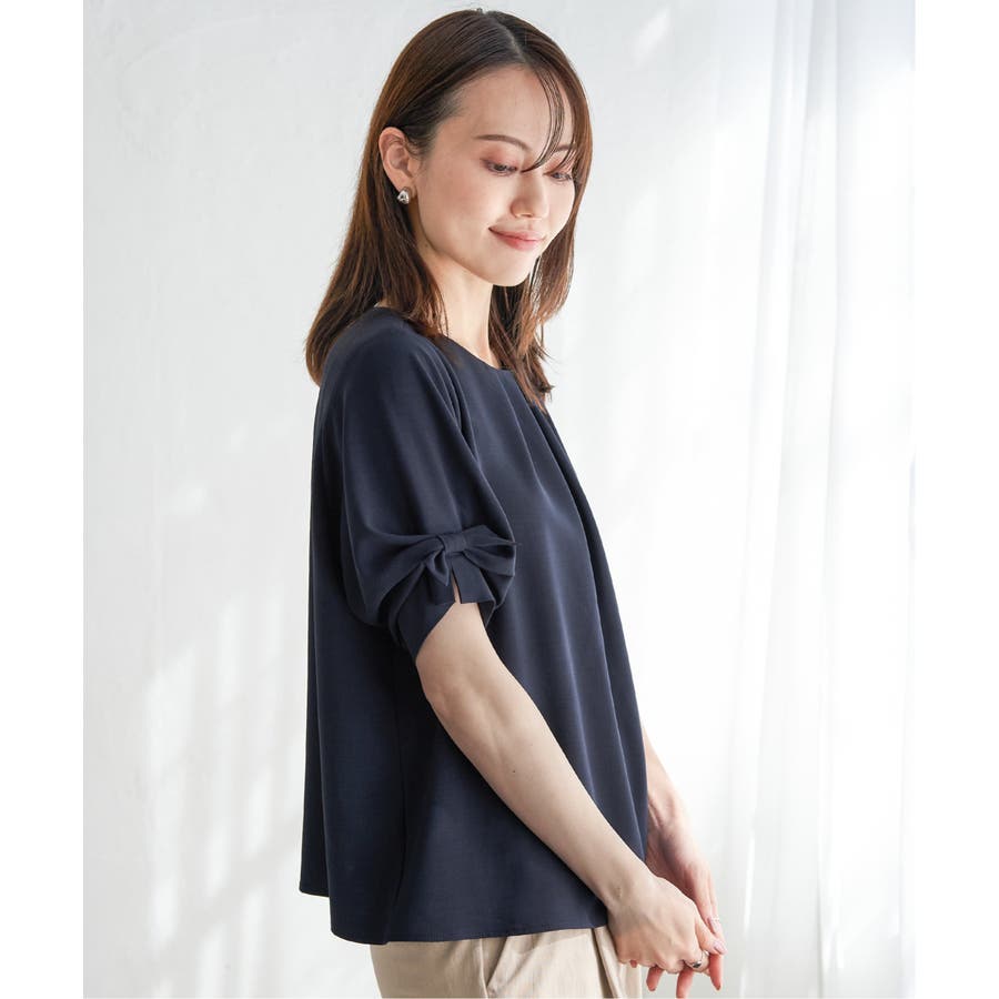 麻調のドライタッチ素材で、さらりとした着心地が特徴的なブラウス。