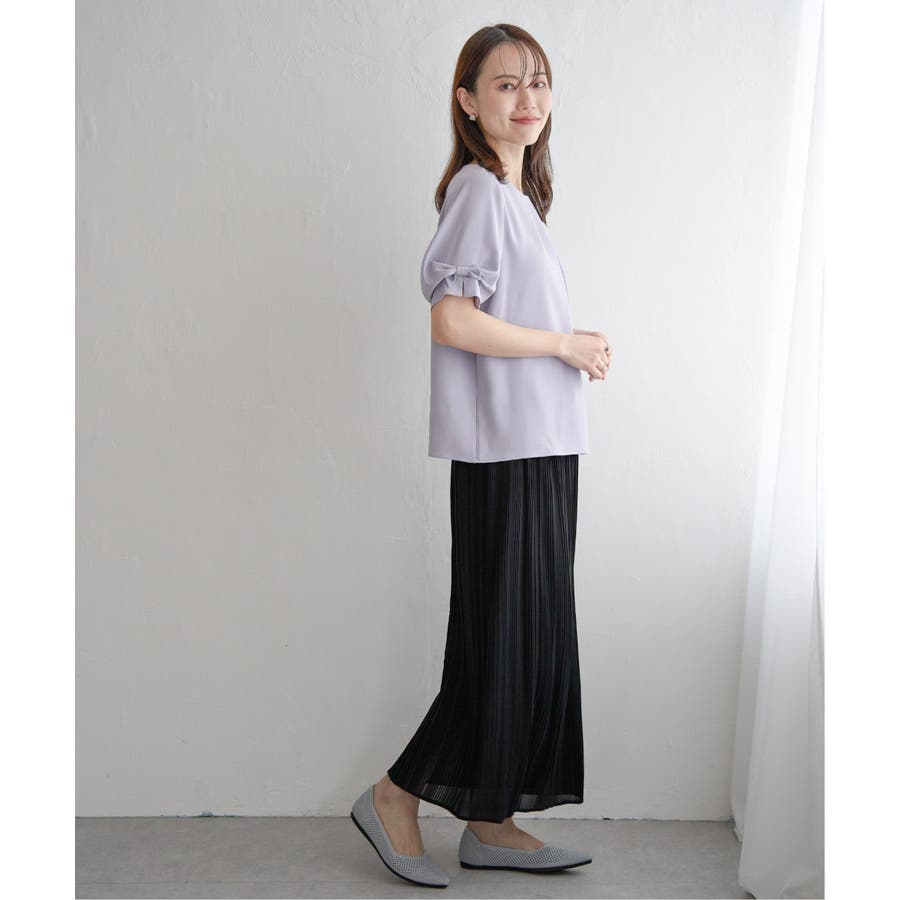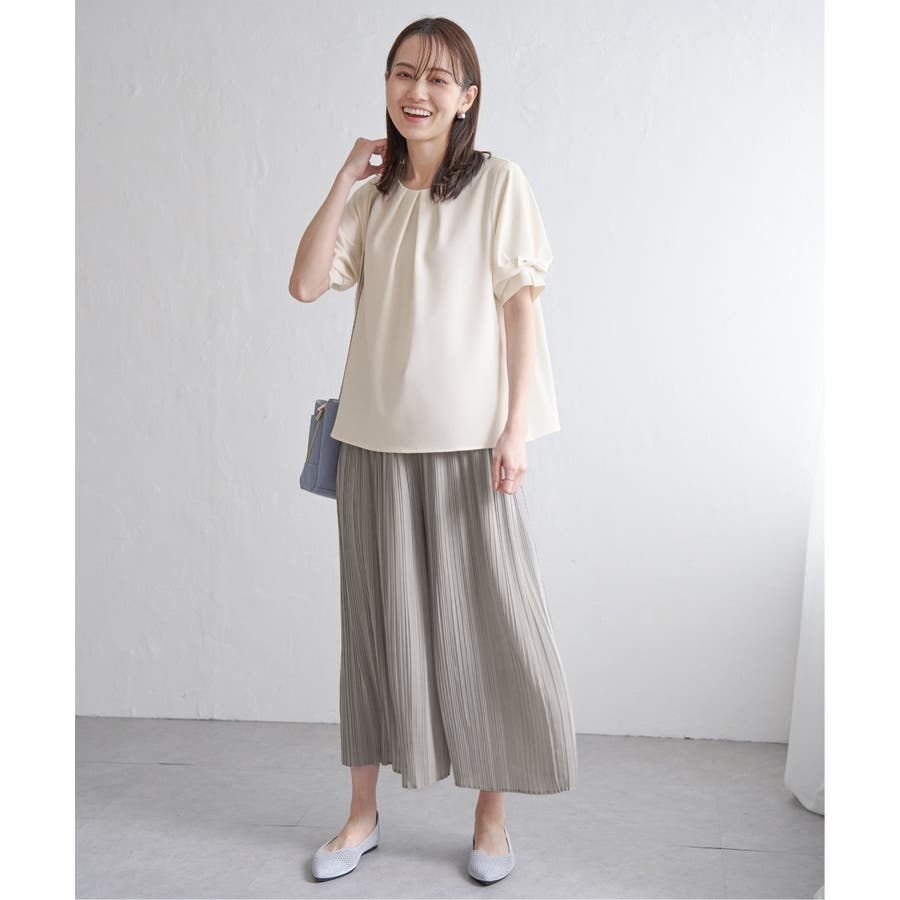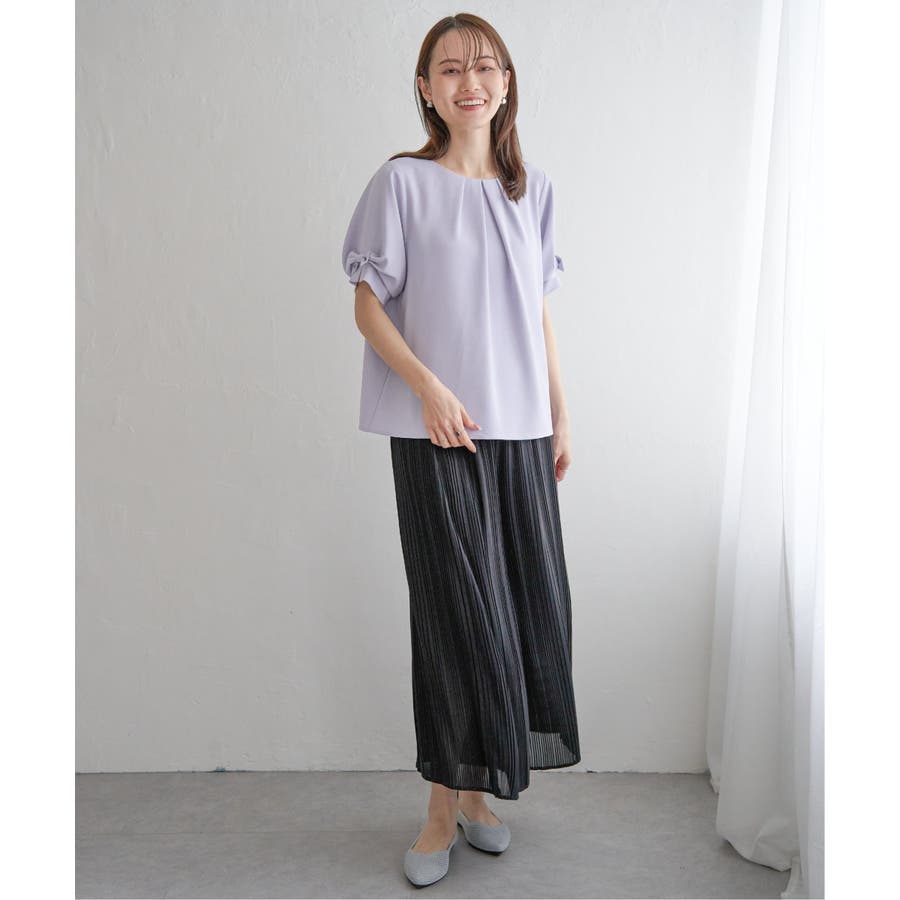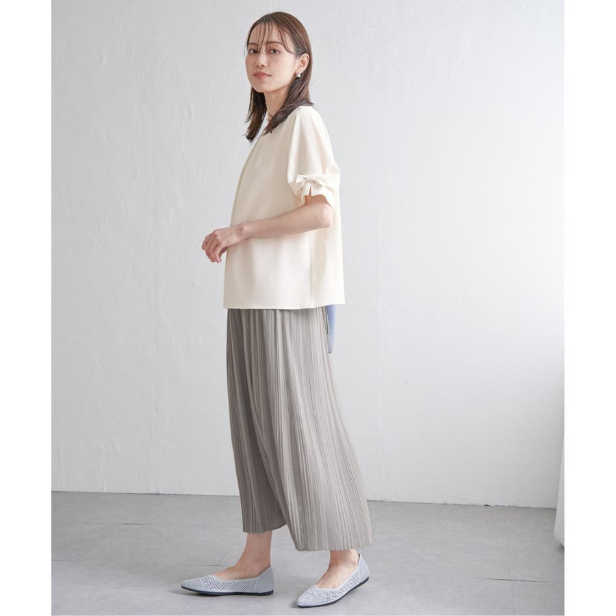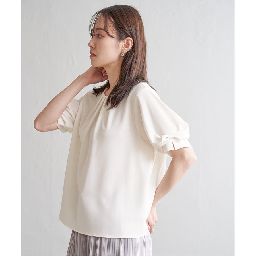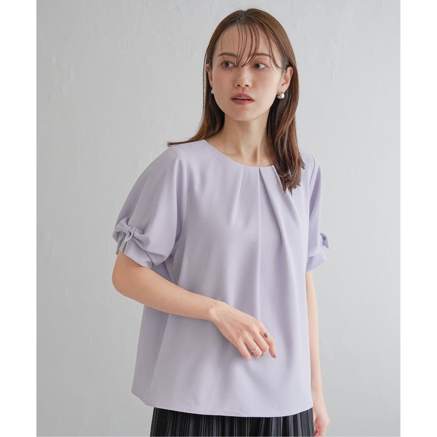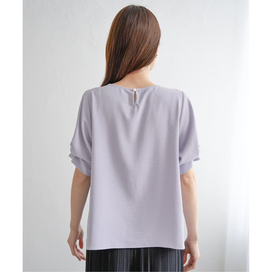 麻調のドライタッチ素材で、さらりとした着心地が特徴的なブラウス。