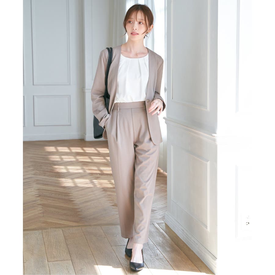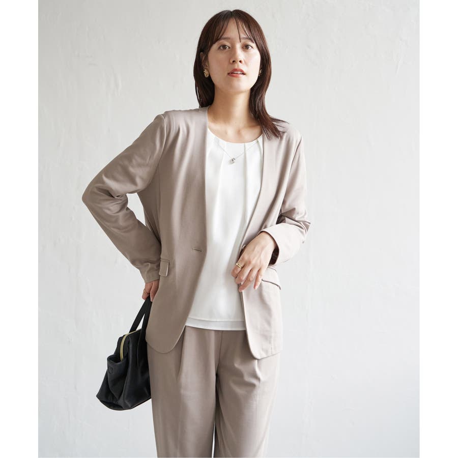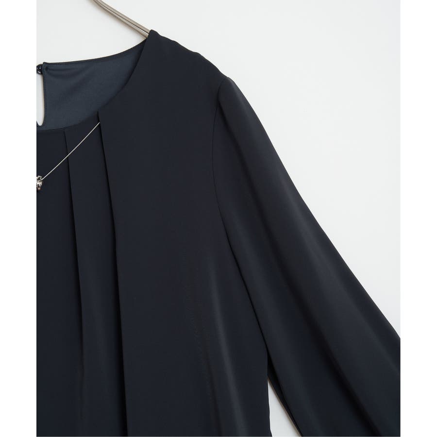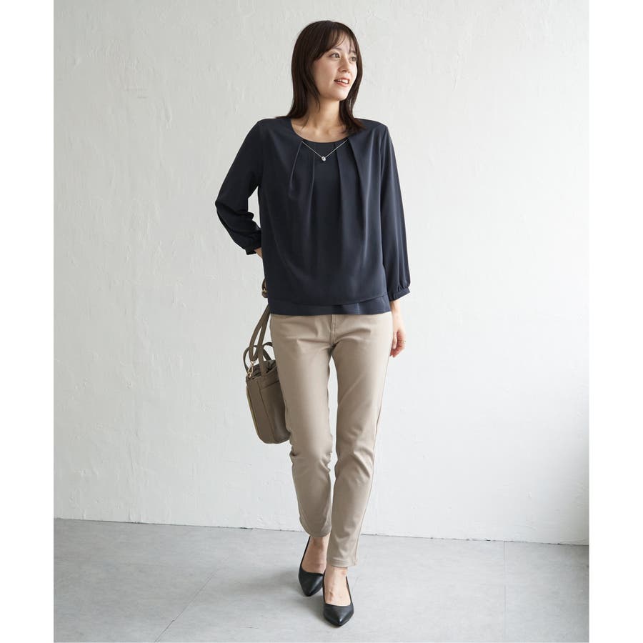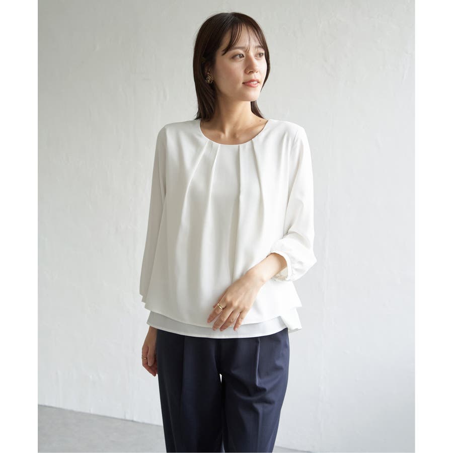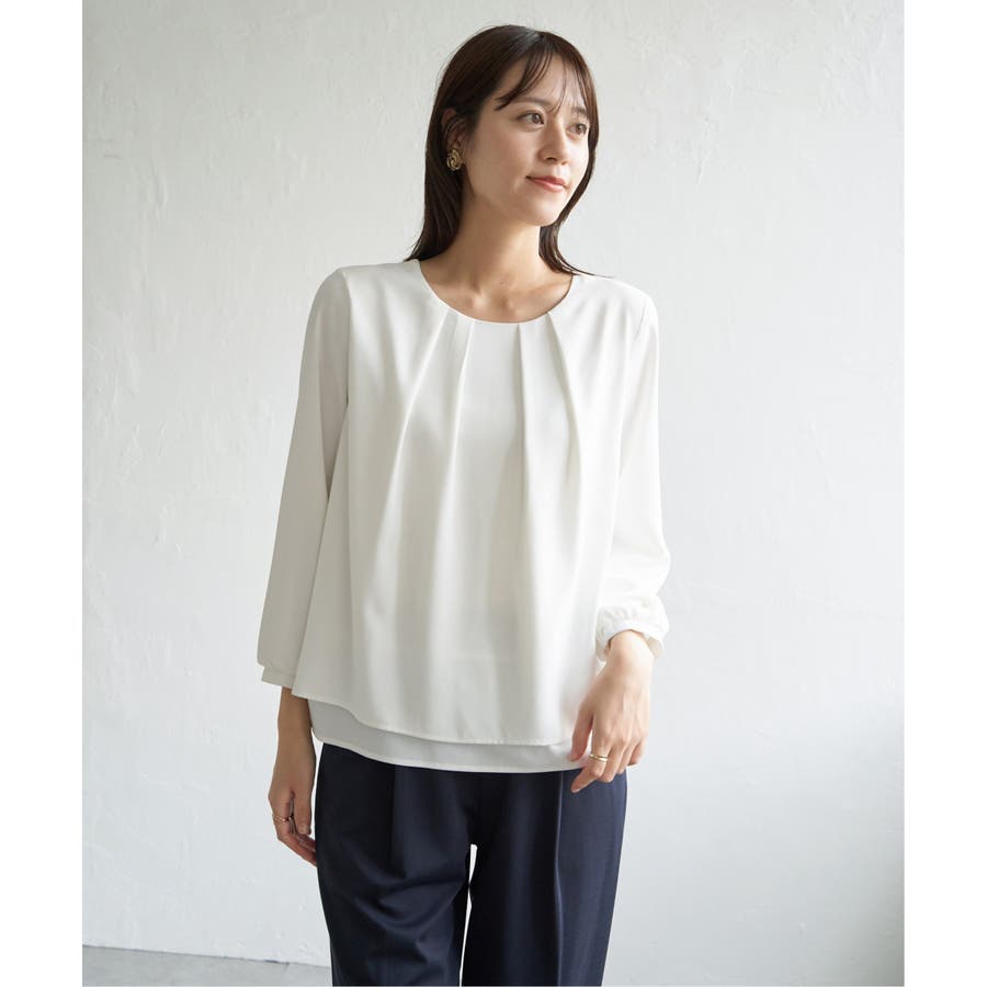 【ピンクベージュ】ネックレス付き裾2段ブラウス