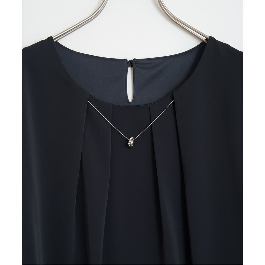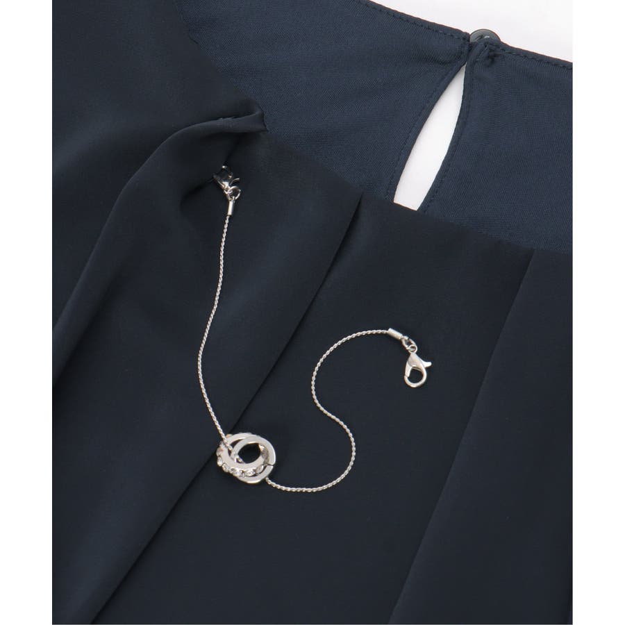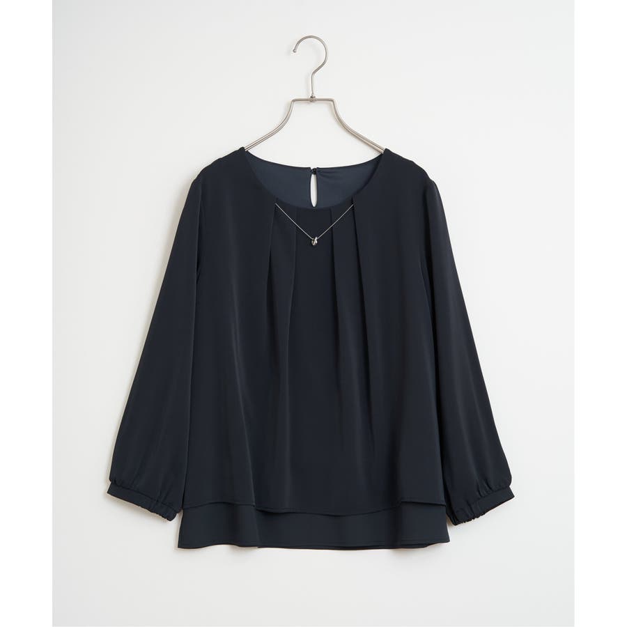 胸元のアクセントになる、取り外し可能なネックレス風チャーム付きブラウス。