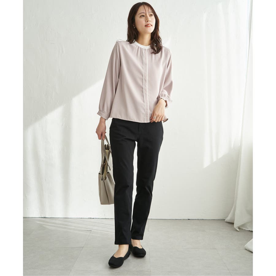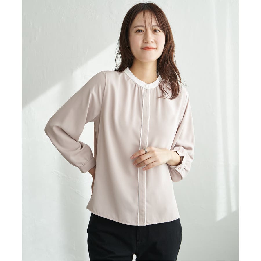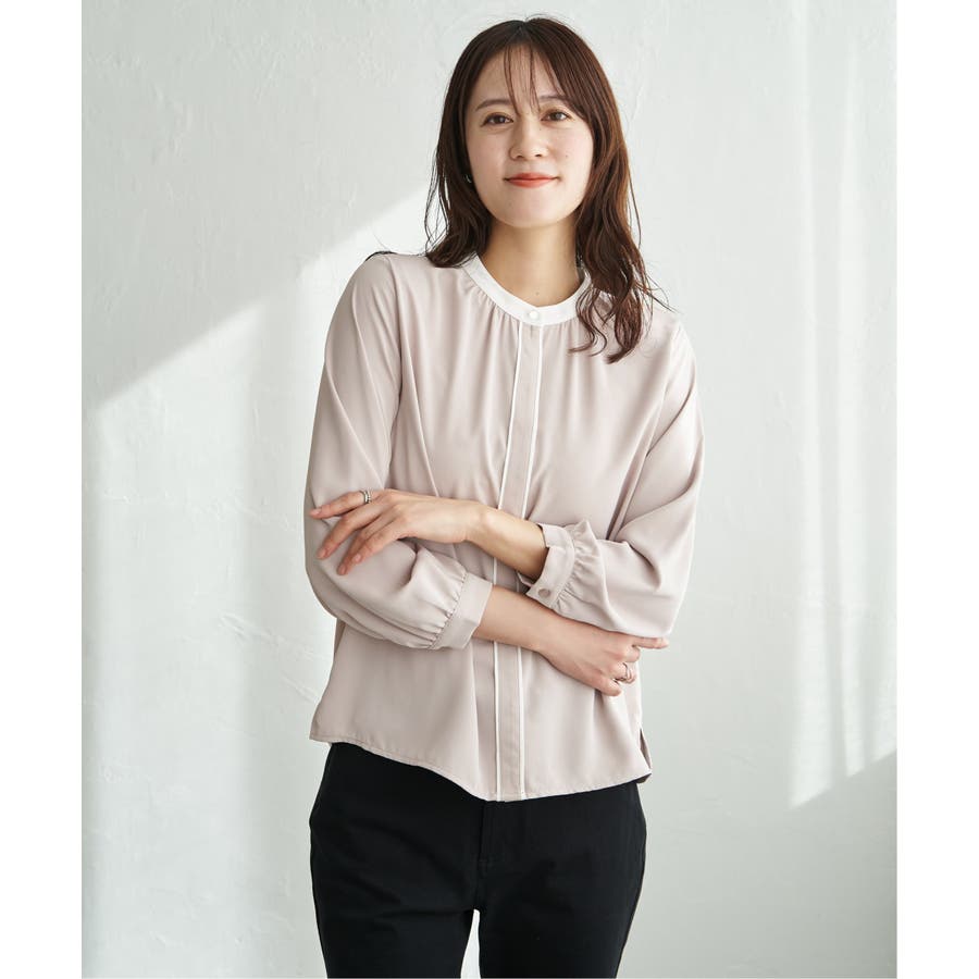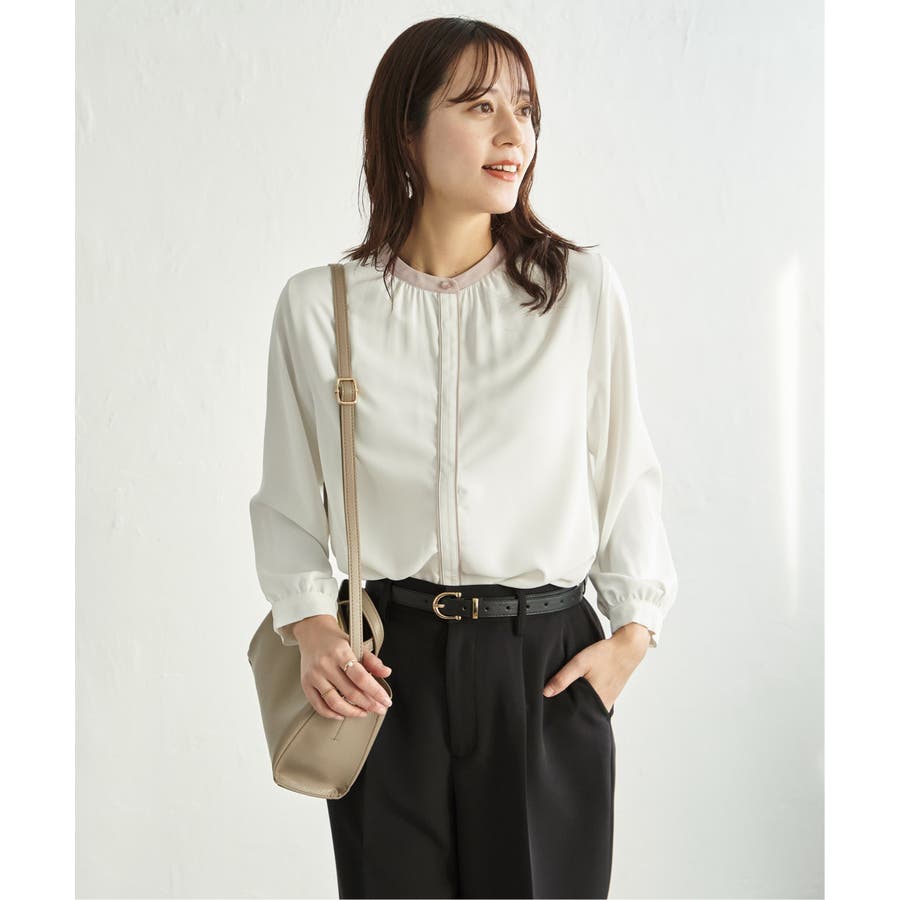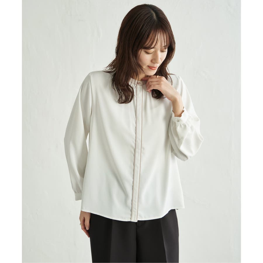 ・首元がすっきり見えるバンドカラーでジャケットインでも映えるデザイン