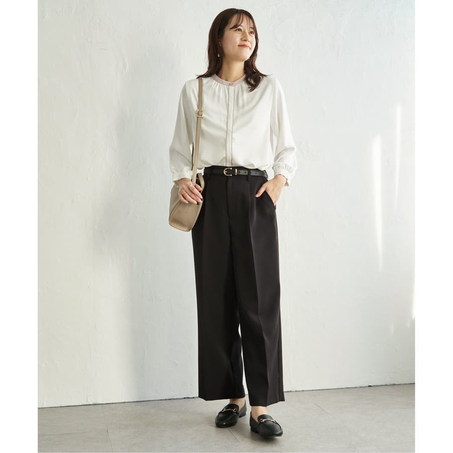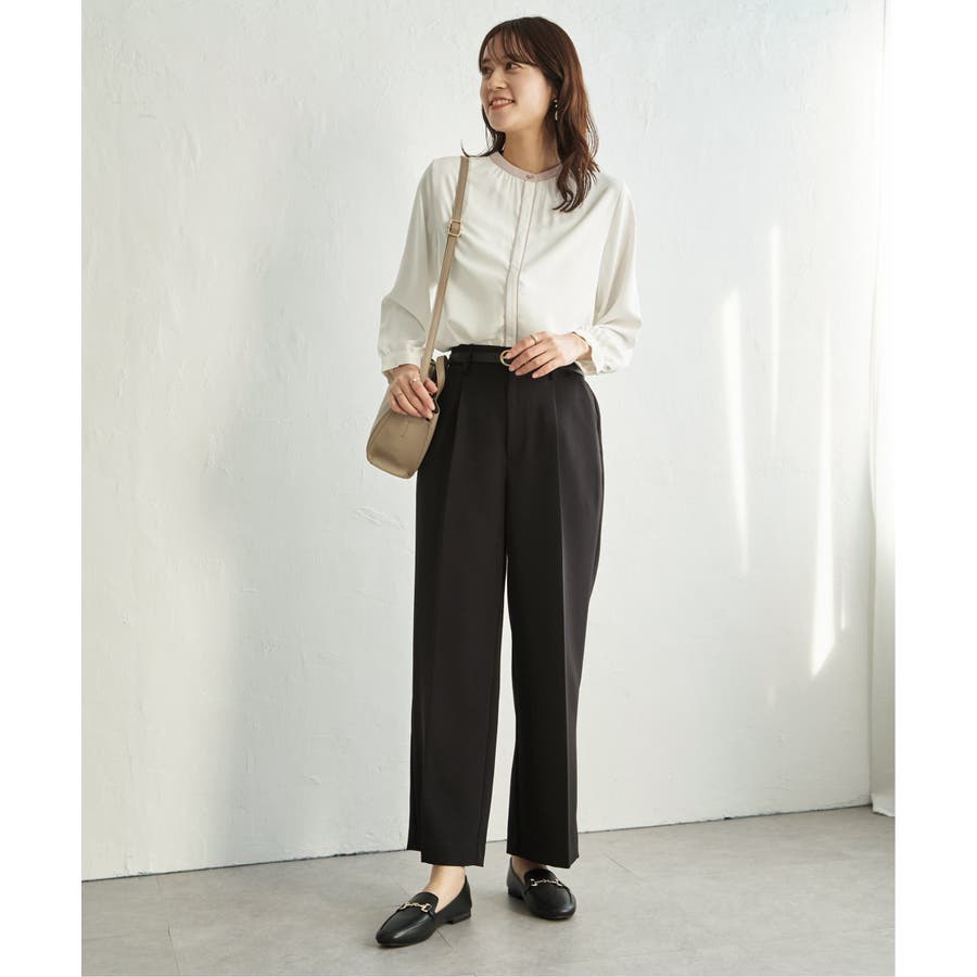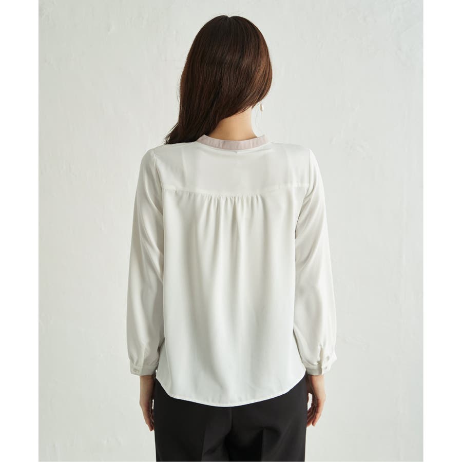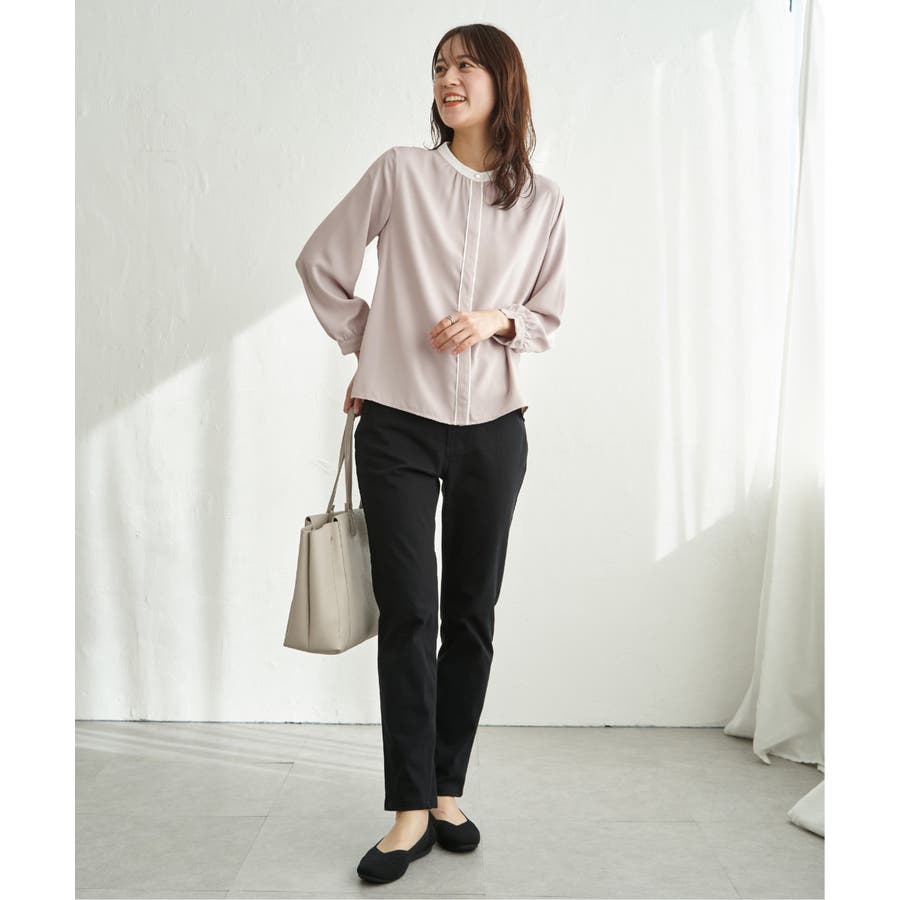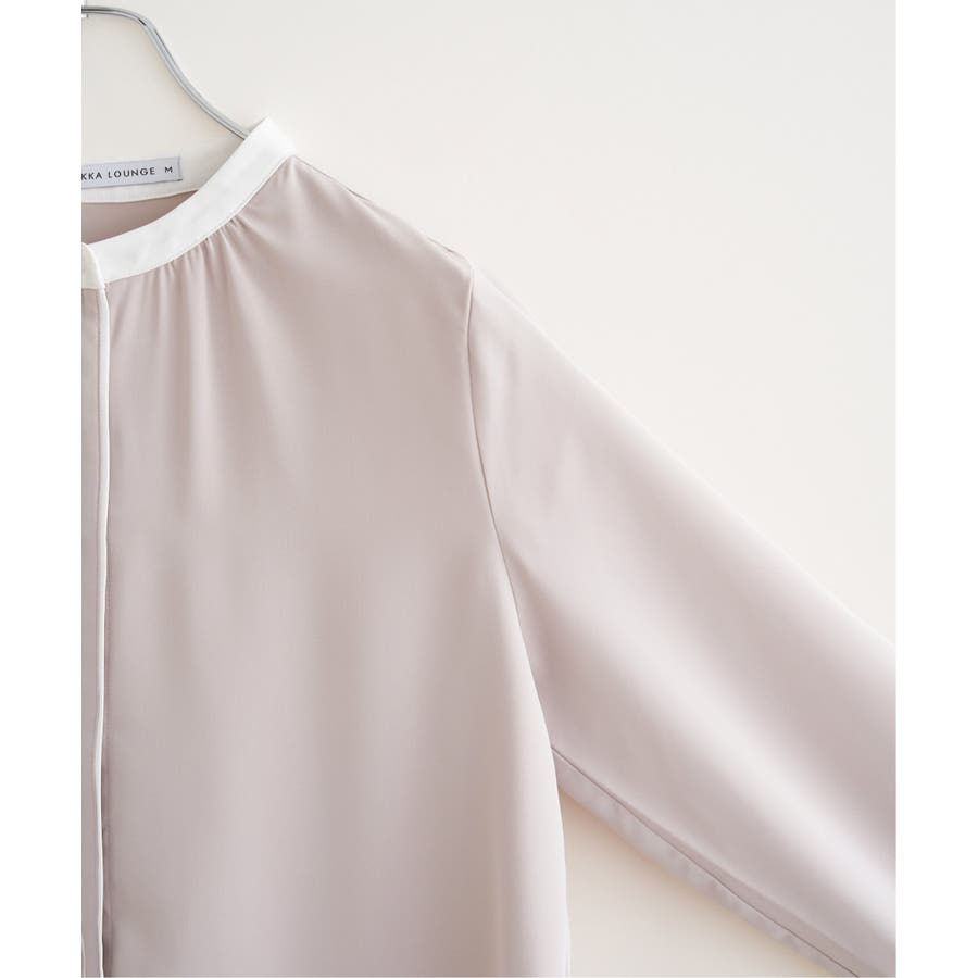 ・首元がすっきり見えるバンドカラーでジャケットインでも映えるデザイン