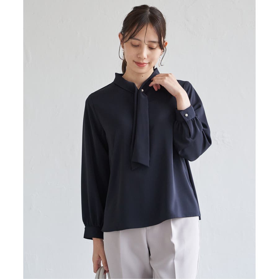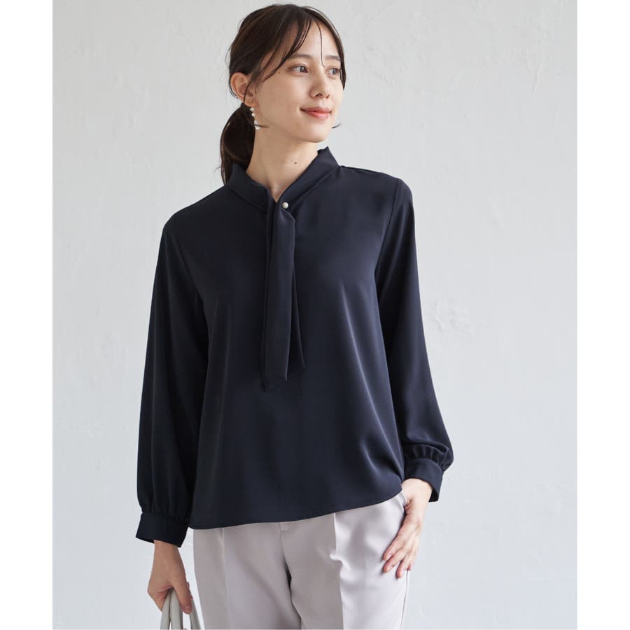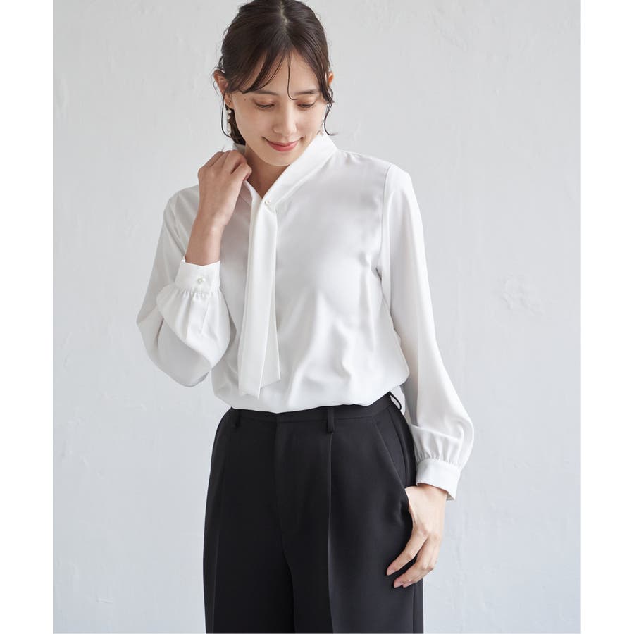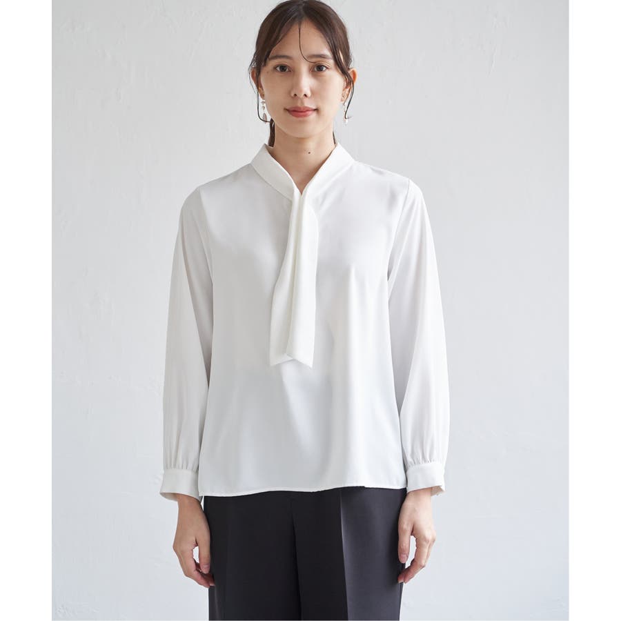 揺れ感が女性らしいボウタイ風ブラウスです。