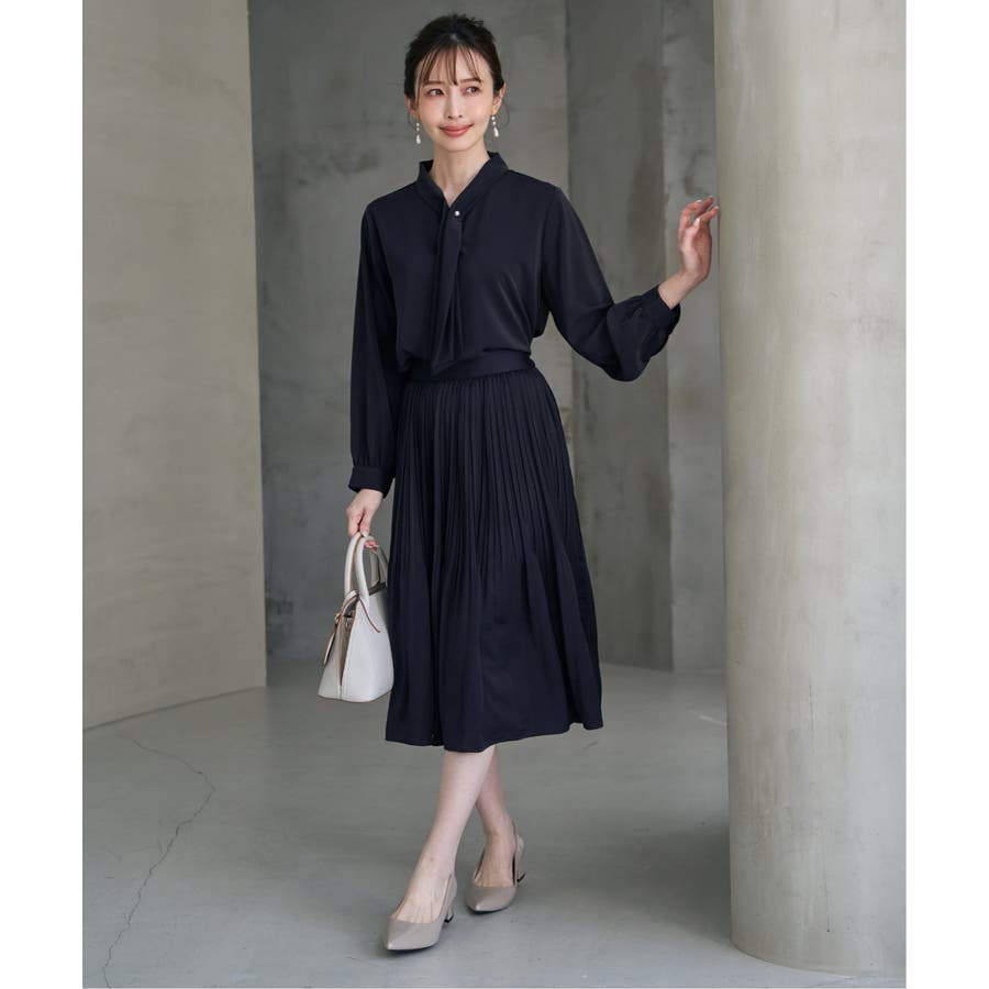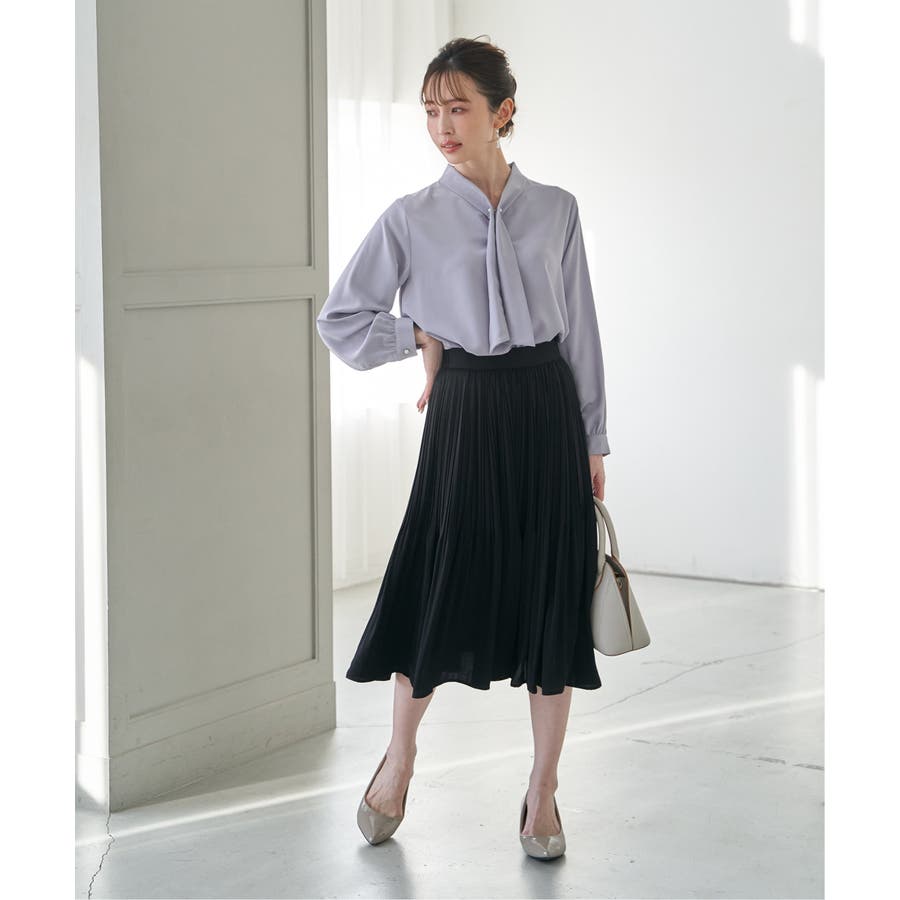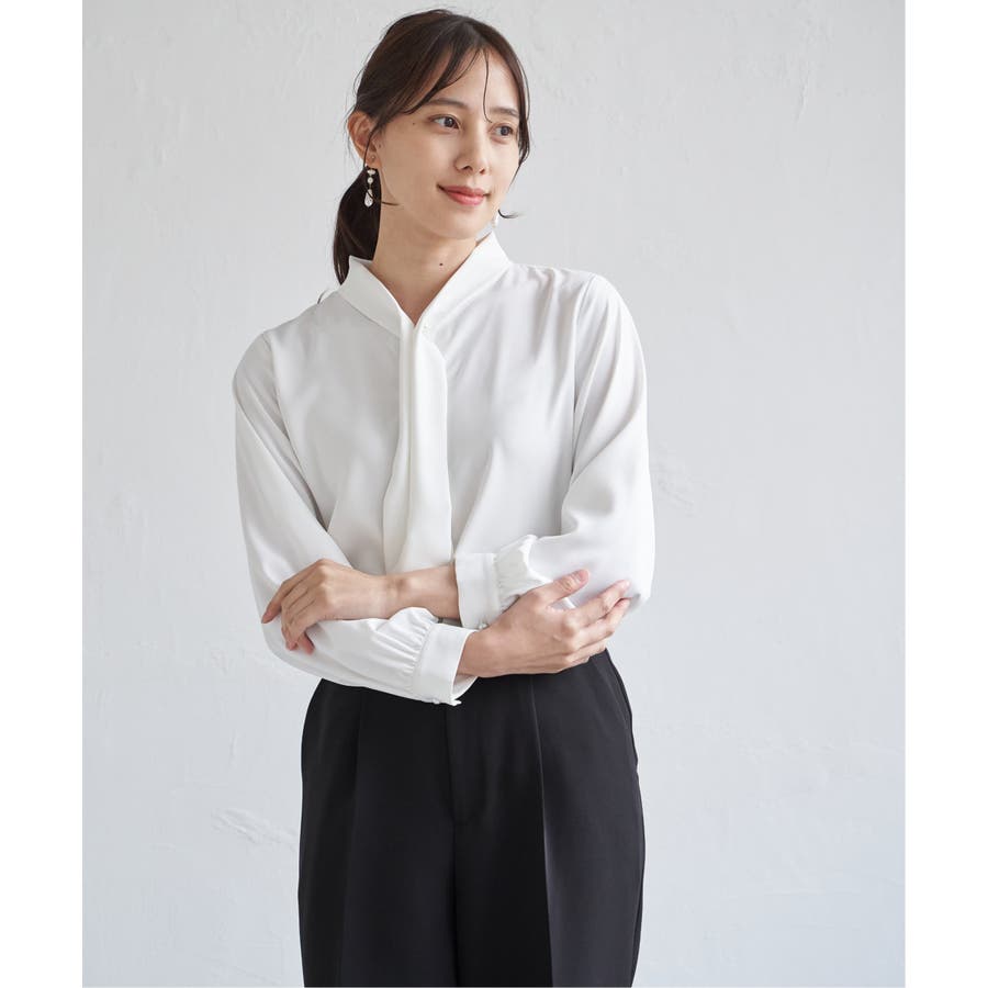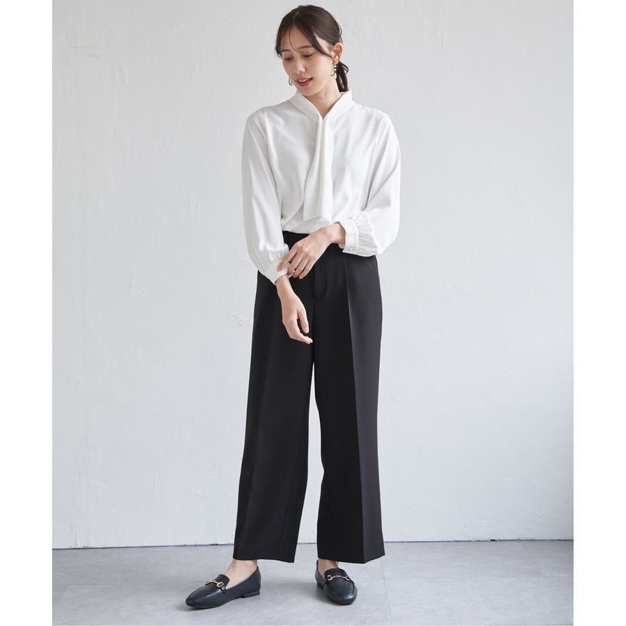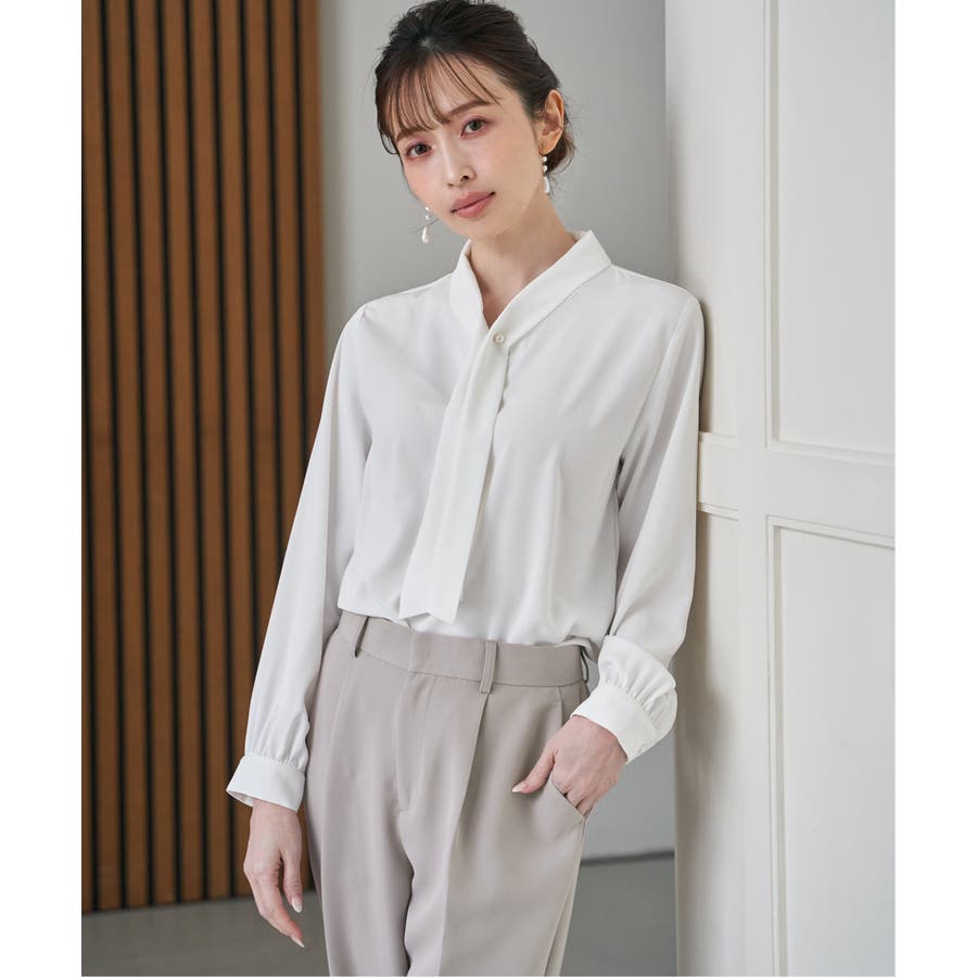 揺れ感が女性らしいボウタイ風ブラウスです。