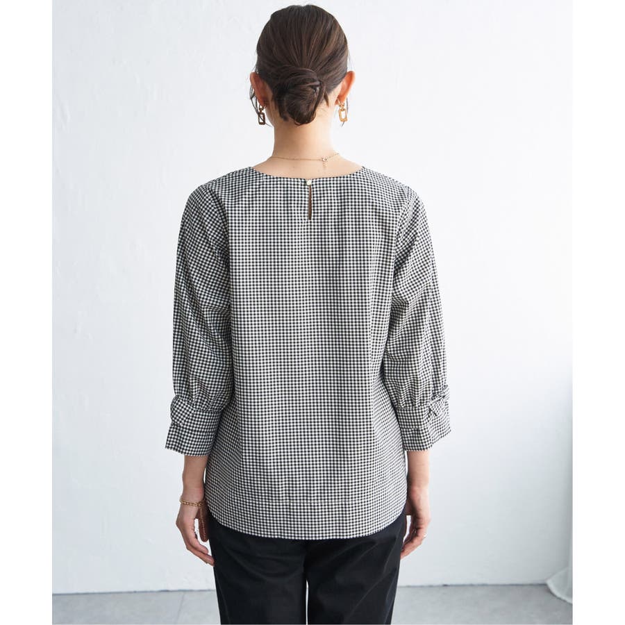袖にあしらったリボンディテールが視線を引き、着こなしのポイントになる袖コンシャスなデザインです。
