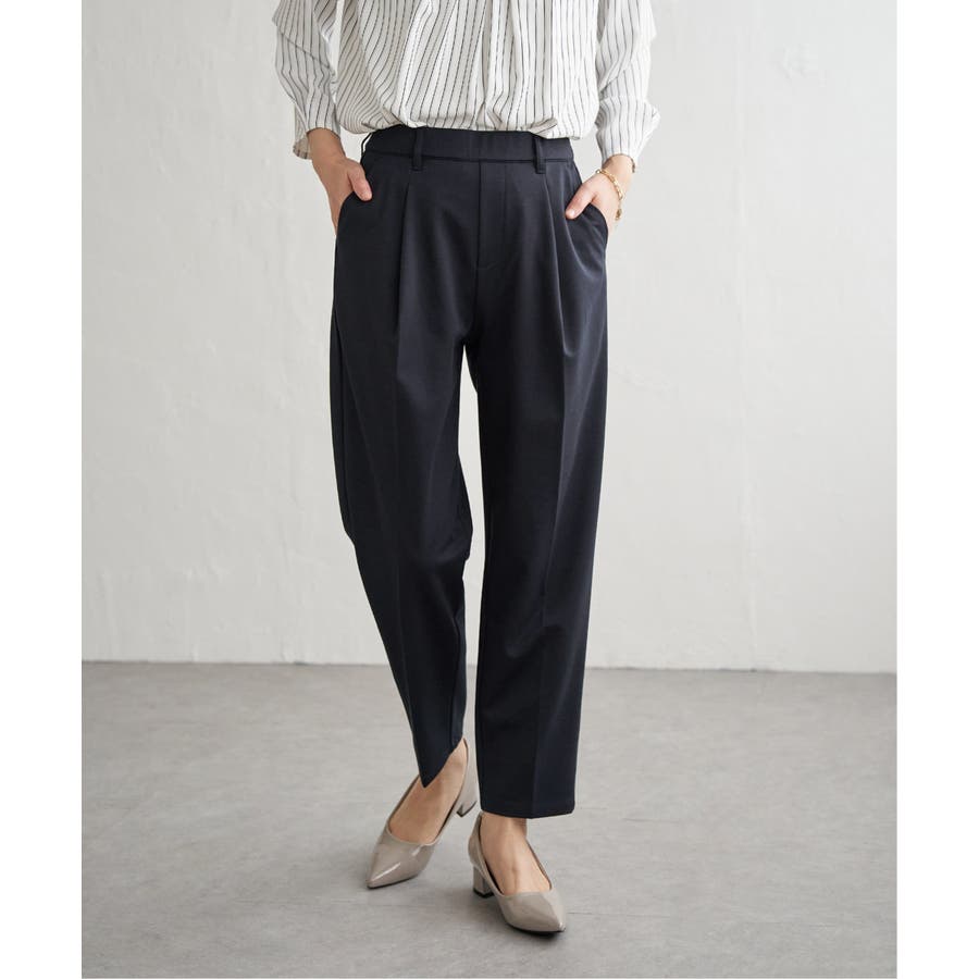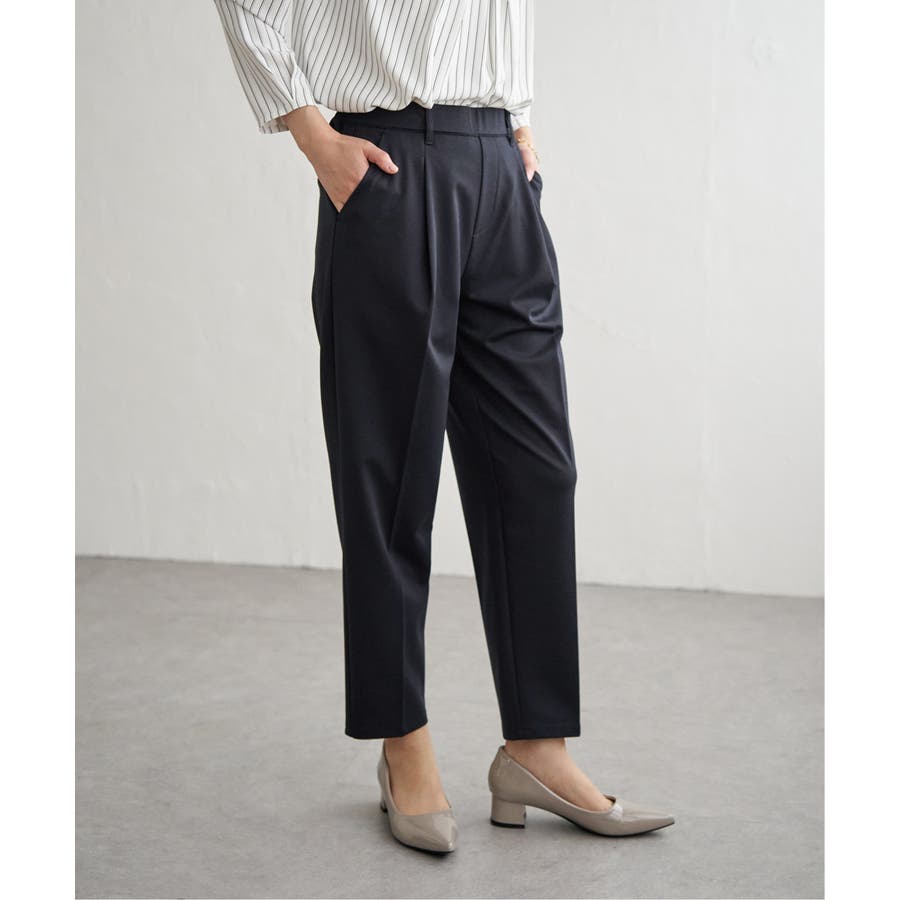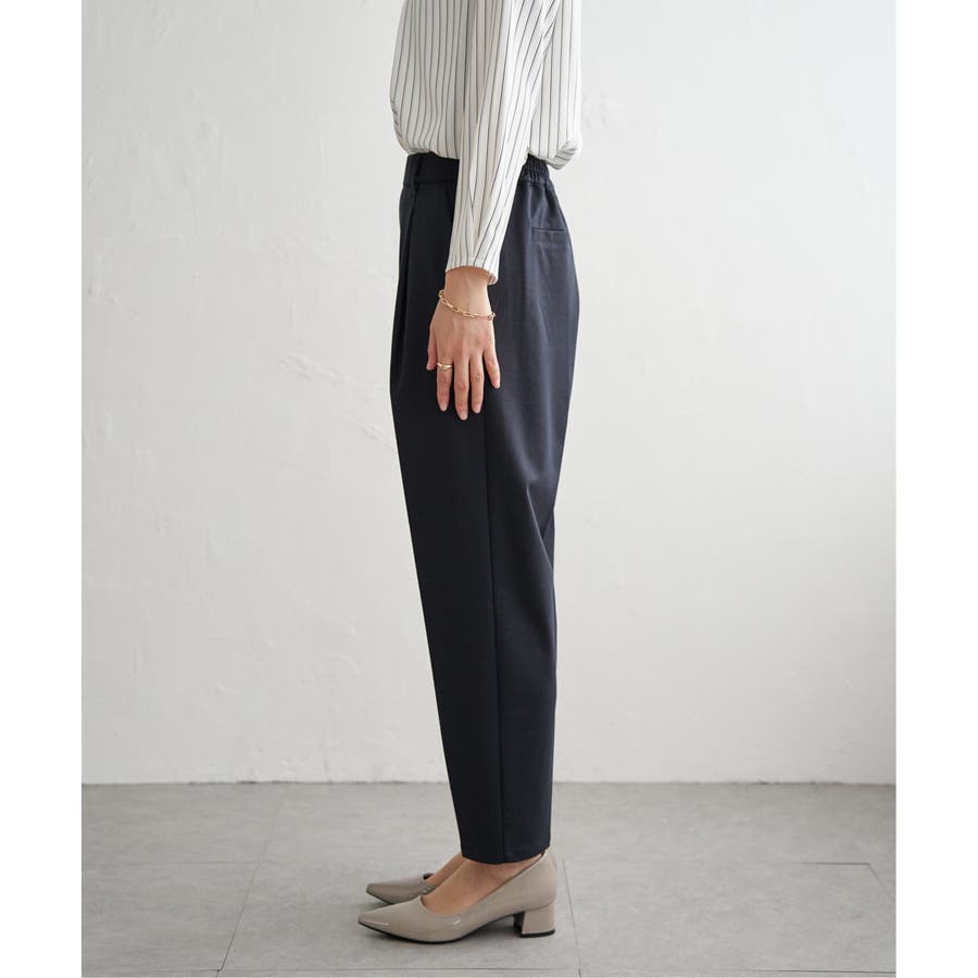 太ももから裾にかけて、ほどよく細身にしたテーパードパンツです。